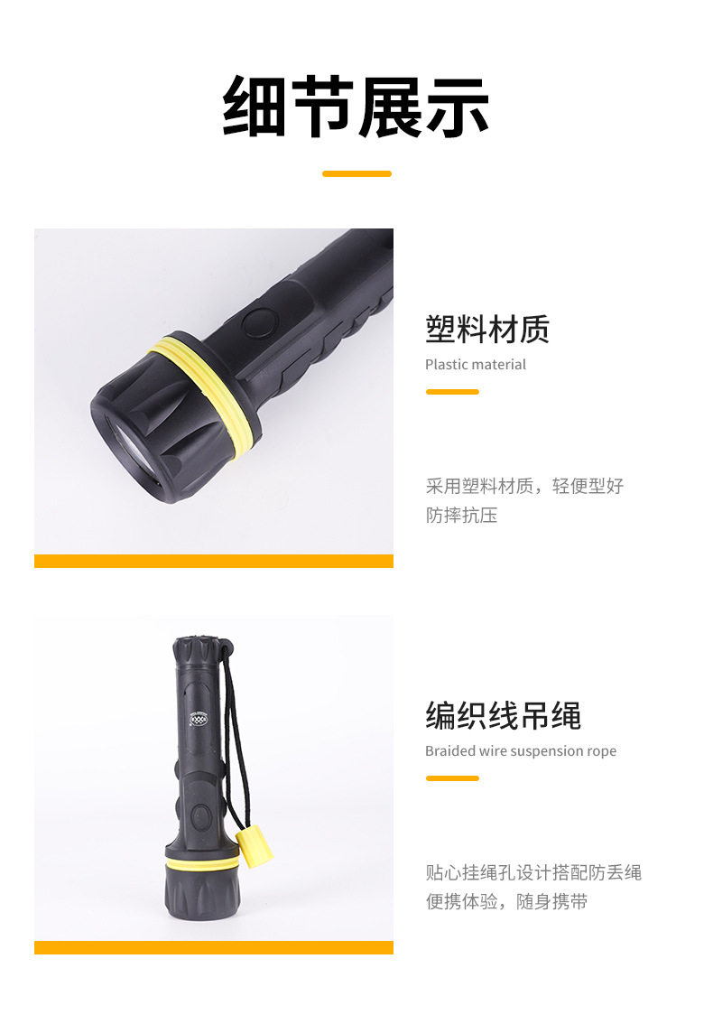 1号电池橡胶塑料强光手电筒防水7led户外手电应急照明手电筒