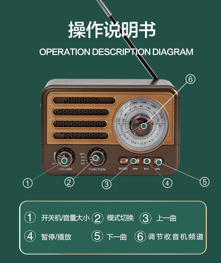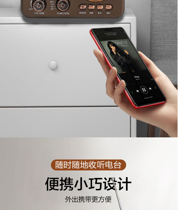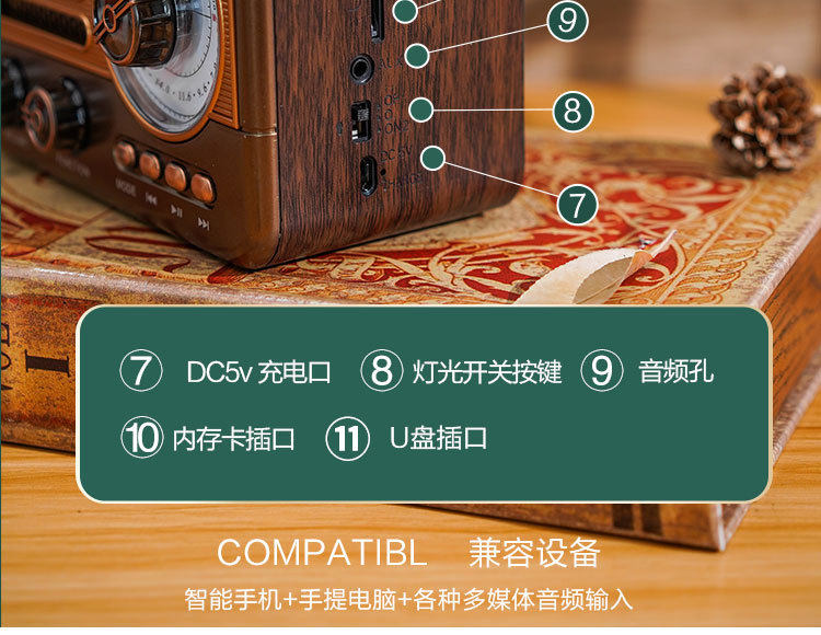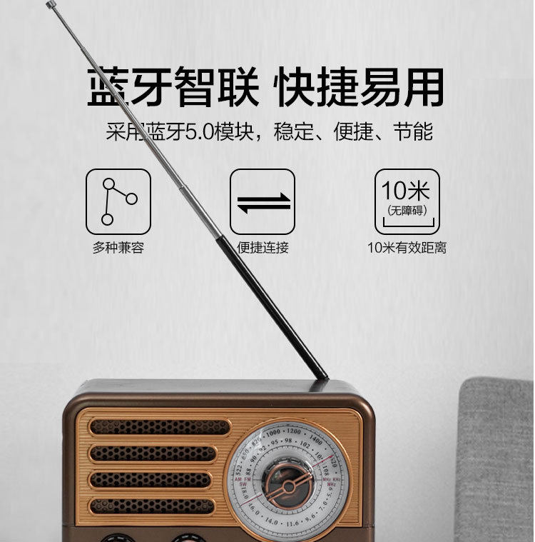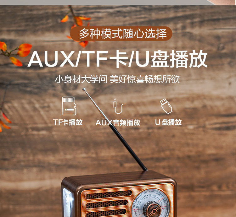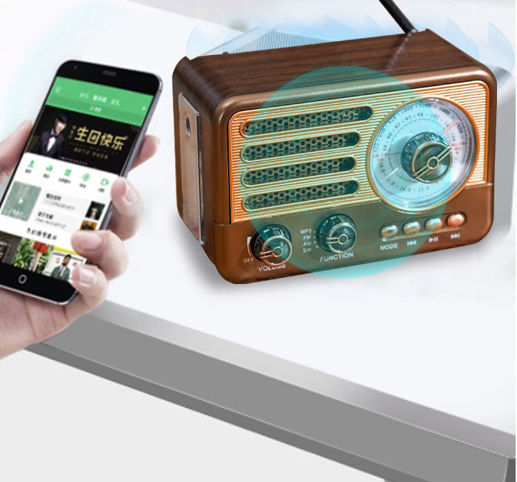 木质无线蓝牙音箱手机插卡户外音响低音炮调频收音机手电立体声
