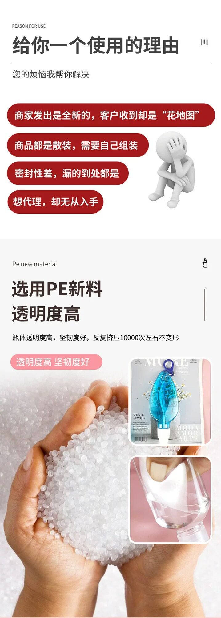 现货批发30ml50ml60ml挂勾瓶喷雾酒精凝胶免洗洗手液塑料瓶登山扣