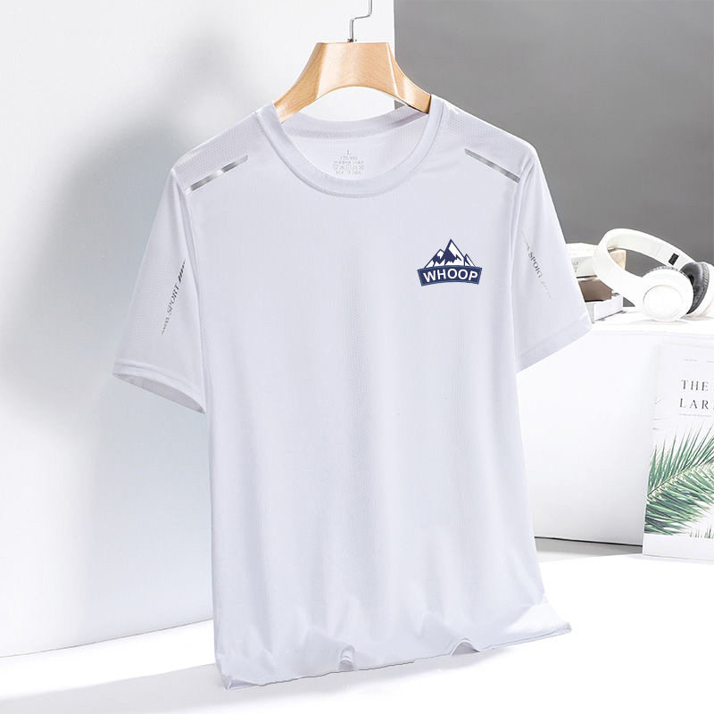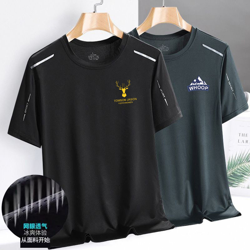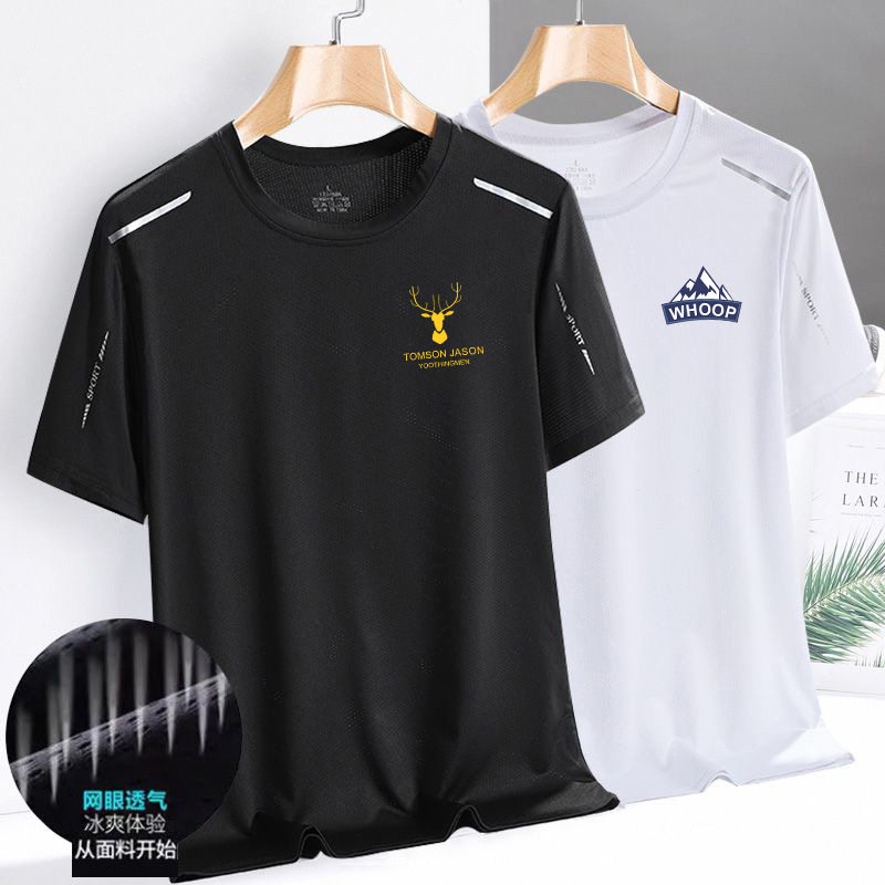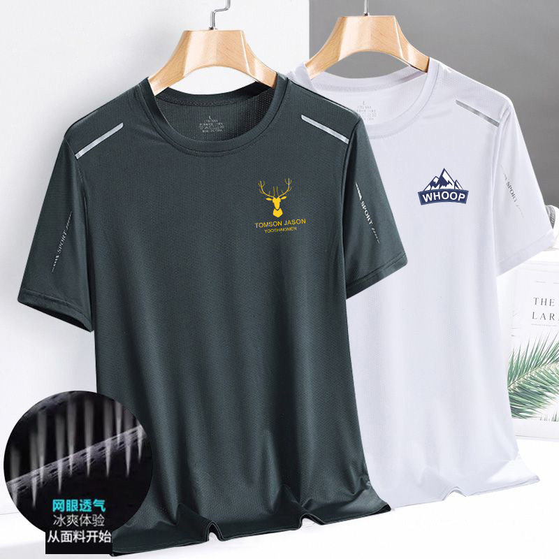 新款夏季网眼冰丝t恤男圆领速干衣休闲短袖潮流印花透气大码运动