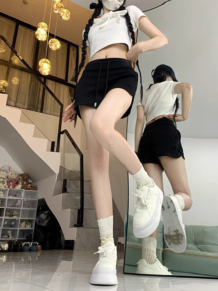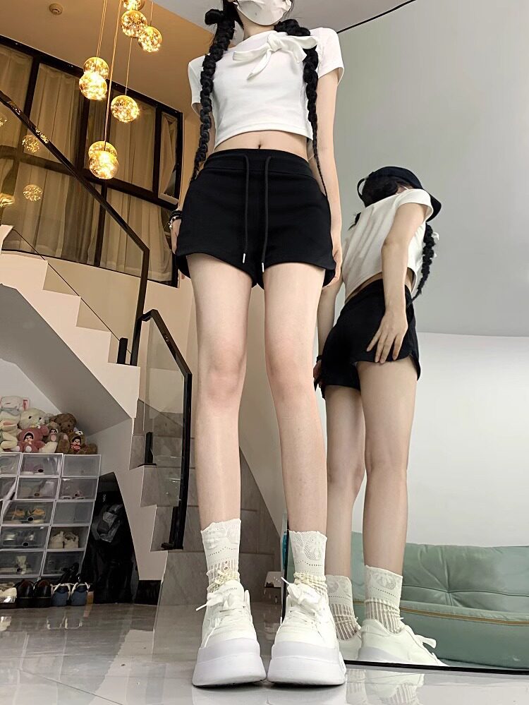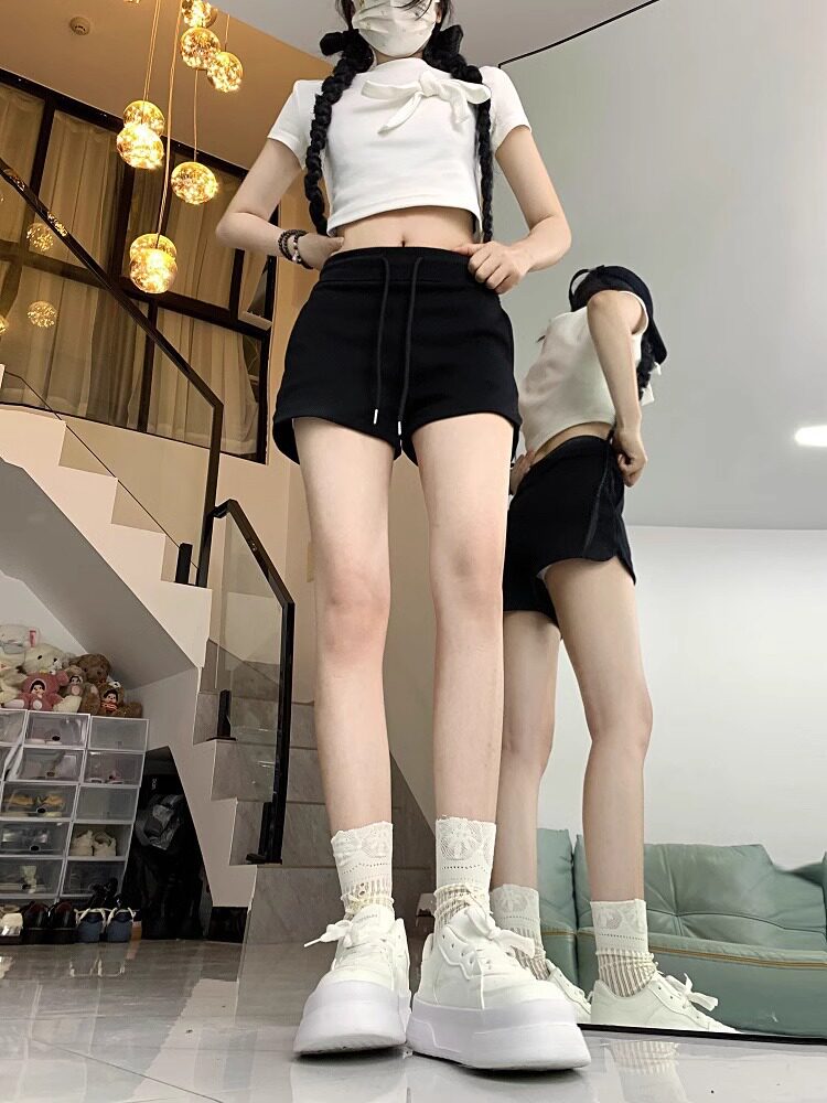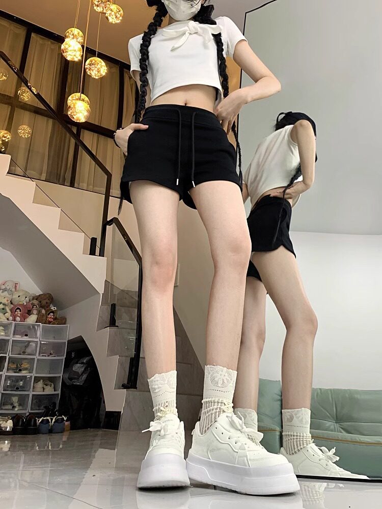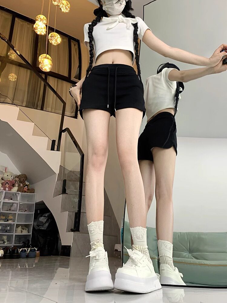 美式辣妹灰色运动短裤女2024年夏季百搭高腰显瘦绑带小个子休闲裤