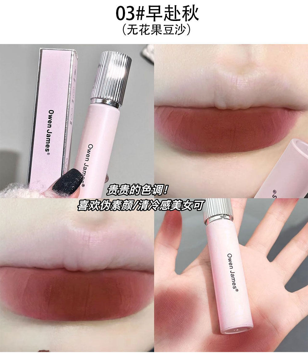 Owen james小粉锻唇釉哑光雾面丝绒不易掉色低饱和口红唇釉批发女