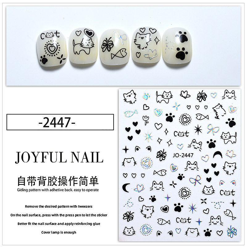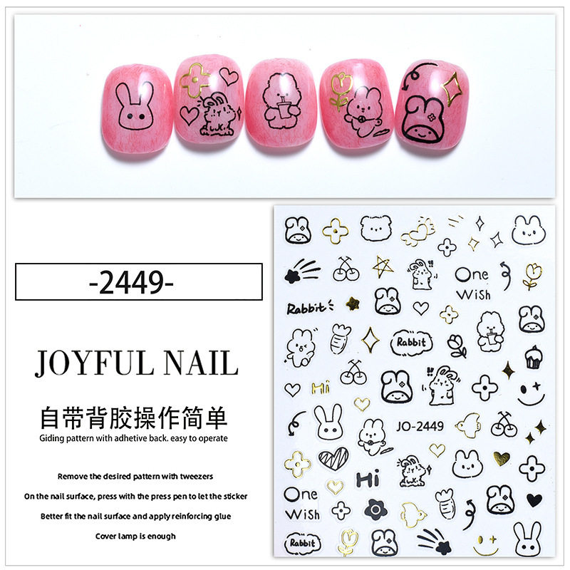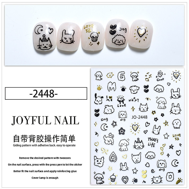 网红美甲贴纸甜酷卡通手绘小猫小狗贴花涂鸦字母小兔带背胶指甲贴