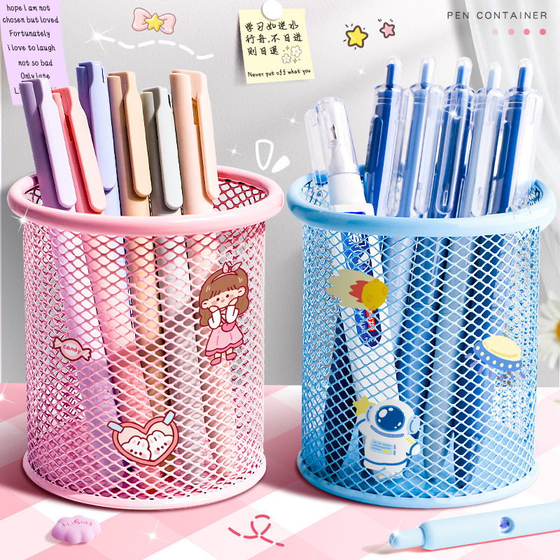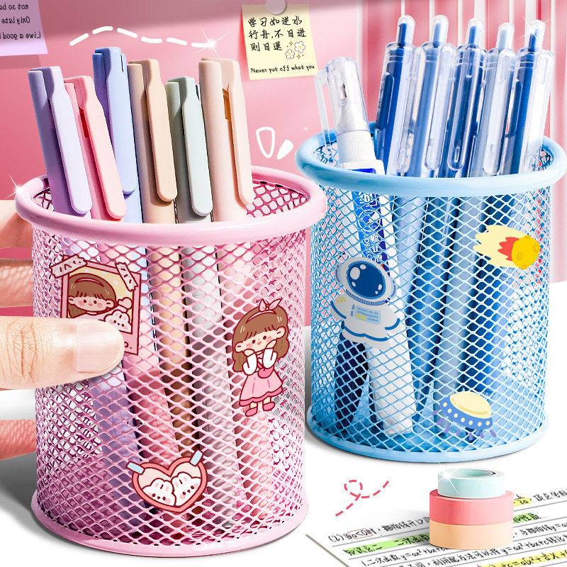 金属笔筒办公室桌面学生笔桶收纳盒大容量超大铁网简约铅笔筒儿童