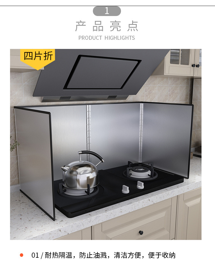 不锈钢挡油板炒菜隔热防溅烫隔油烟板可折叠灶台挡板厨房用品批发