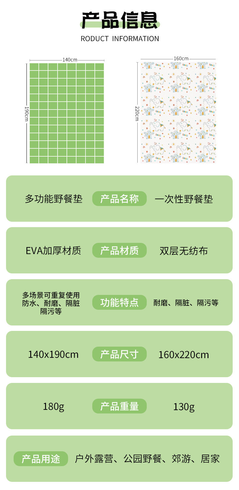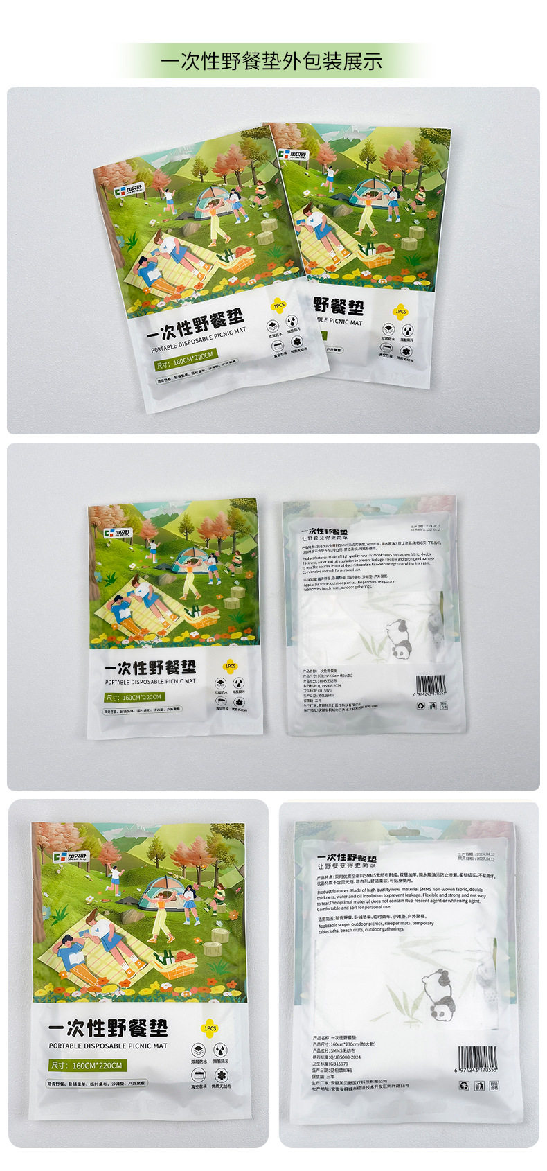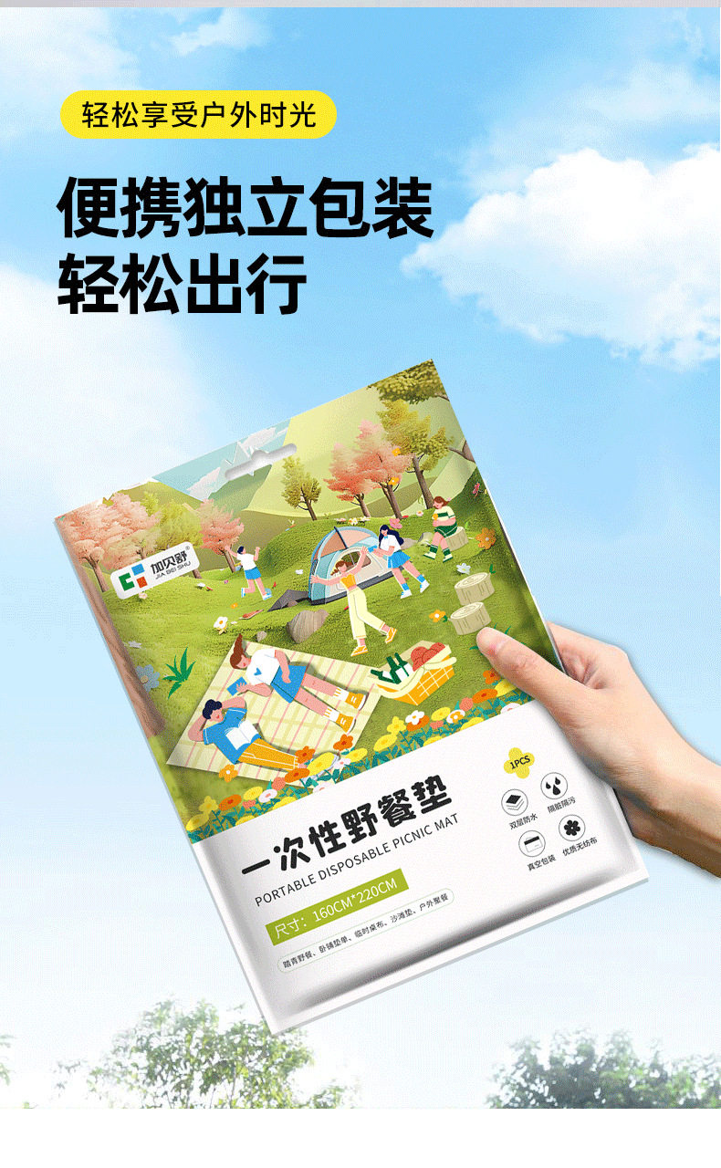 一次性野餐垫加厚隔脏户外防潮垫双人防水沙滩草坪户外露营地垫子
