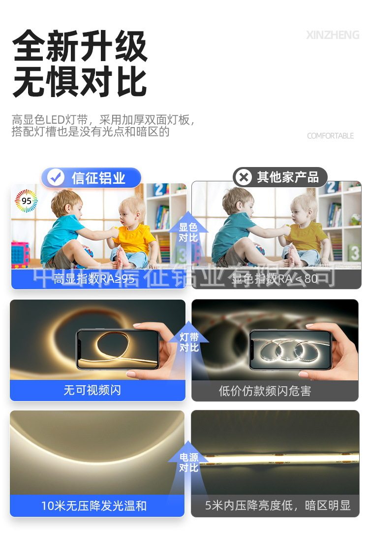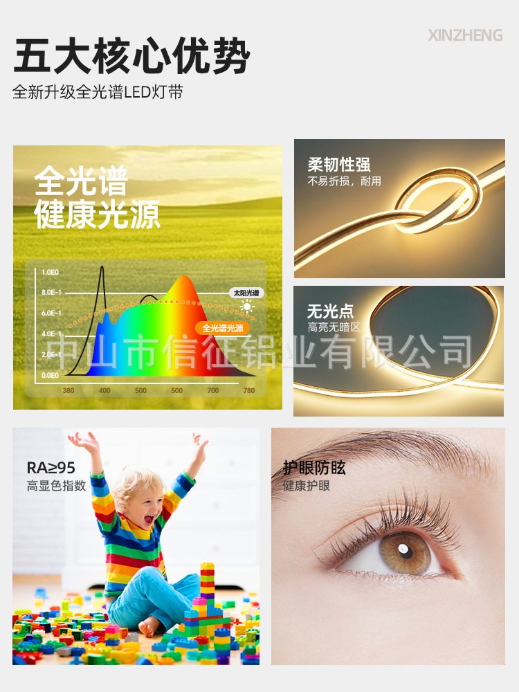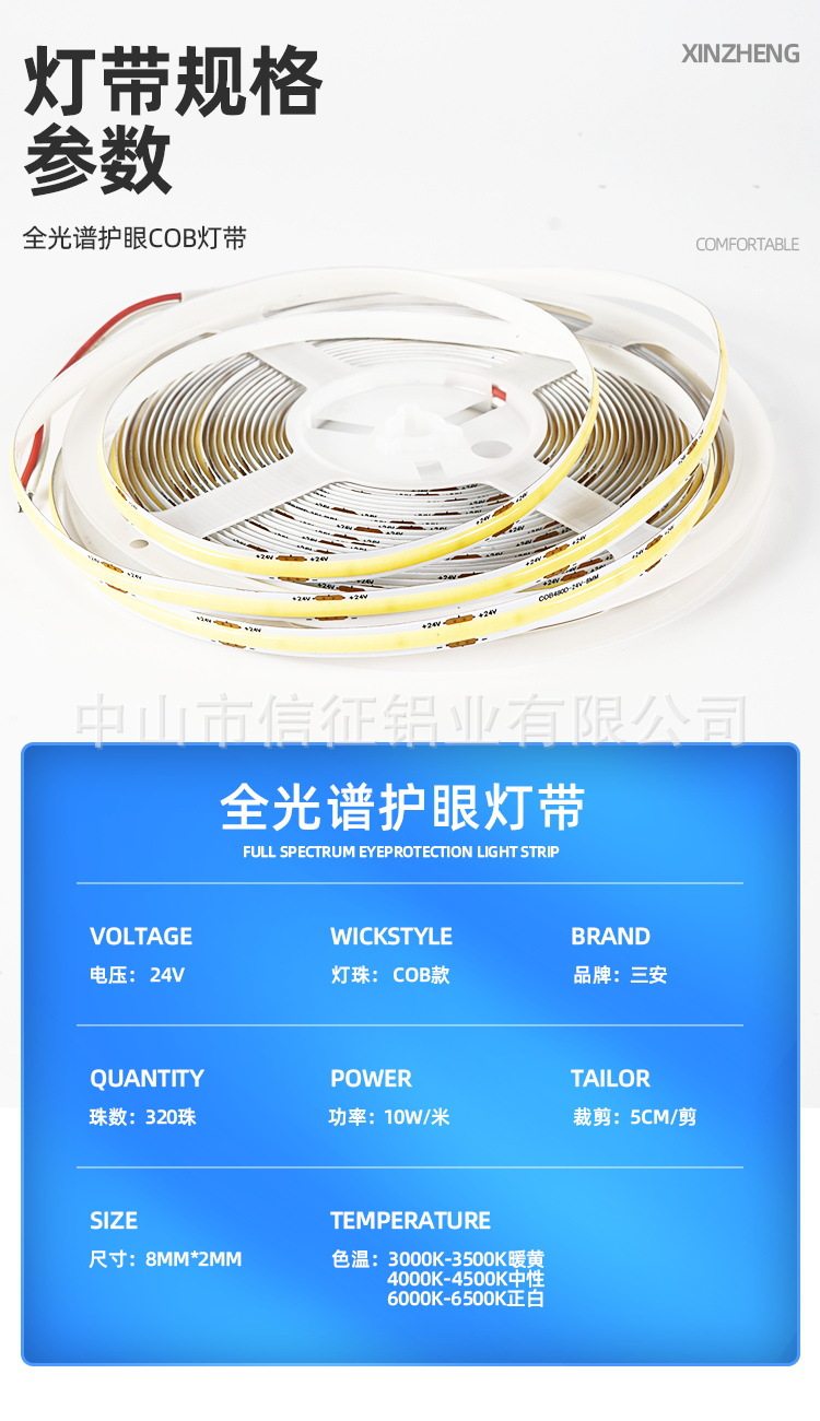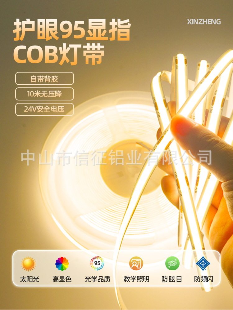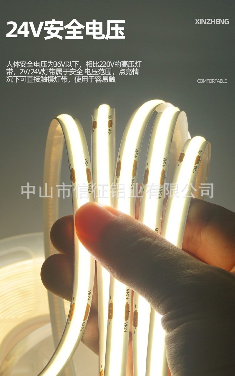 全光谱超亮12/24V灯带低压裸板COB贴片线形线性客厅柜货架软灯条