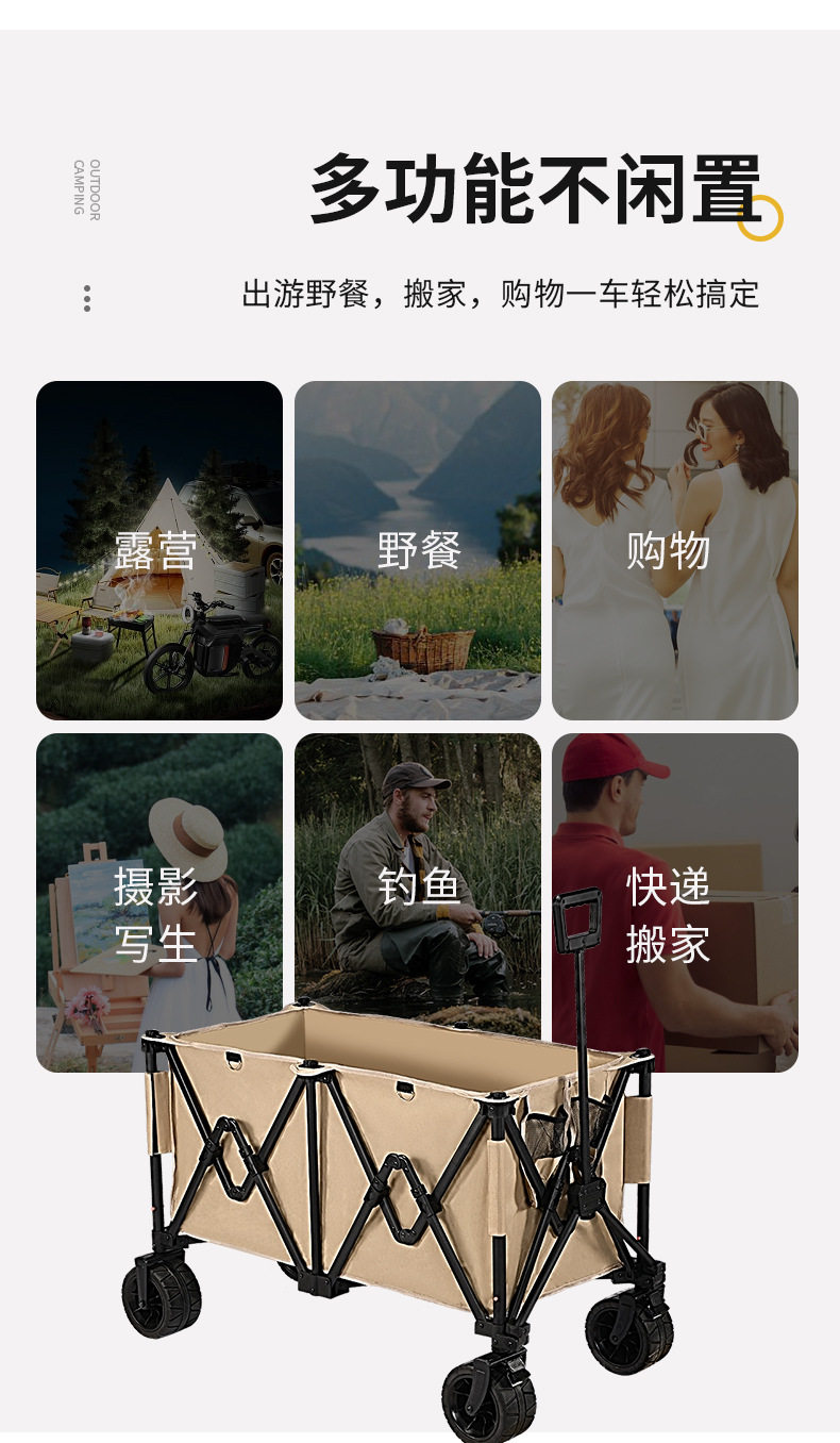 大容量聚拢款露营车营地推车野餐便携折叠手推车户外摆摊小拉拖车