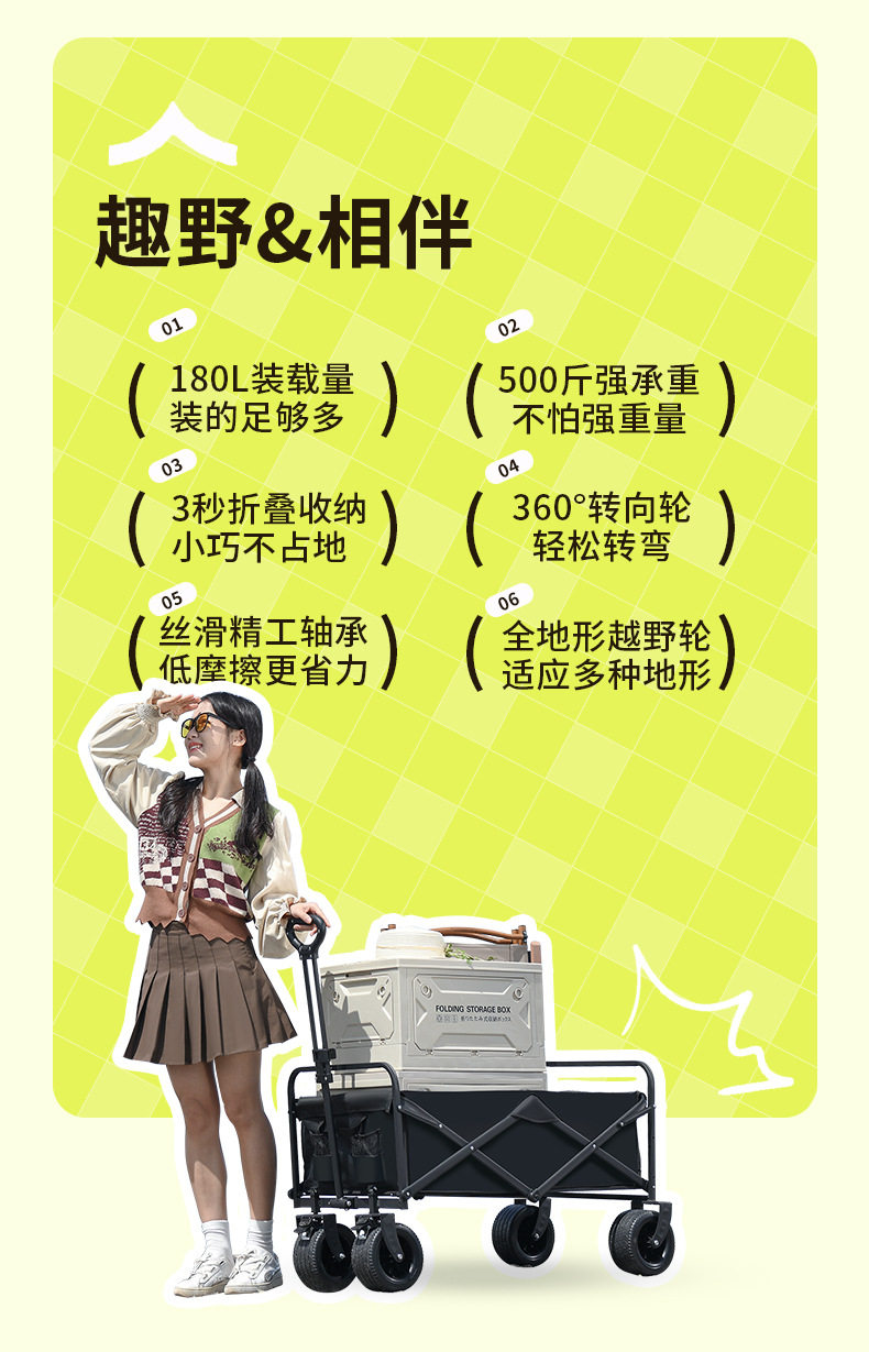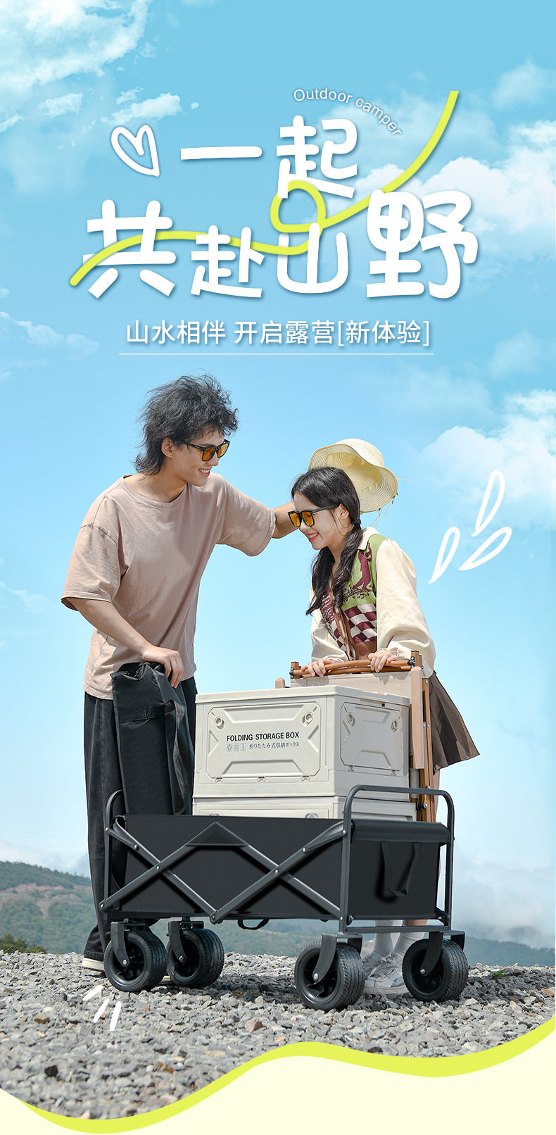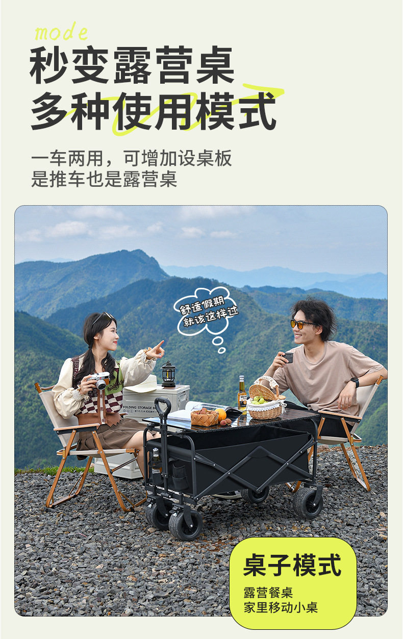 包邮金属加粗户外露营车营地车野营手推野餐拉车摆摊便携式小推车