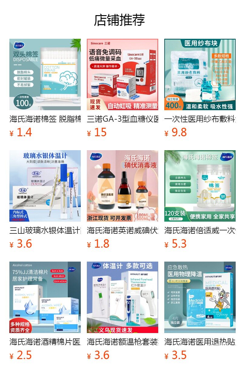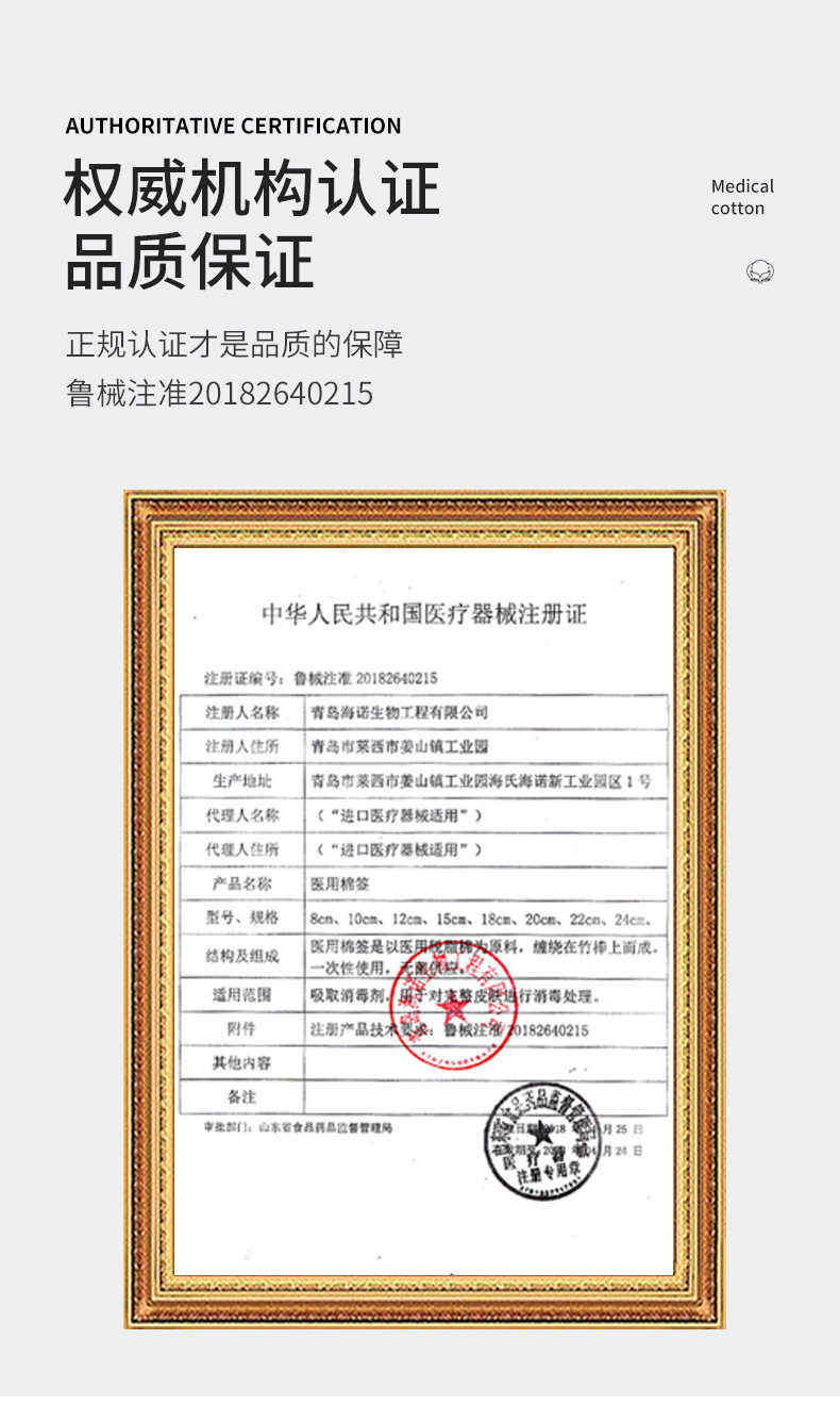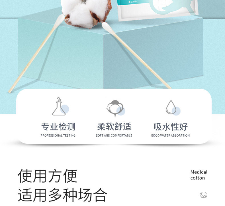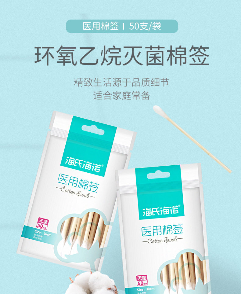 海氏海诺10cm医用棉签伤口清洁消毒药一次性单头大头棉棒50支每袋