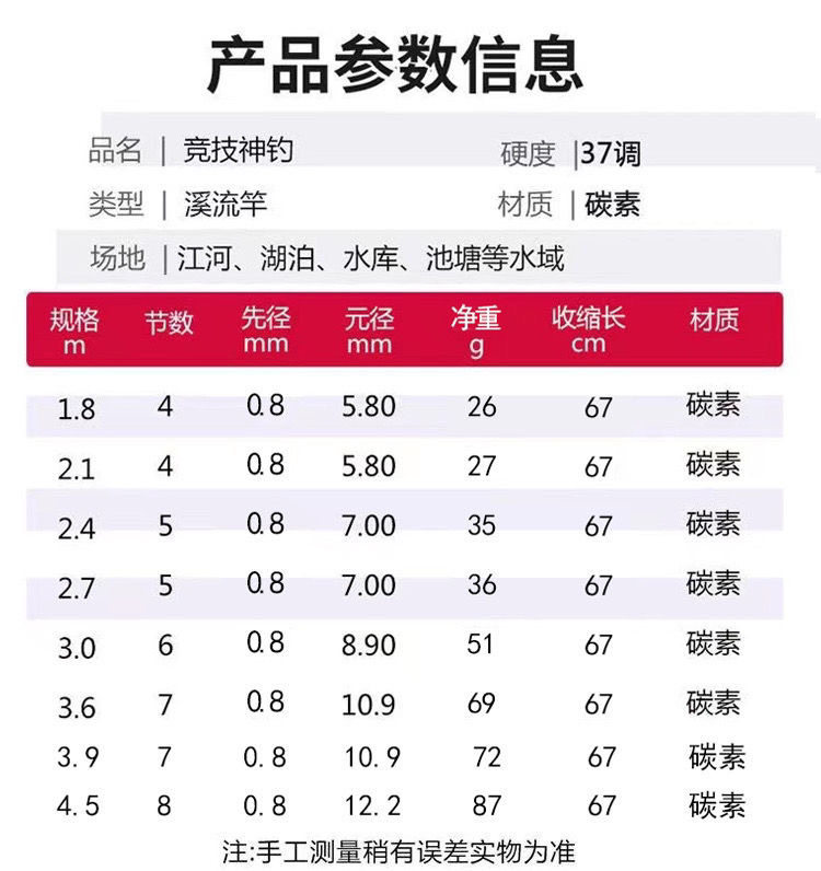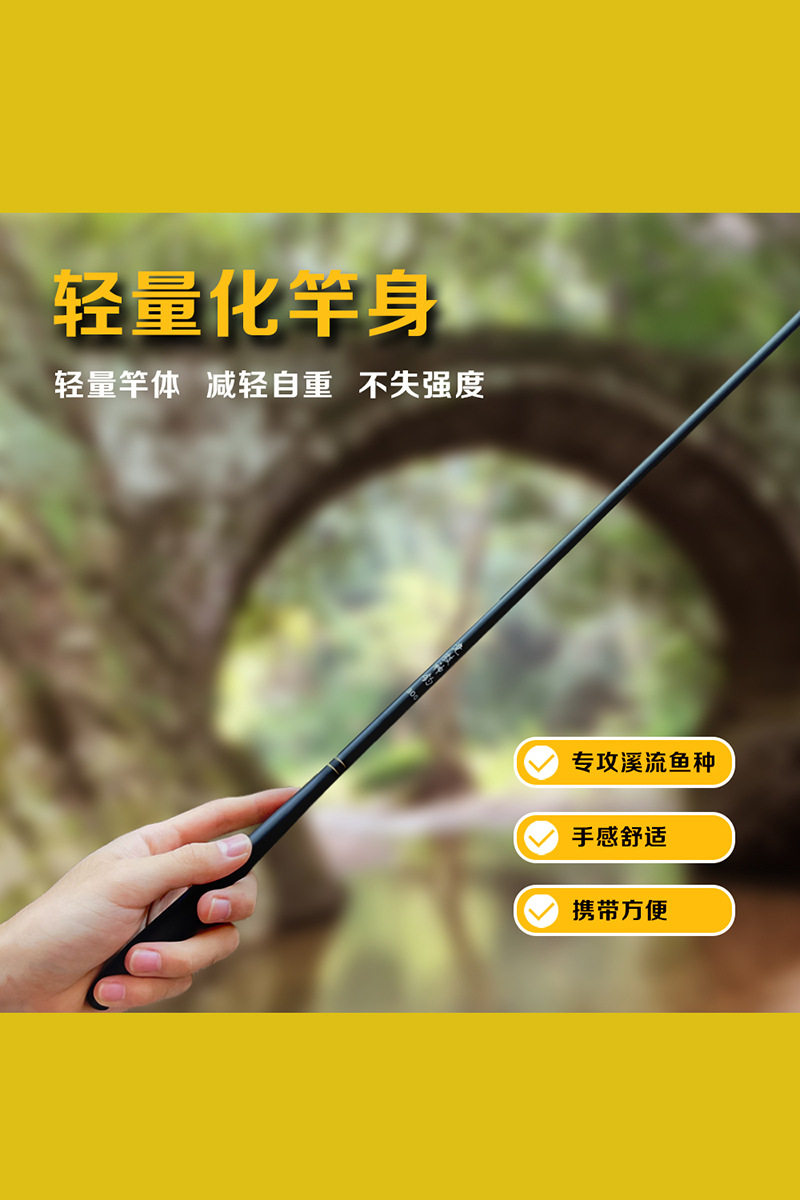 溪流野钓竿37调小物手竿鲫鱼竿白条马口石斑虾竿超细碳素杆