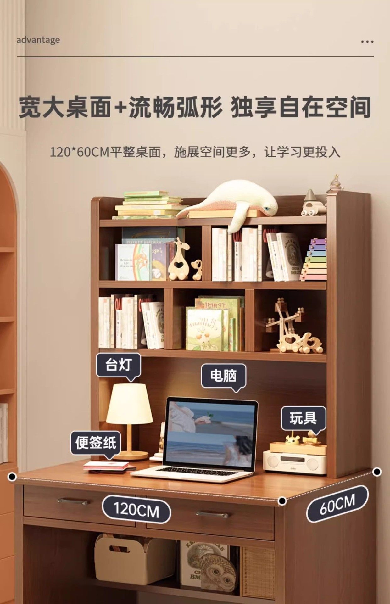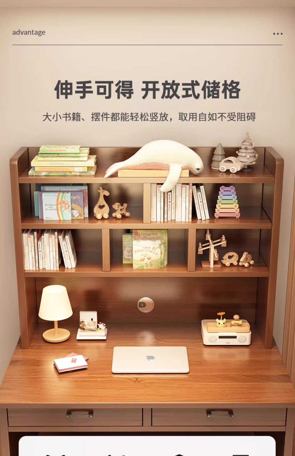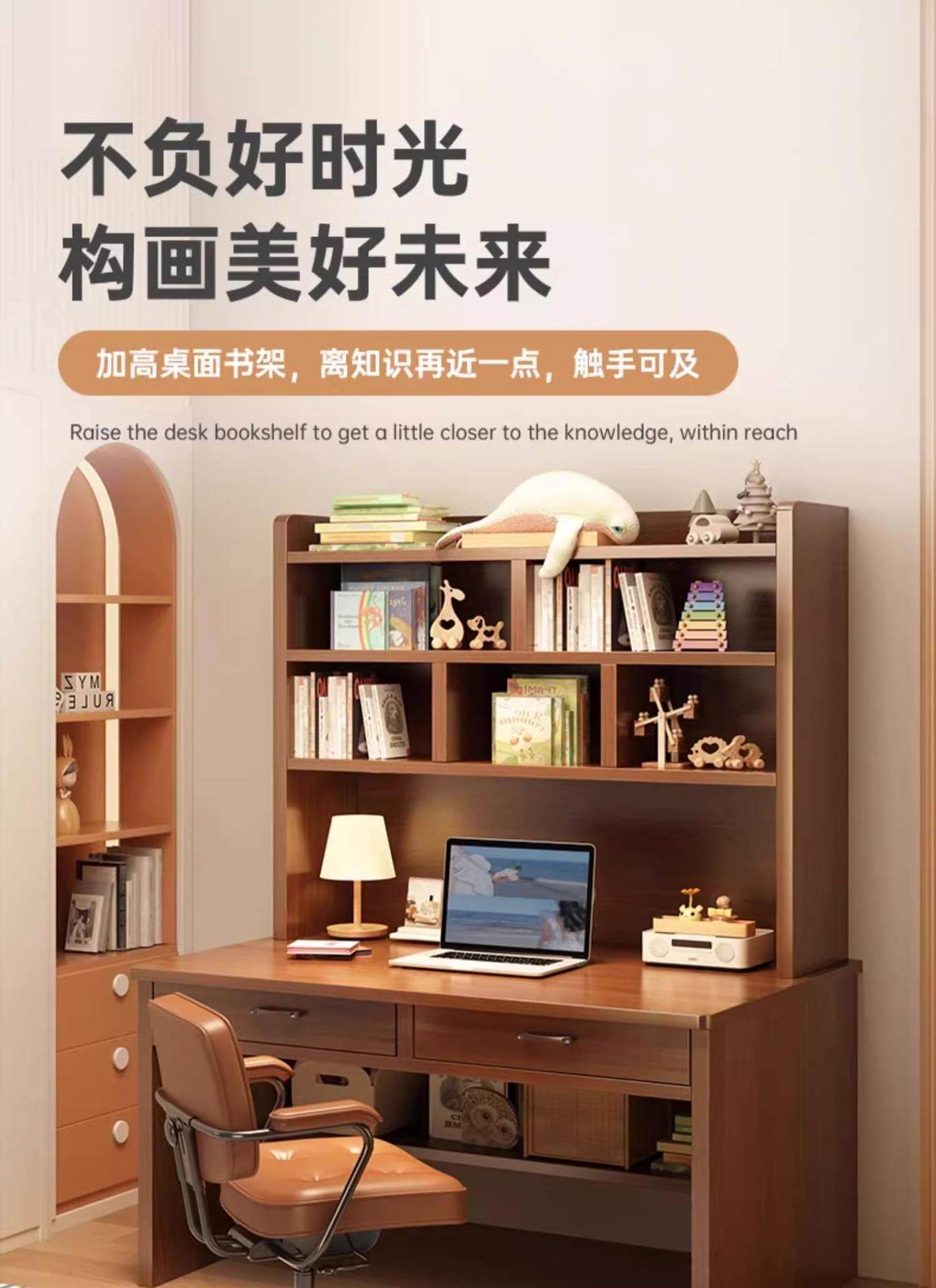 书桌书架一体桌子实木学习桌卧室写字桌学生办公桌家用台式电脑桌