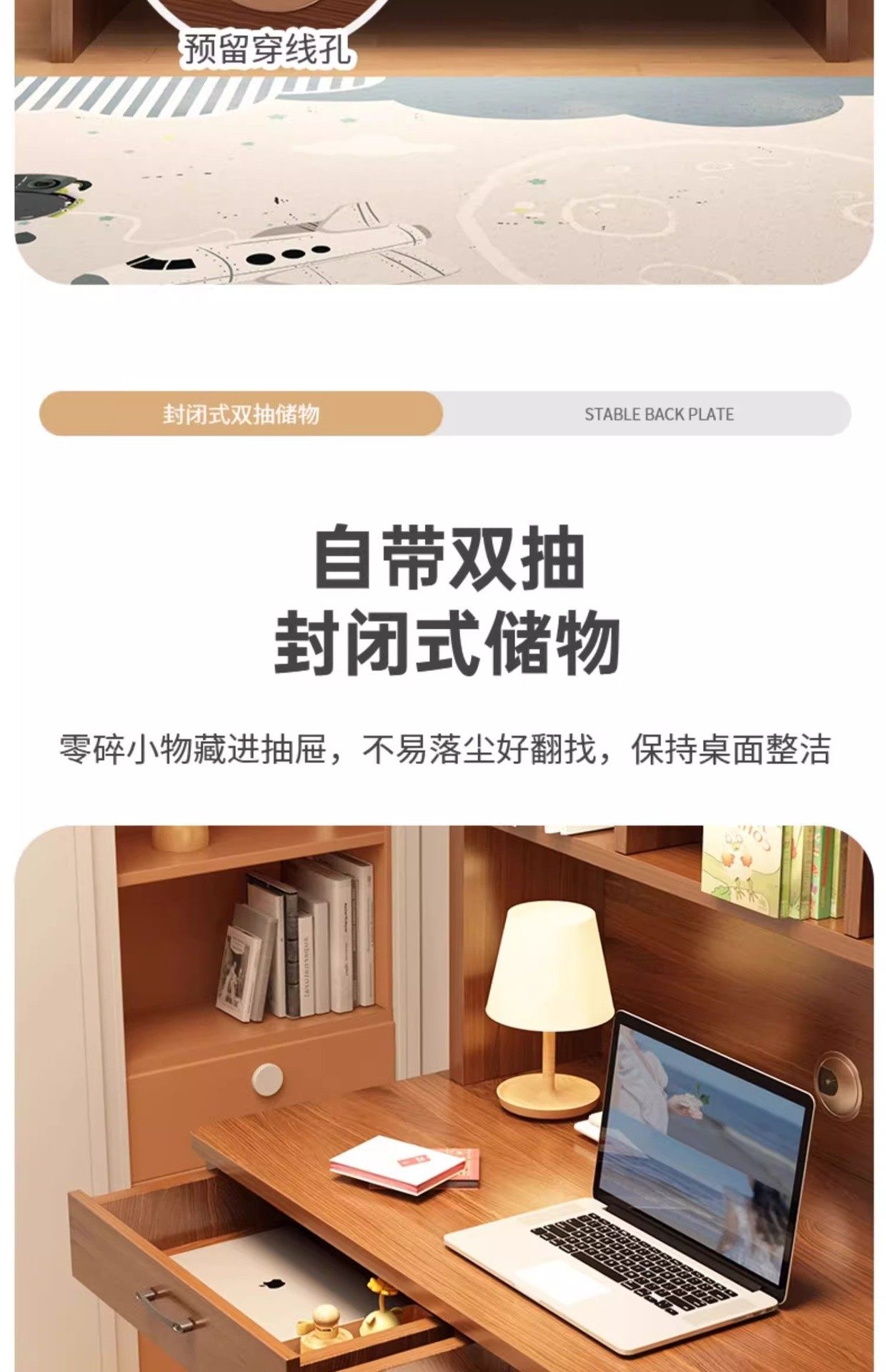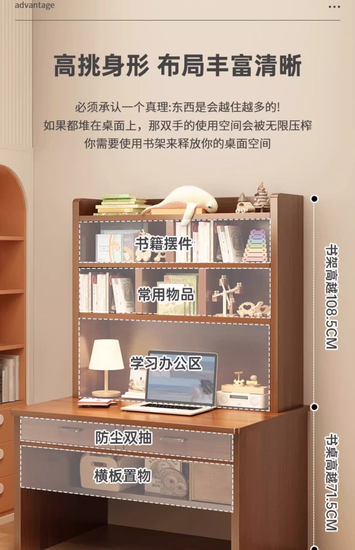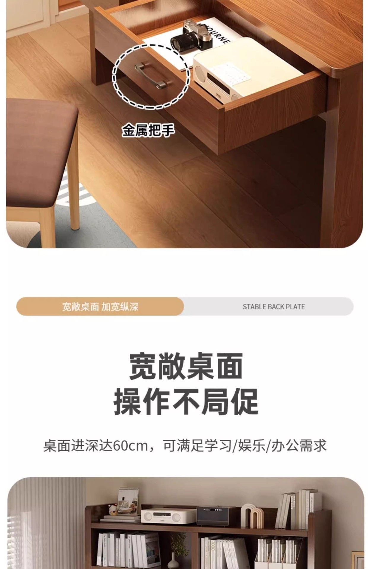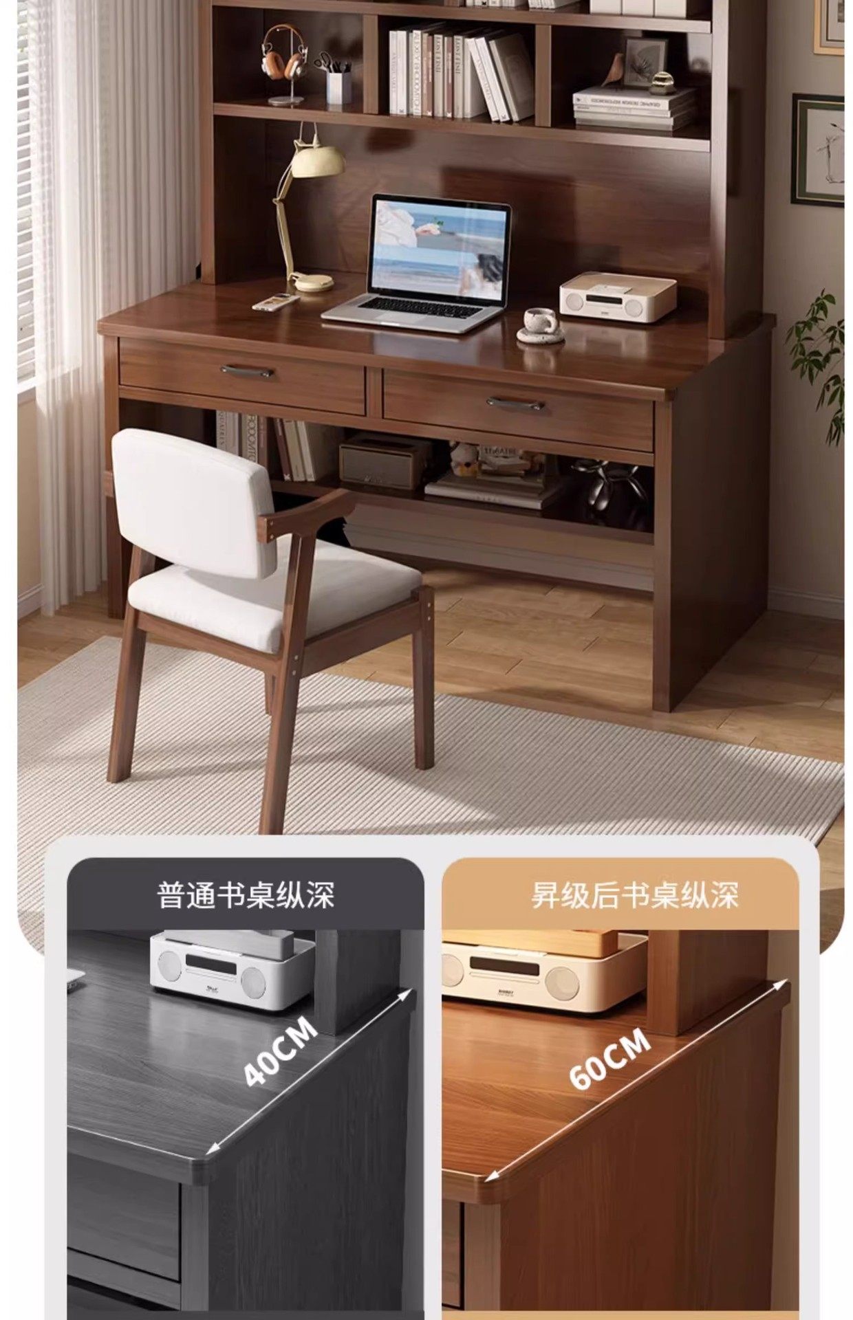 书桌书架一体桌子实木学习桌卧室写字桌学生办公桌家用台式电脑桌