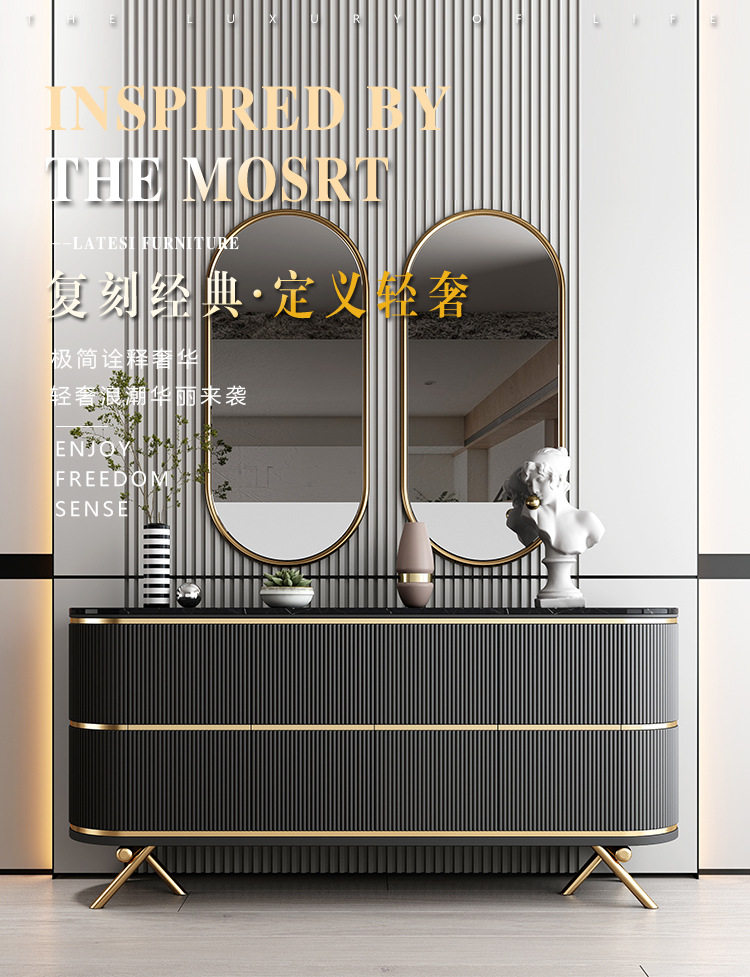 意式极简餐边柜斗柜一体卧室北欧简约高级感大理石玄关柜子收纳