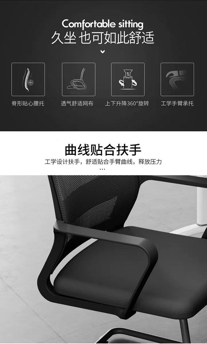 办公椅电脑椅弓形网椅员工职员简约会议椅麻将宿舍靠背家用学生椅