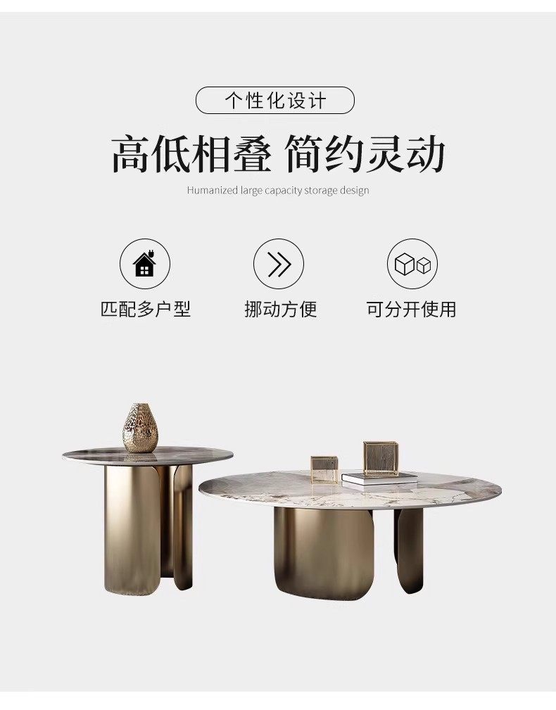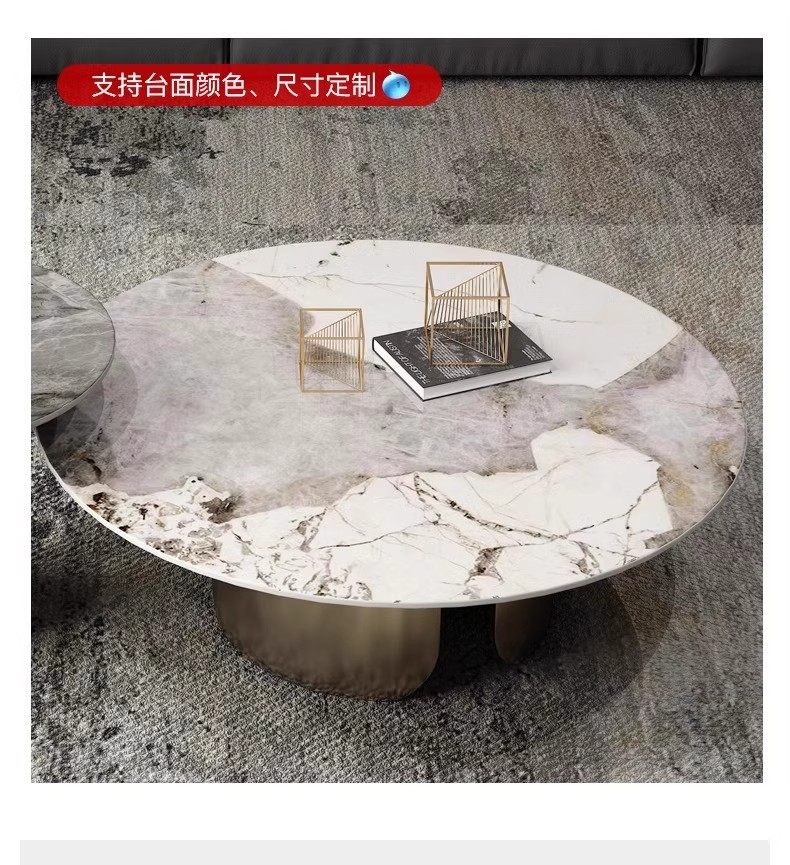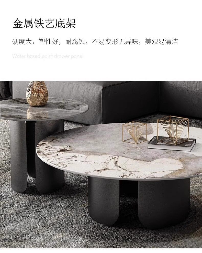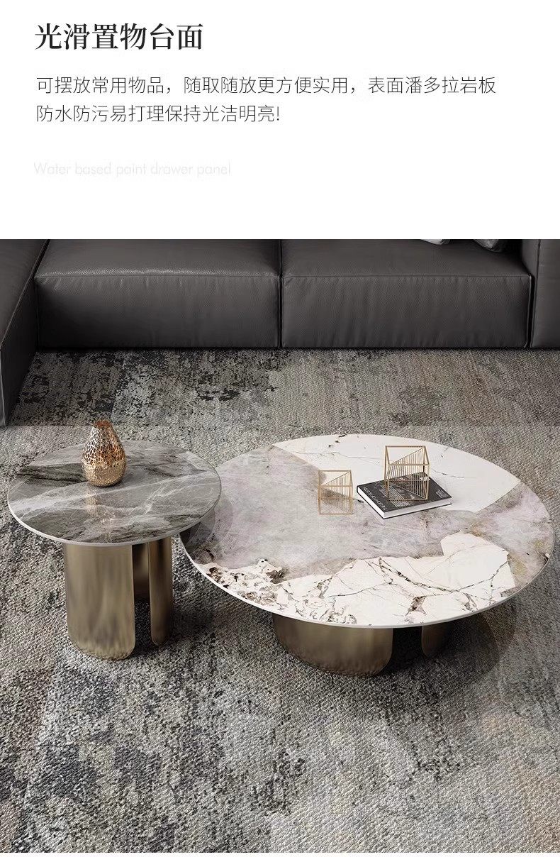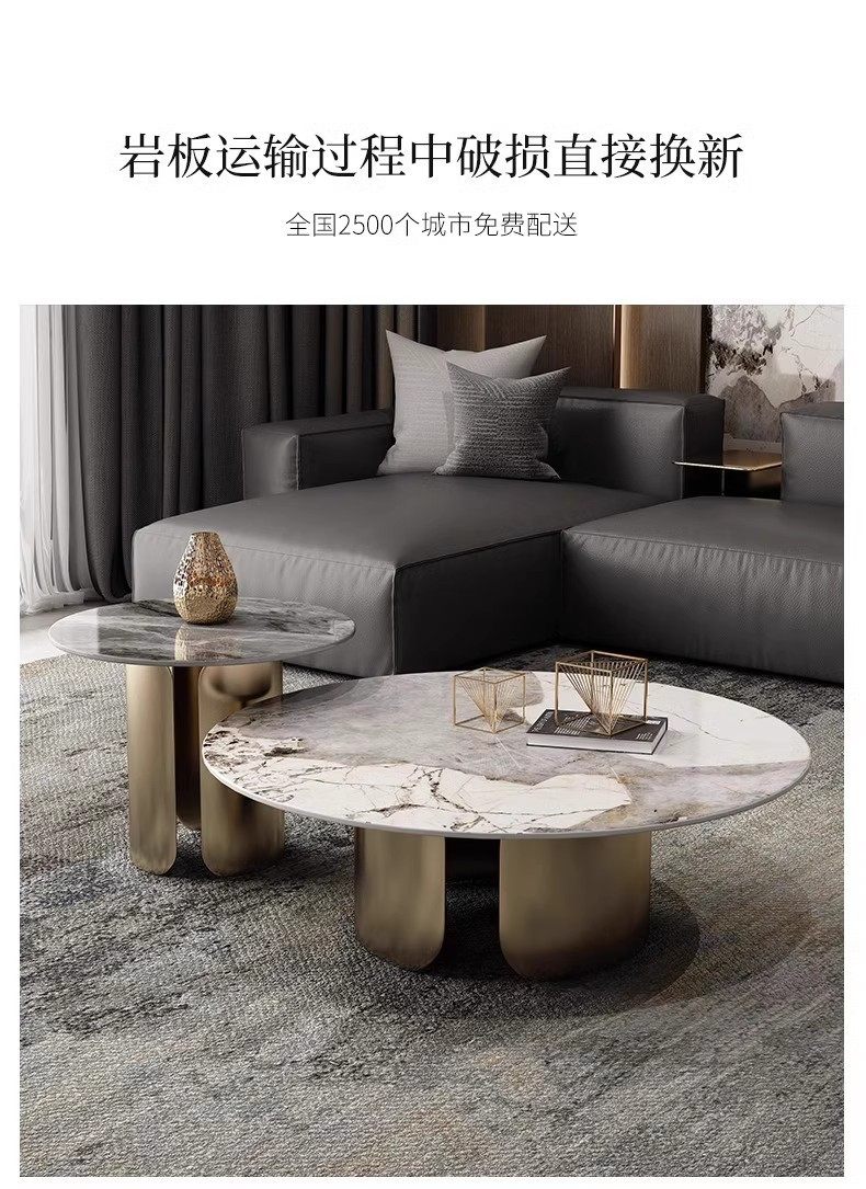 意式潘多拉岩板圆形茶几组合茶几客厅高级感客厅家用小户型茶几桌