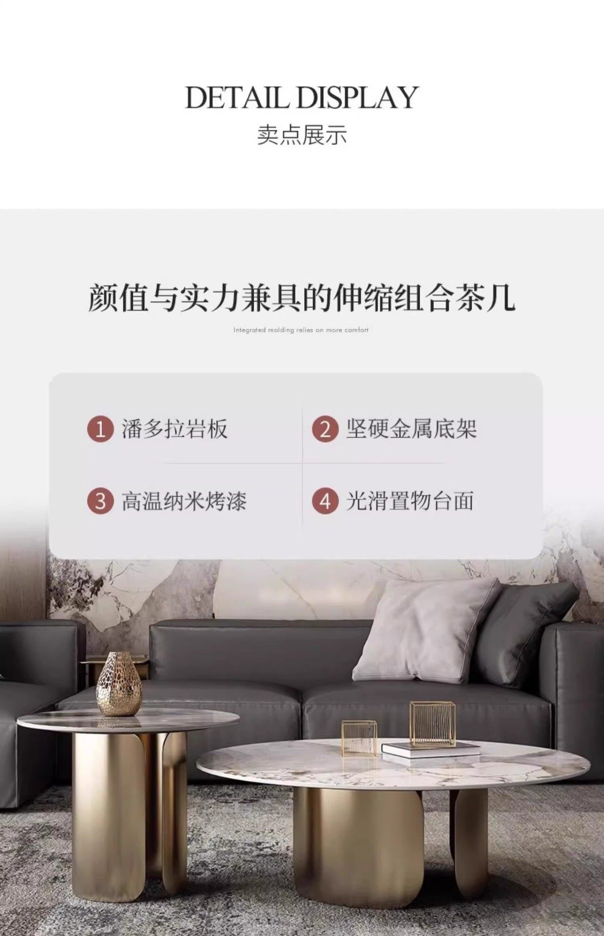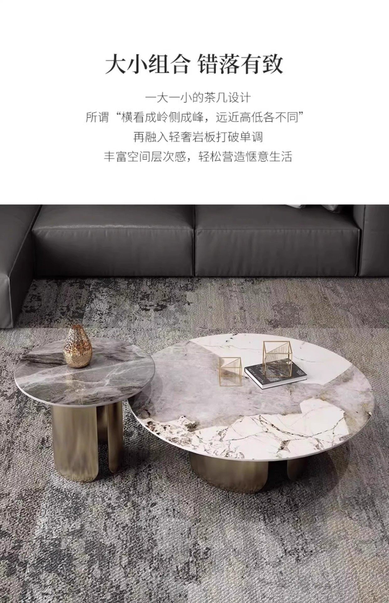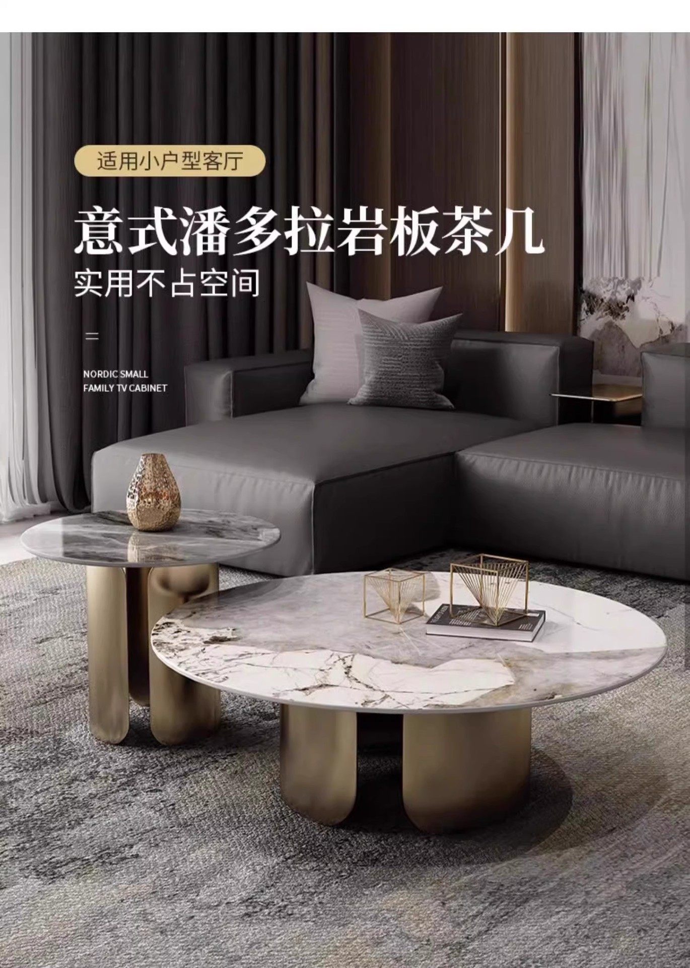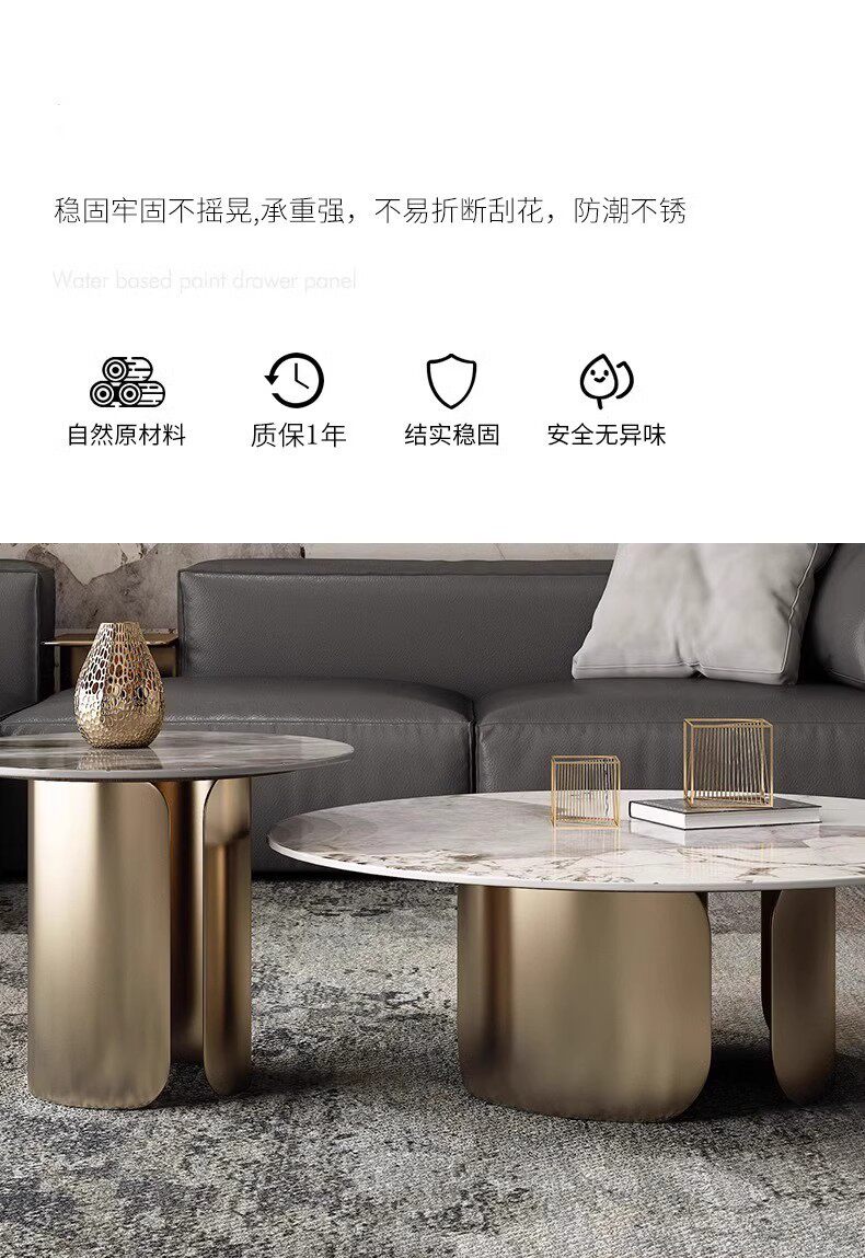 意式潘多拉岩板圆形茶几组合茶几客厅高级感客厅家用小户型茶几桌