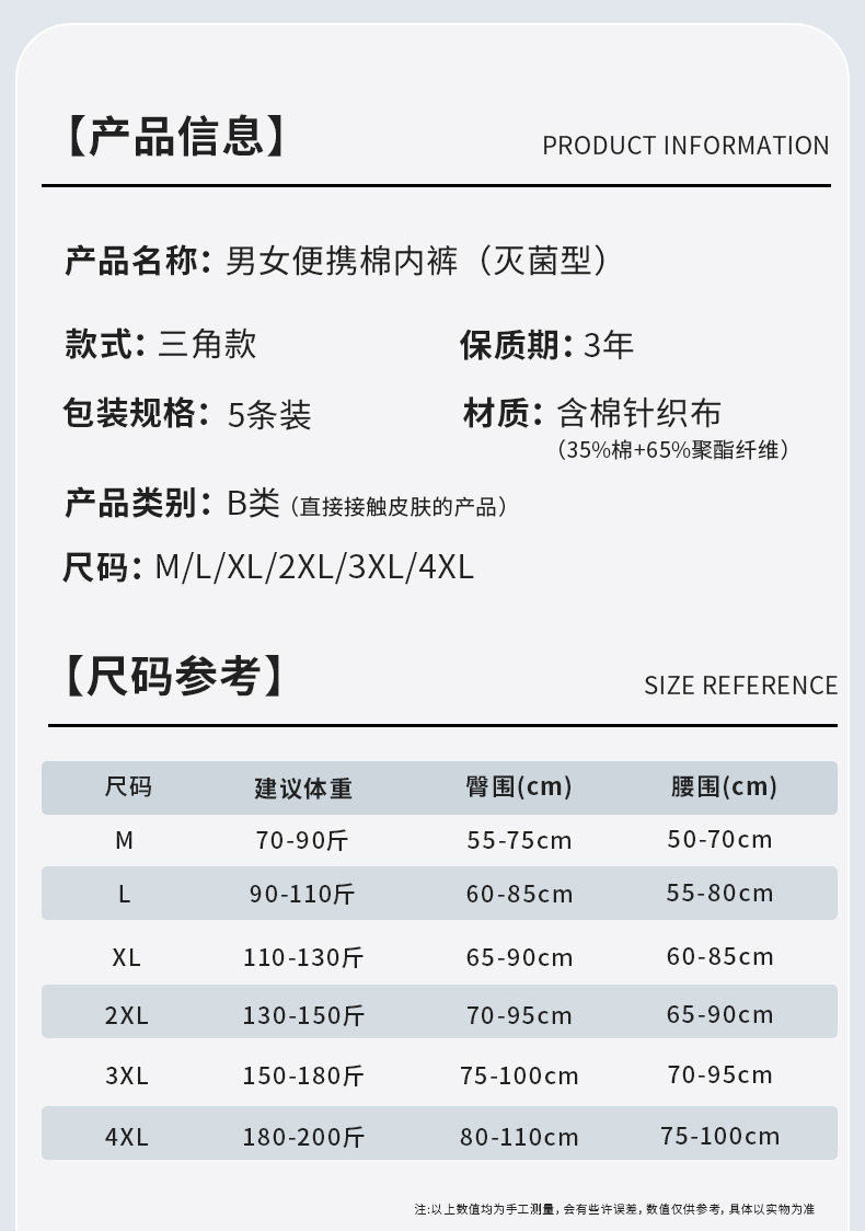 蓓安适一次性内裤棉男女士免洗旅游桑拿酒店出差独立包装棉柔内裤