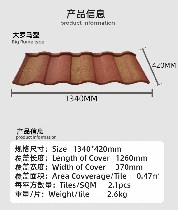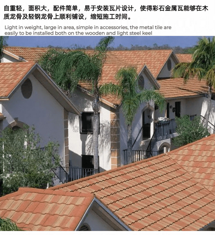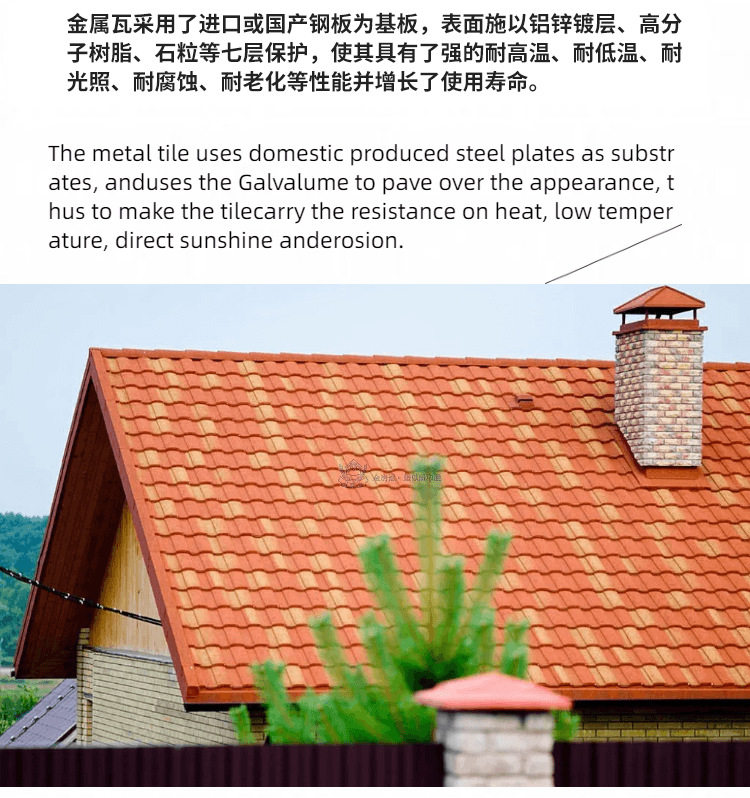 金房冠金属彩石瓦大罗马瓦防火防潮新农村改造别墅屋顶金属瓦片