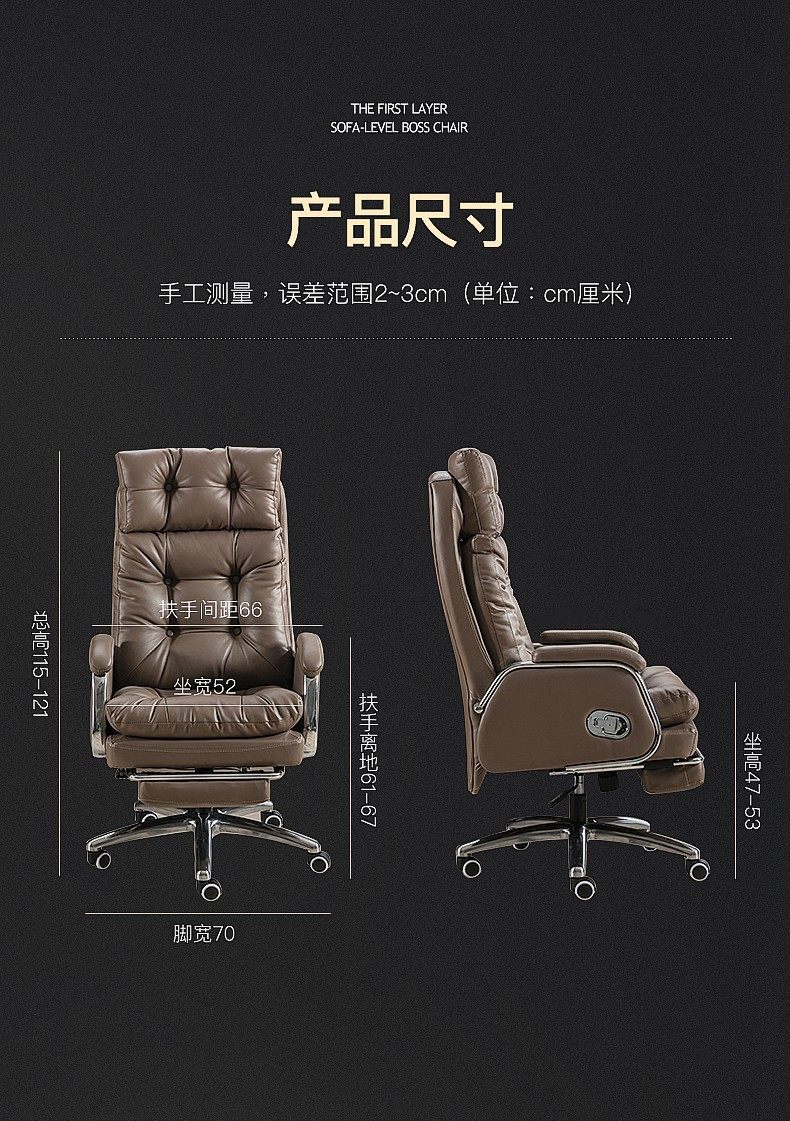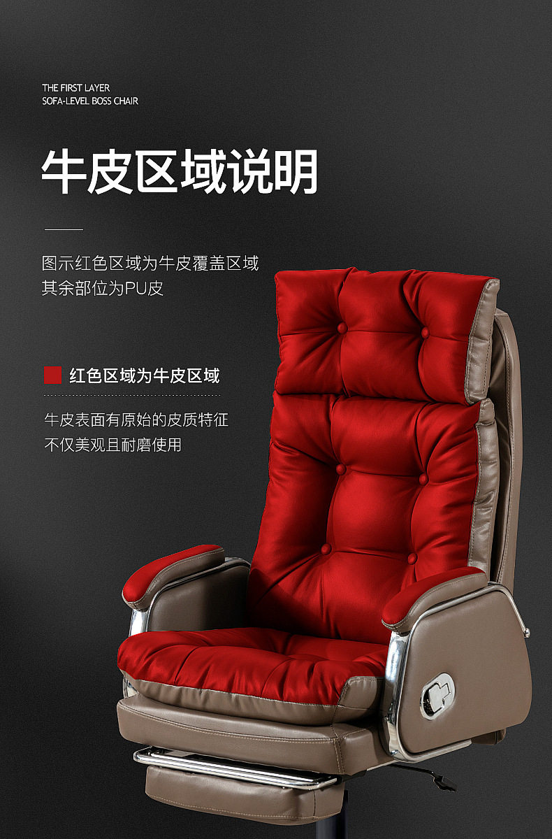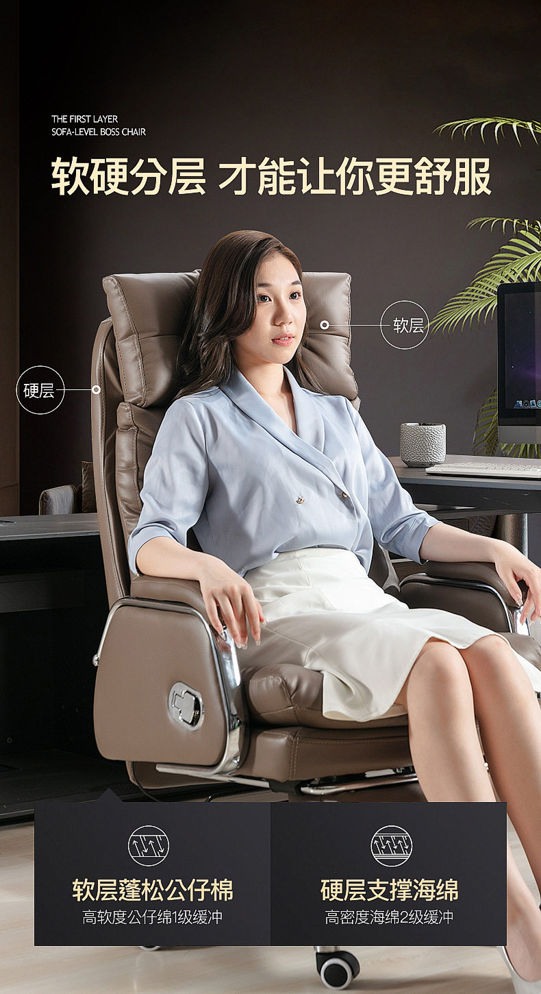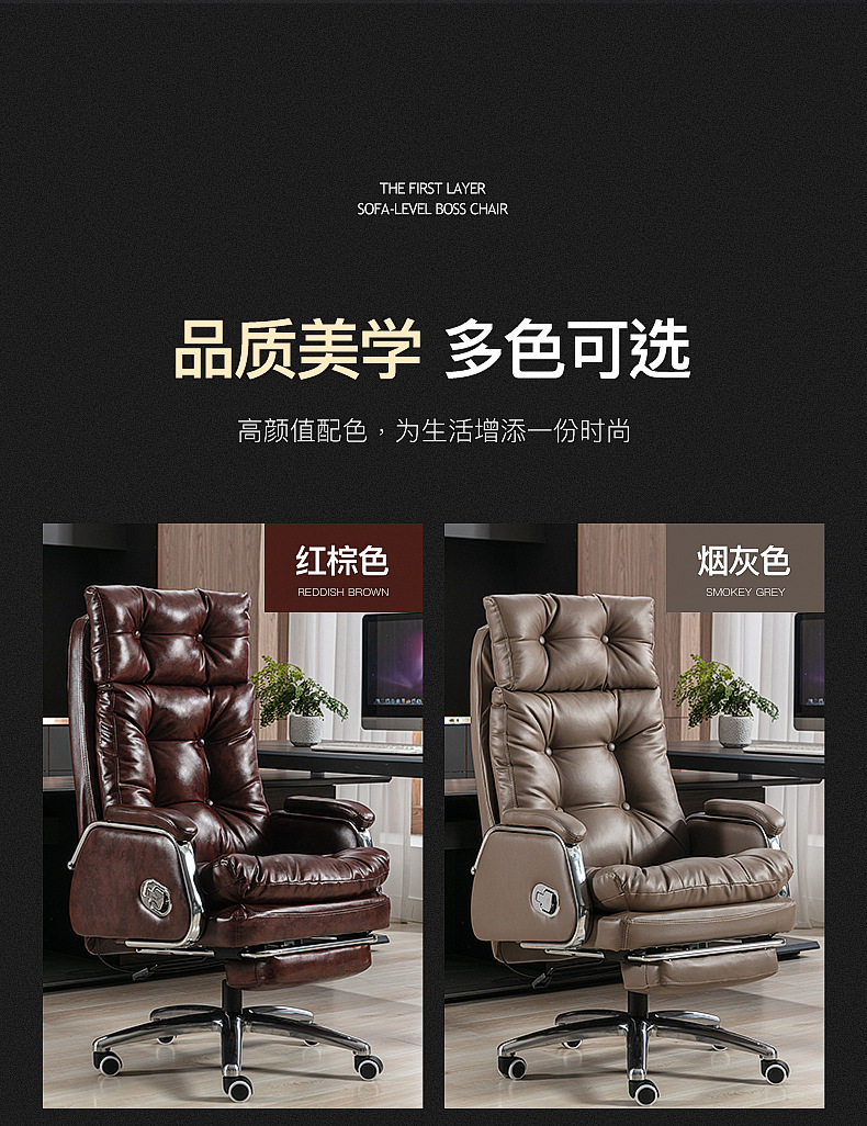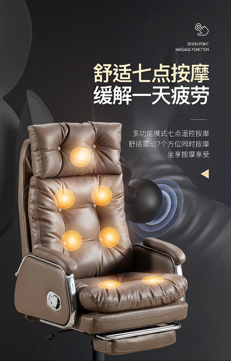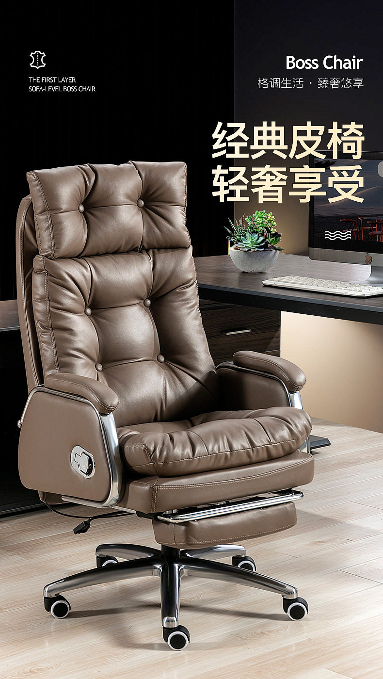 真皮老板椅办公室办公椅家用舒适久坐电脑椅书房可躺按摩椅大班椅