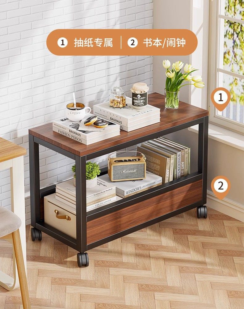 移动边几小书架带万向轮带桌下带书籍零食杂物收纳