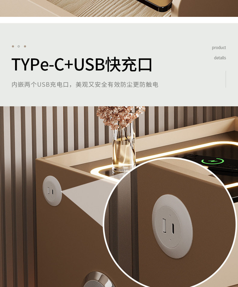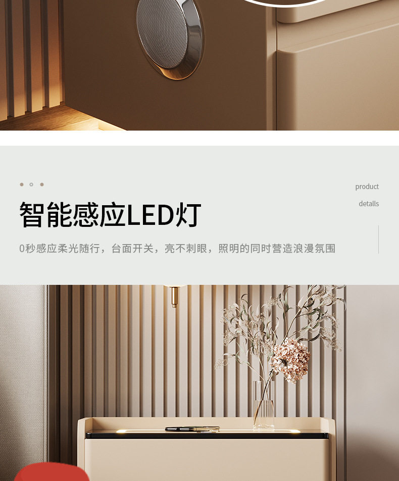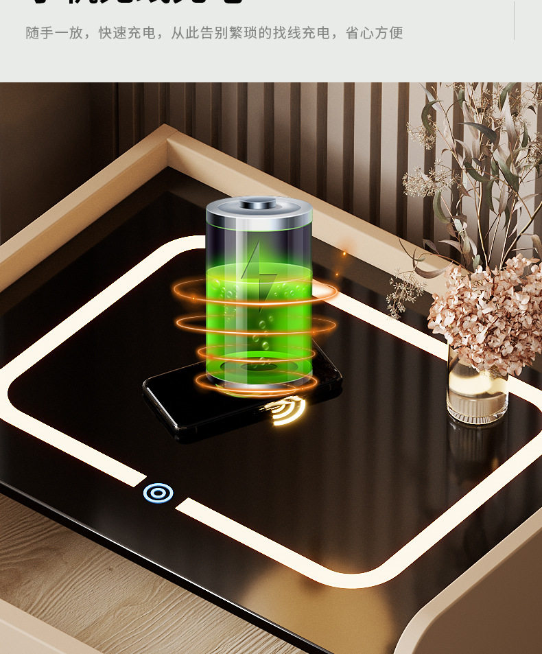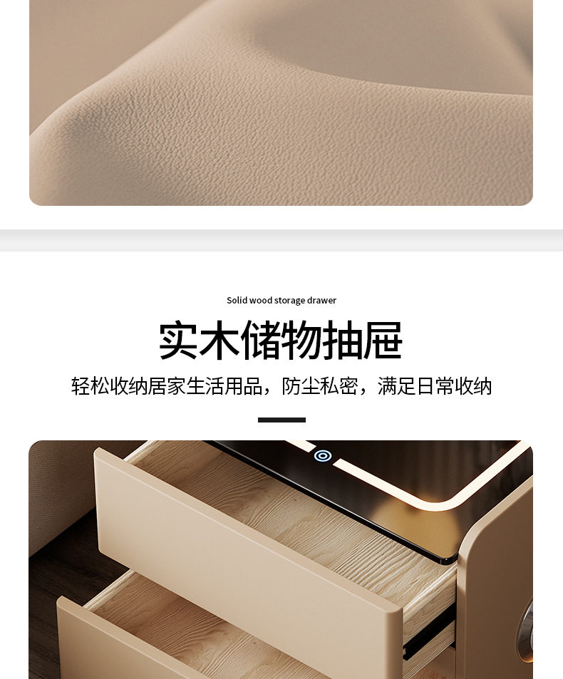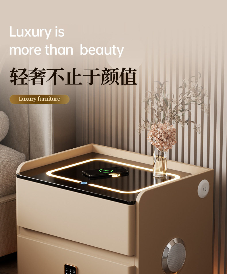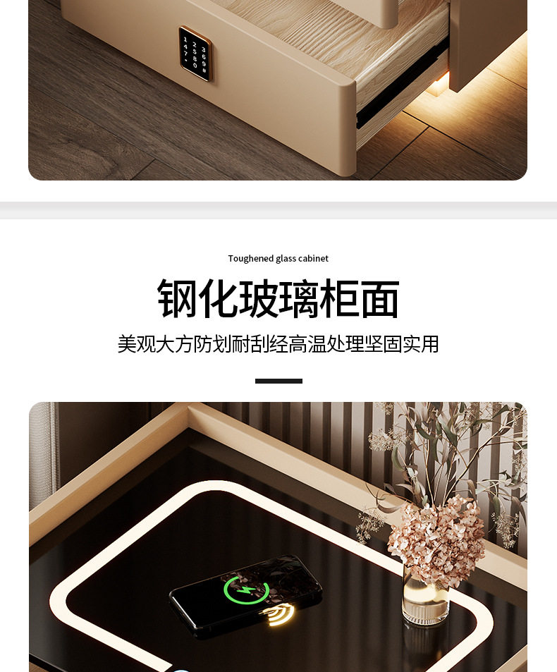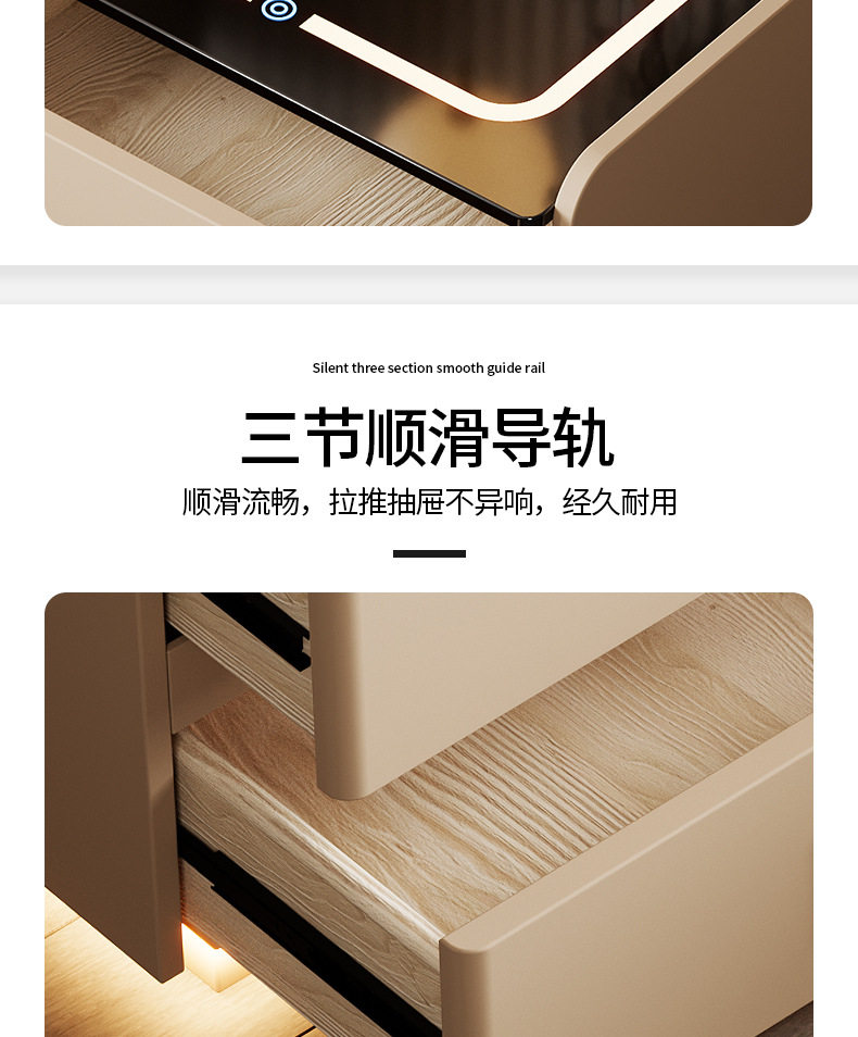 新款智能床头柜简约现代卧室多功能床边柜轻奢高级无线充电储物柜