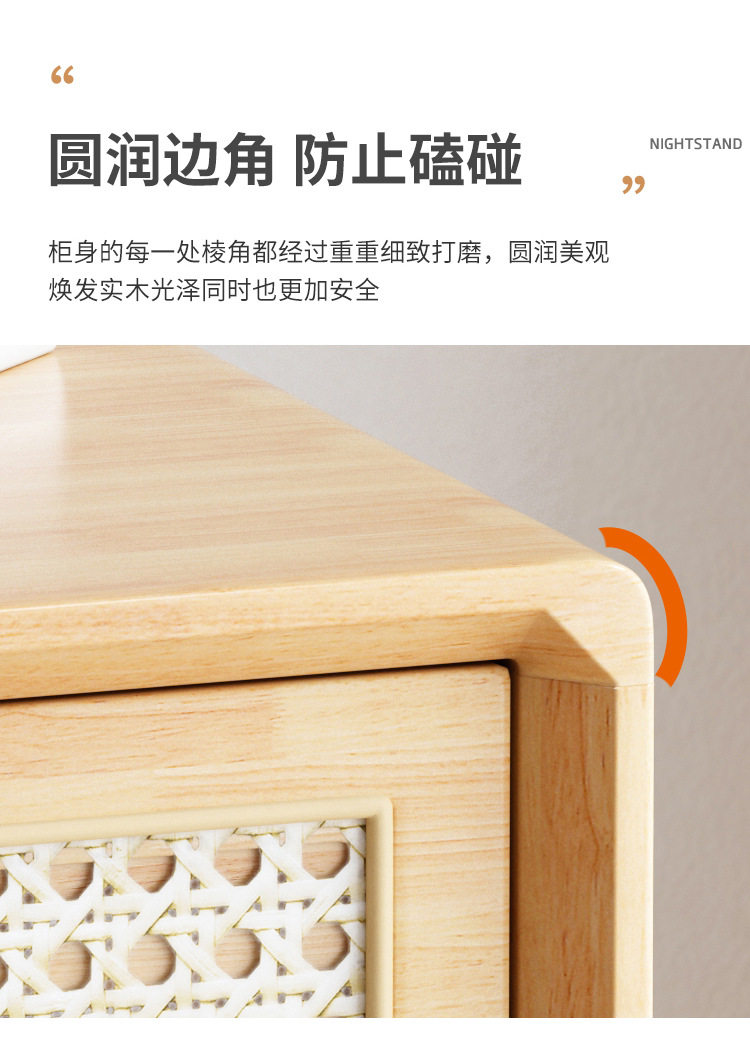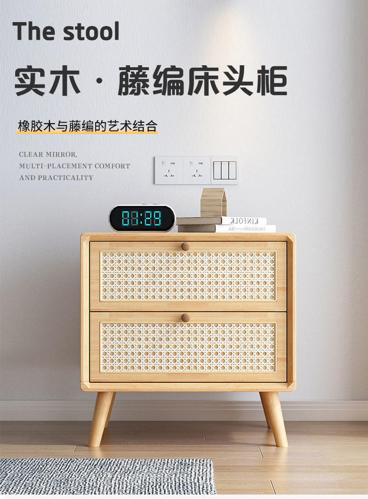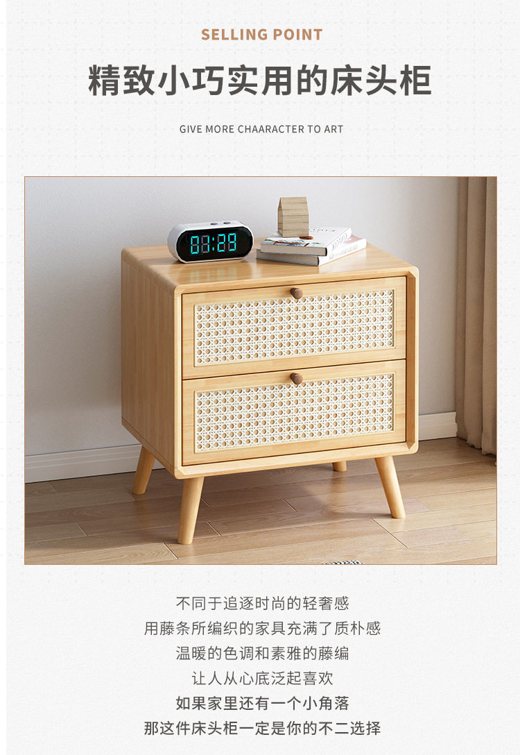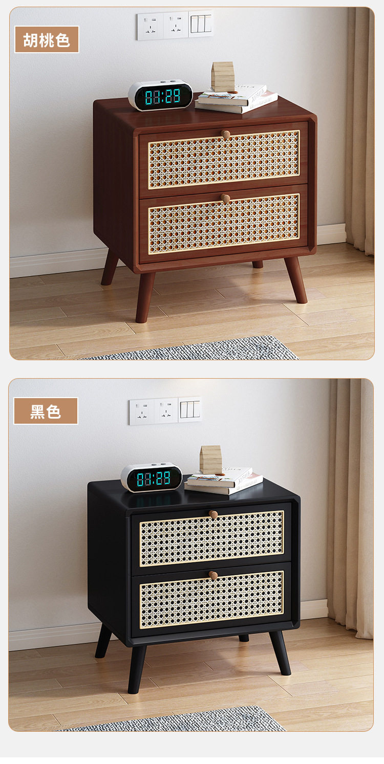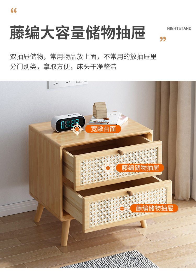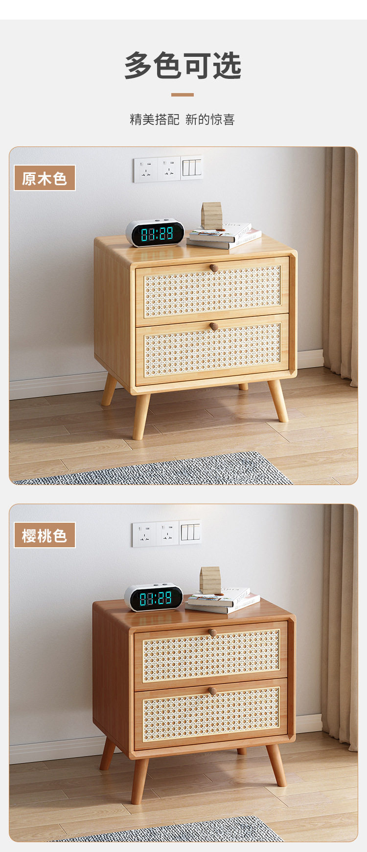藤编床头柜实木樱桃色胡桃色原木色北欧简约诧寂风木制储物柜收纳