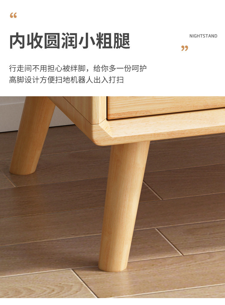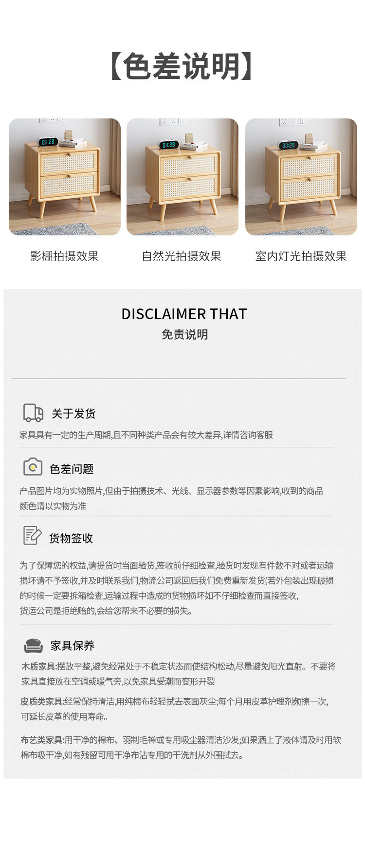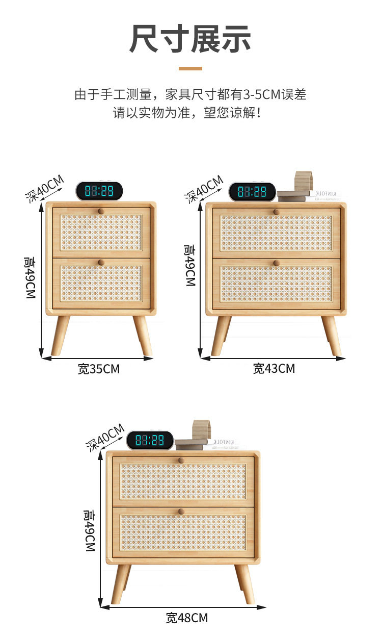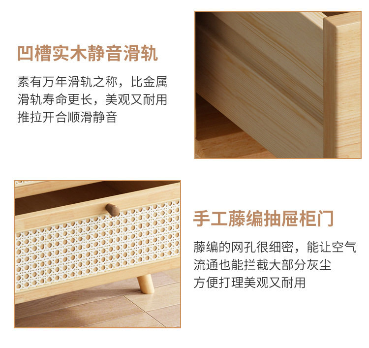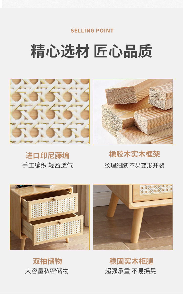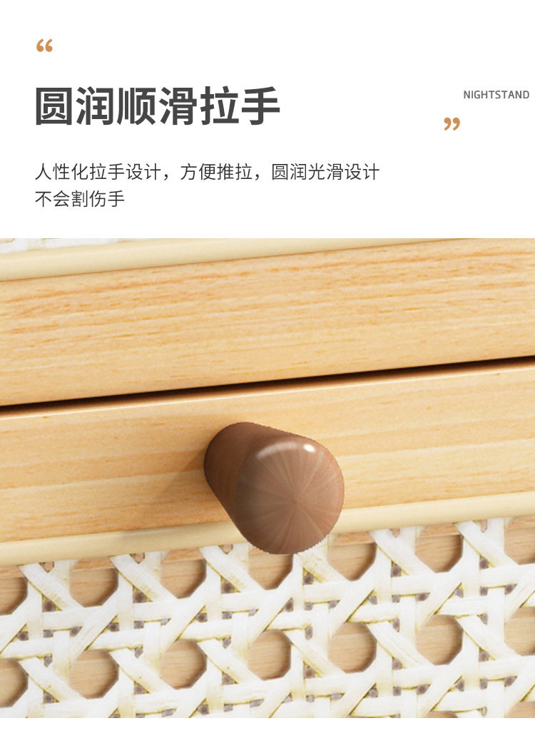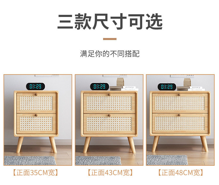 藤编床头柜实木樱桃色胡桃色原木色北欧简约诧寂风木制储物柜收纳