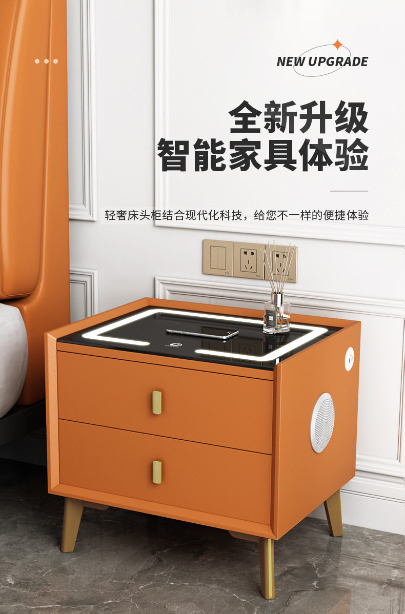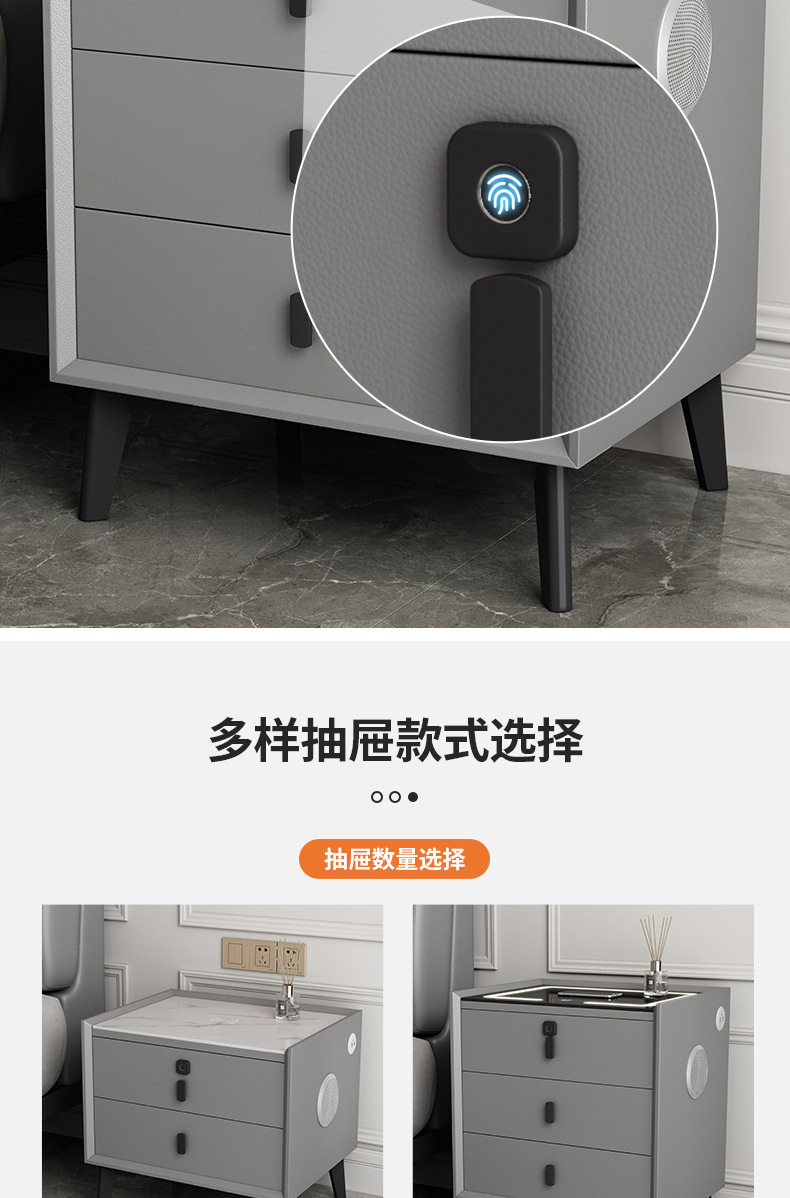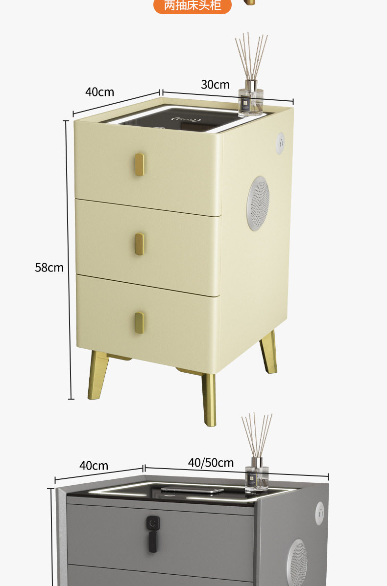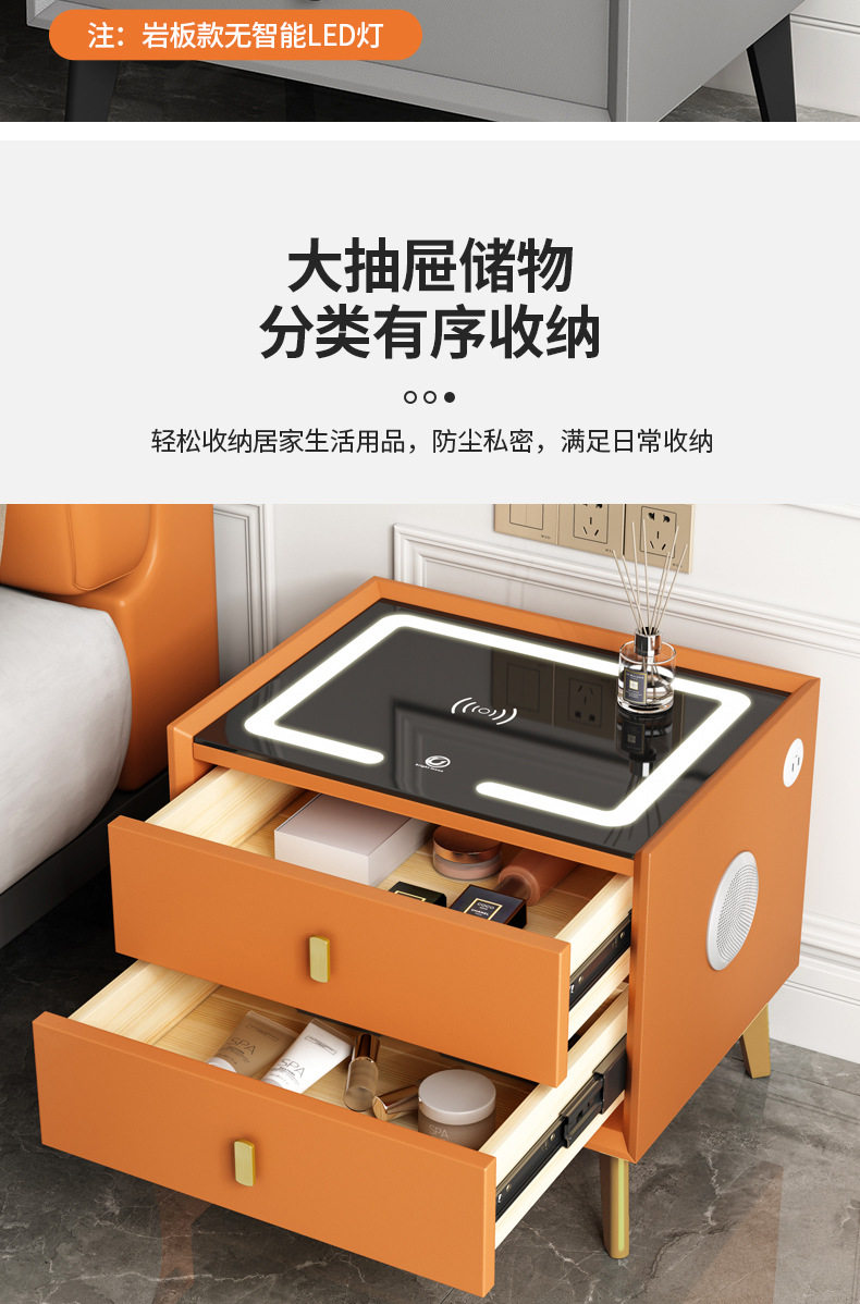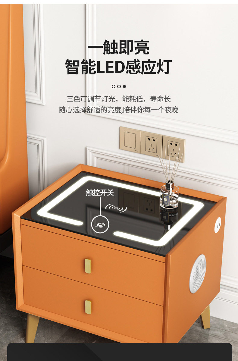 多功能智能床头柜蓝牙音箱现代简约卧室两抽无线充USB床边柜三抽