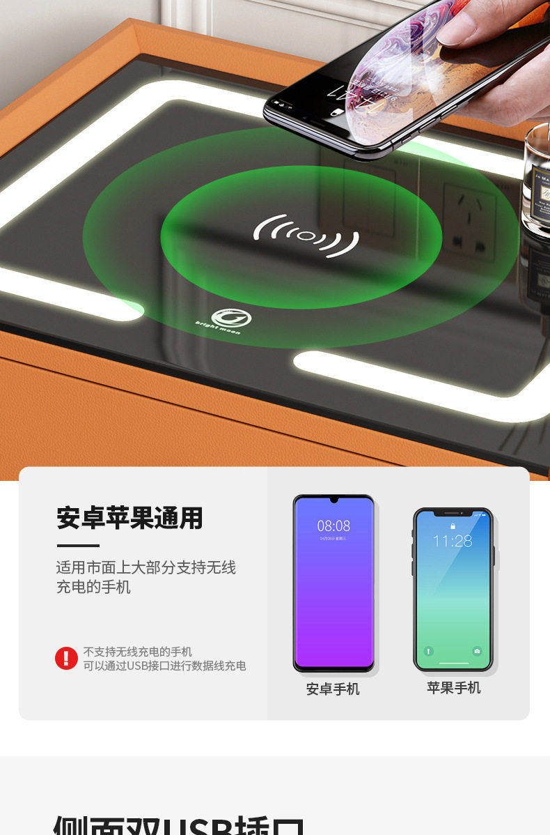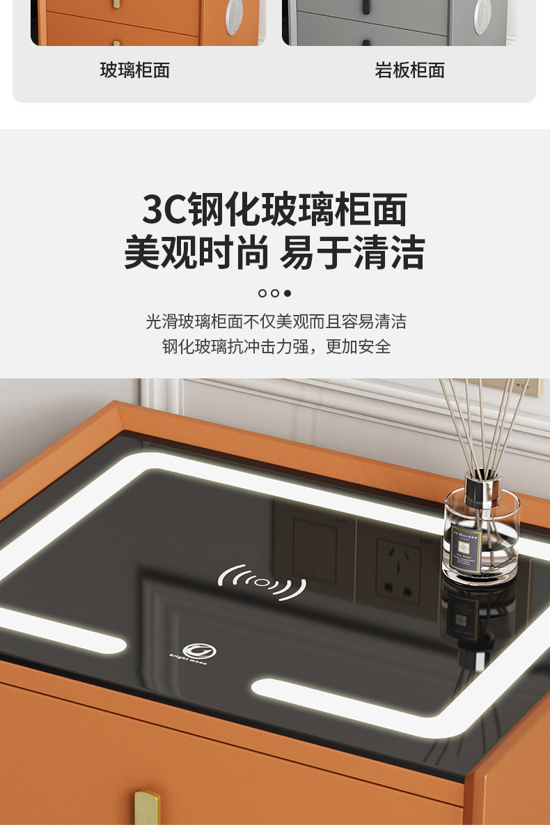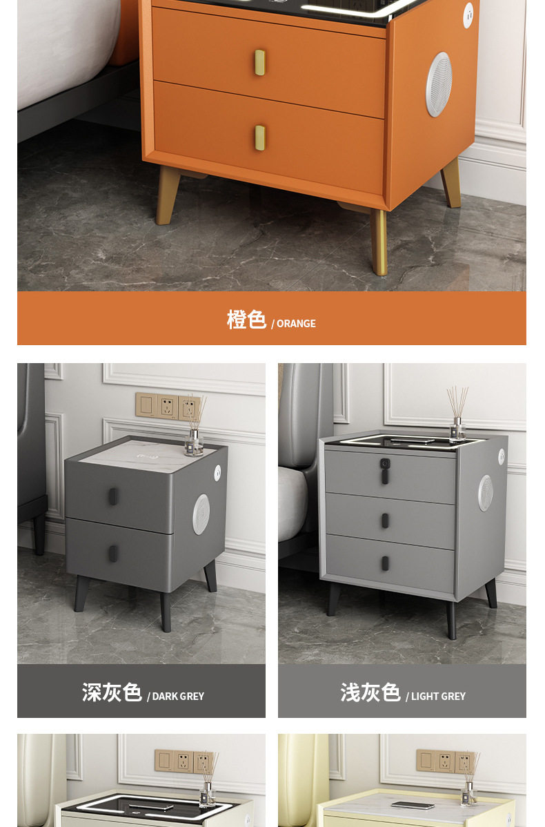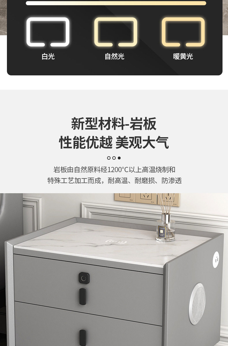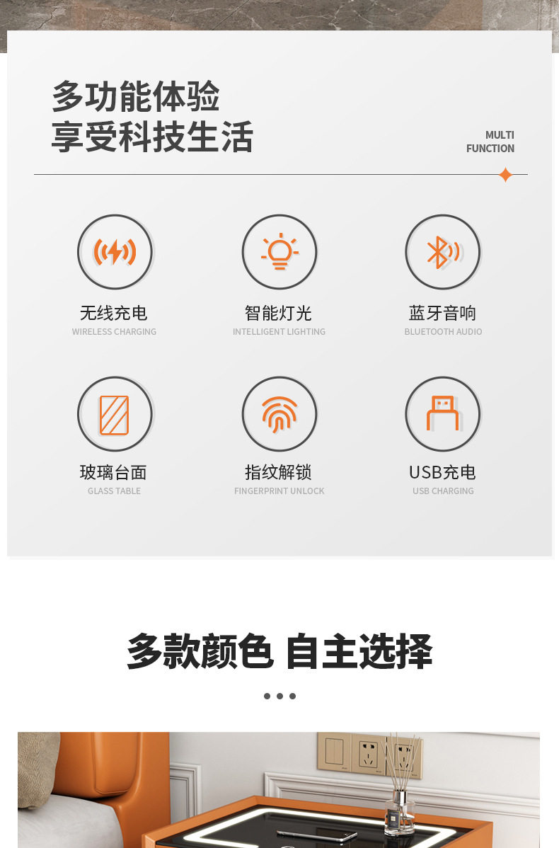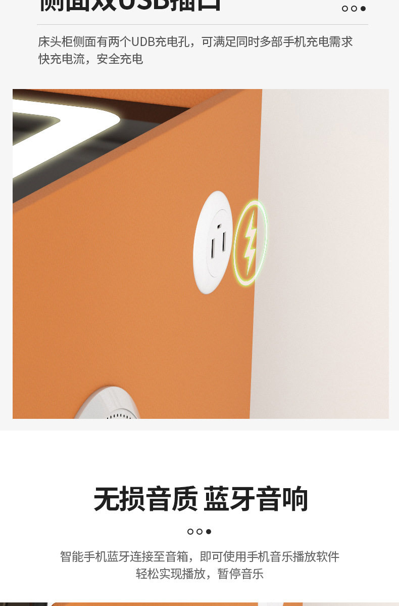 多功能智能床头柜蓝牙音箱现代简约卧室两抽无线充USB床边柜三抽