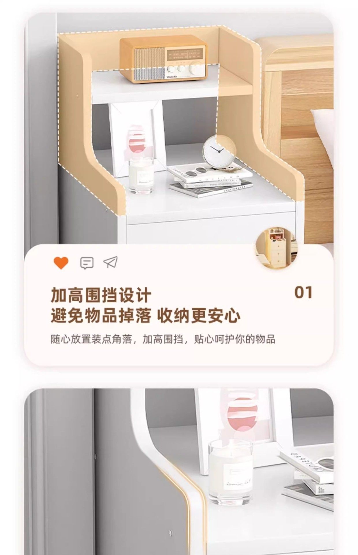 床头柜小型多功能储物收纳柜一体卧室床边靠墙柜子简易迷你置物架