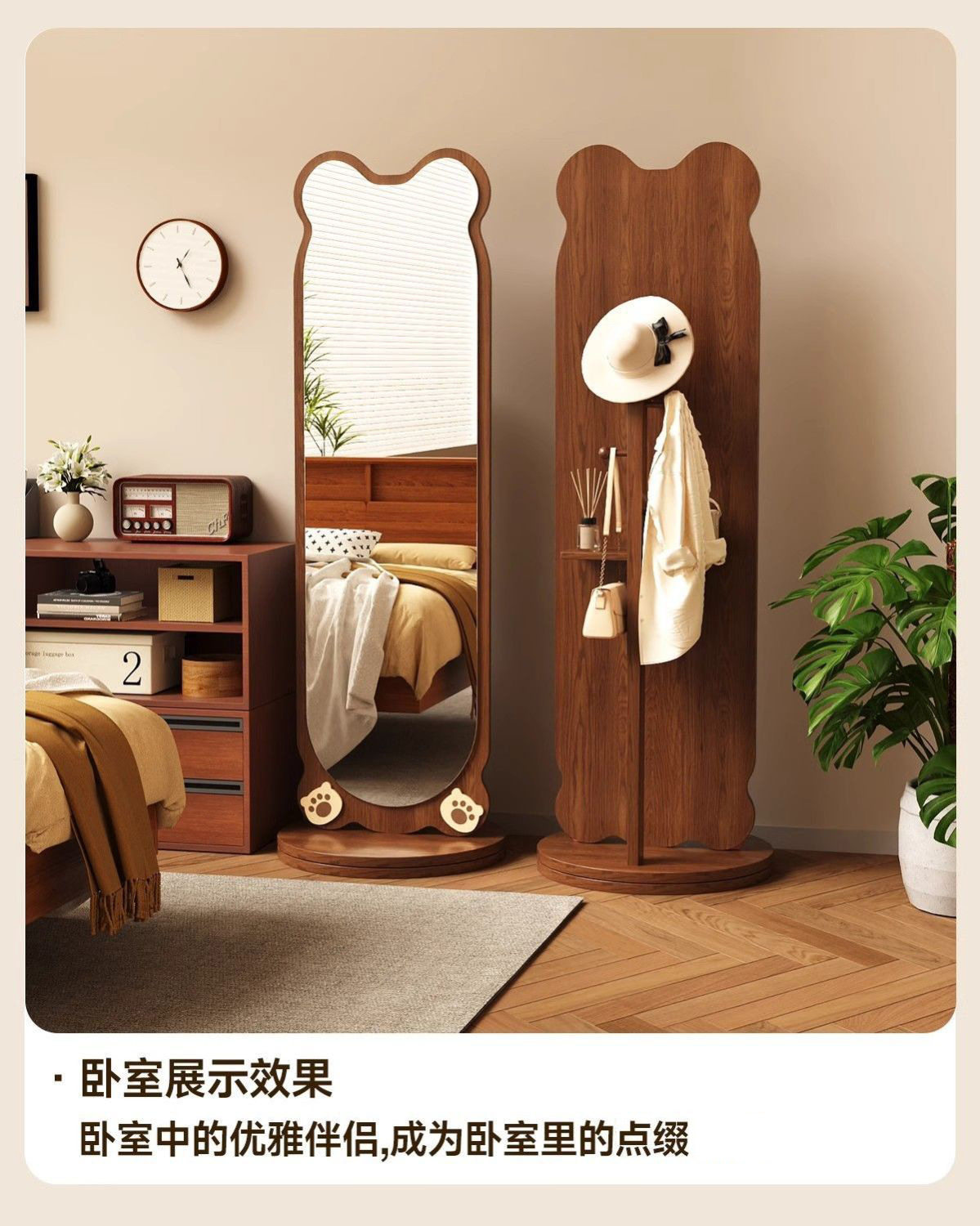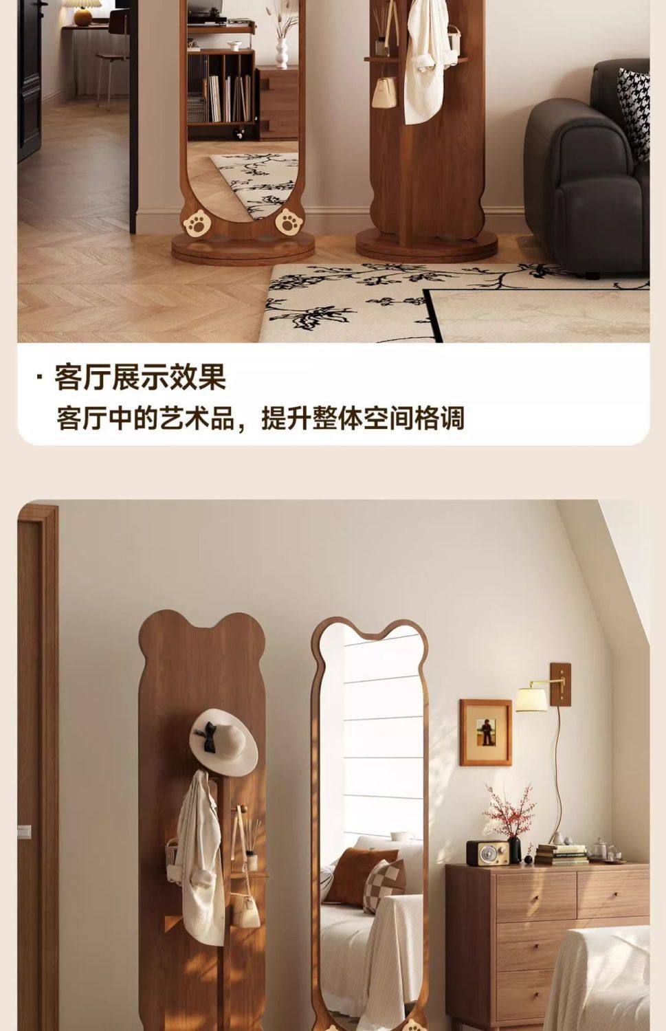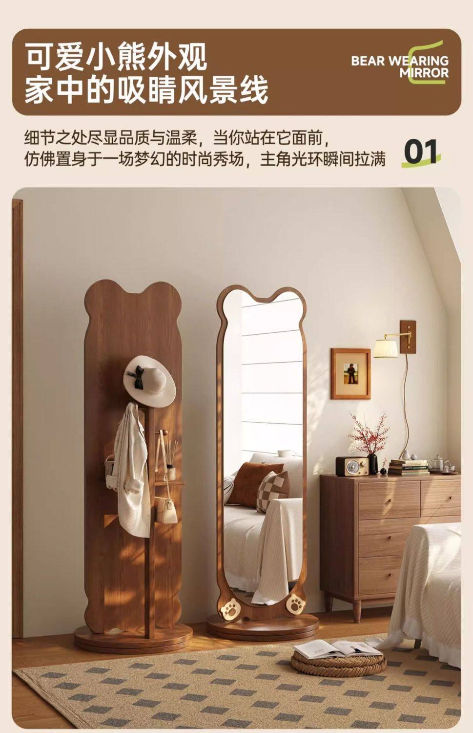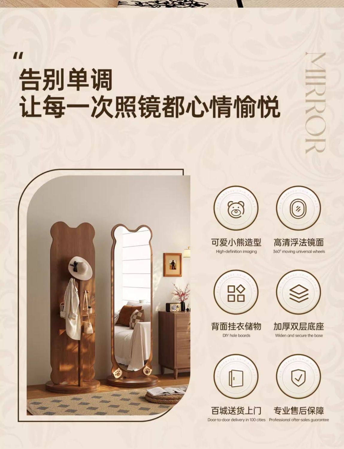 小熊全身镜可旋转女生卧室穿衣镜服装店试衣镜落地式镜子旋转落地