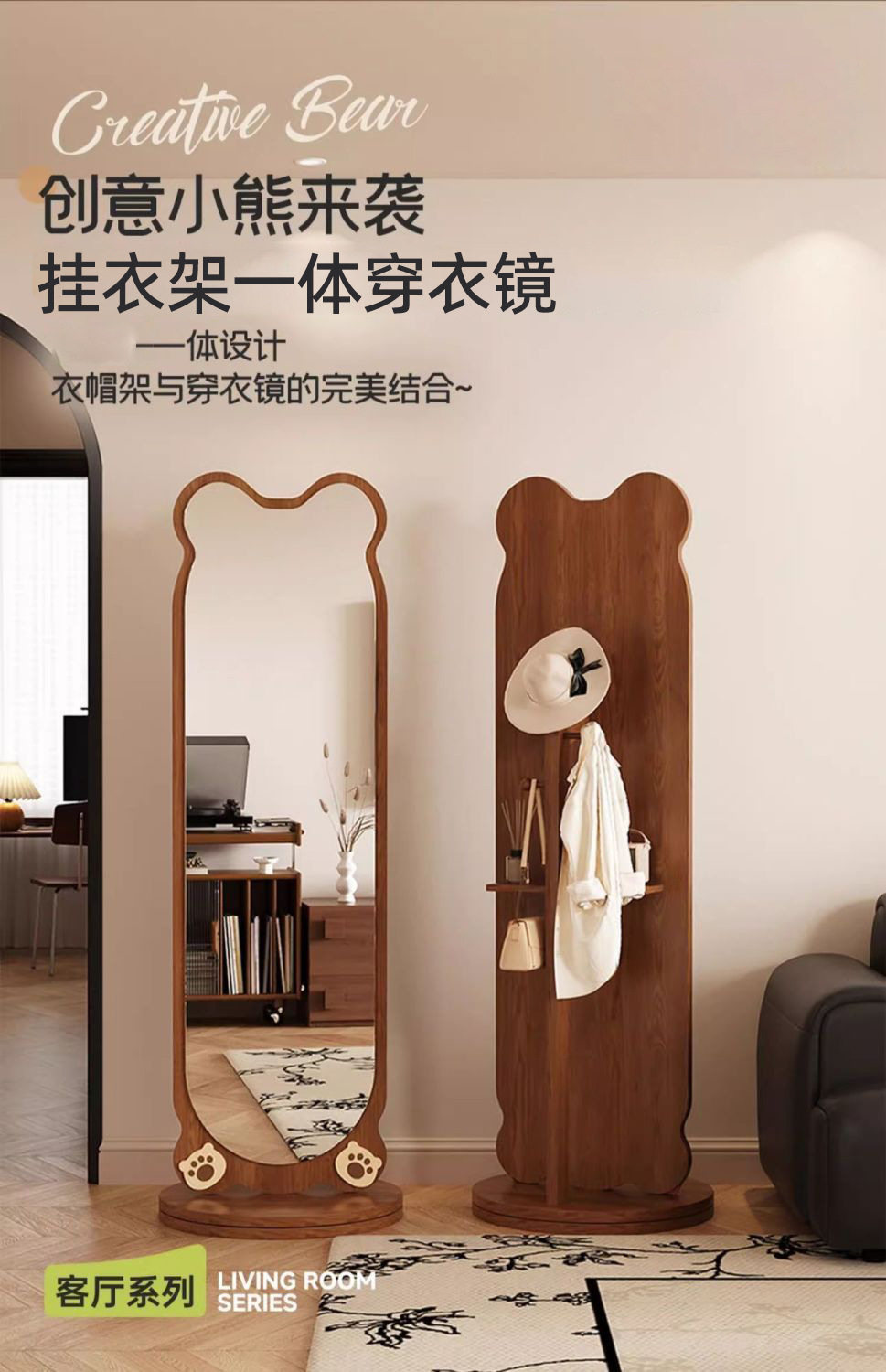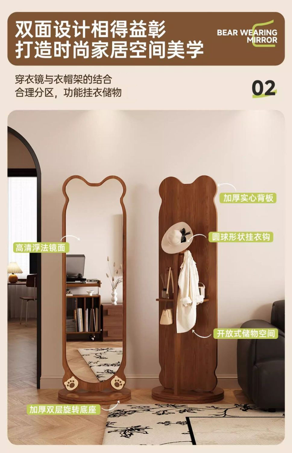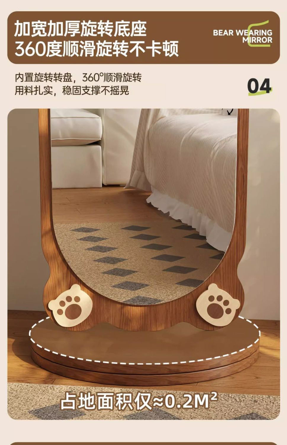 小熊全身镜可旋转女生卧室穿衣镜服装店试衣镜落地式镜子旋转落地