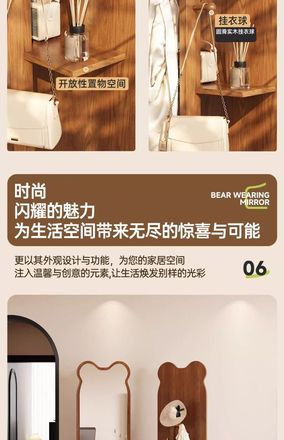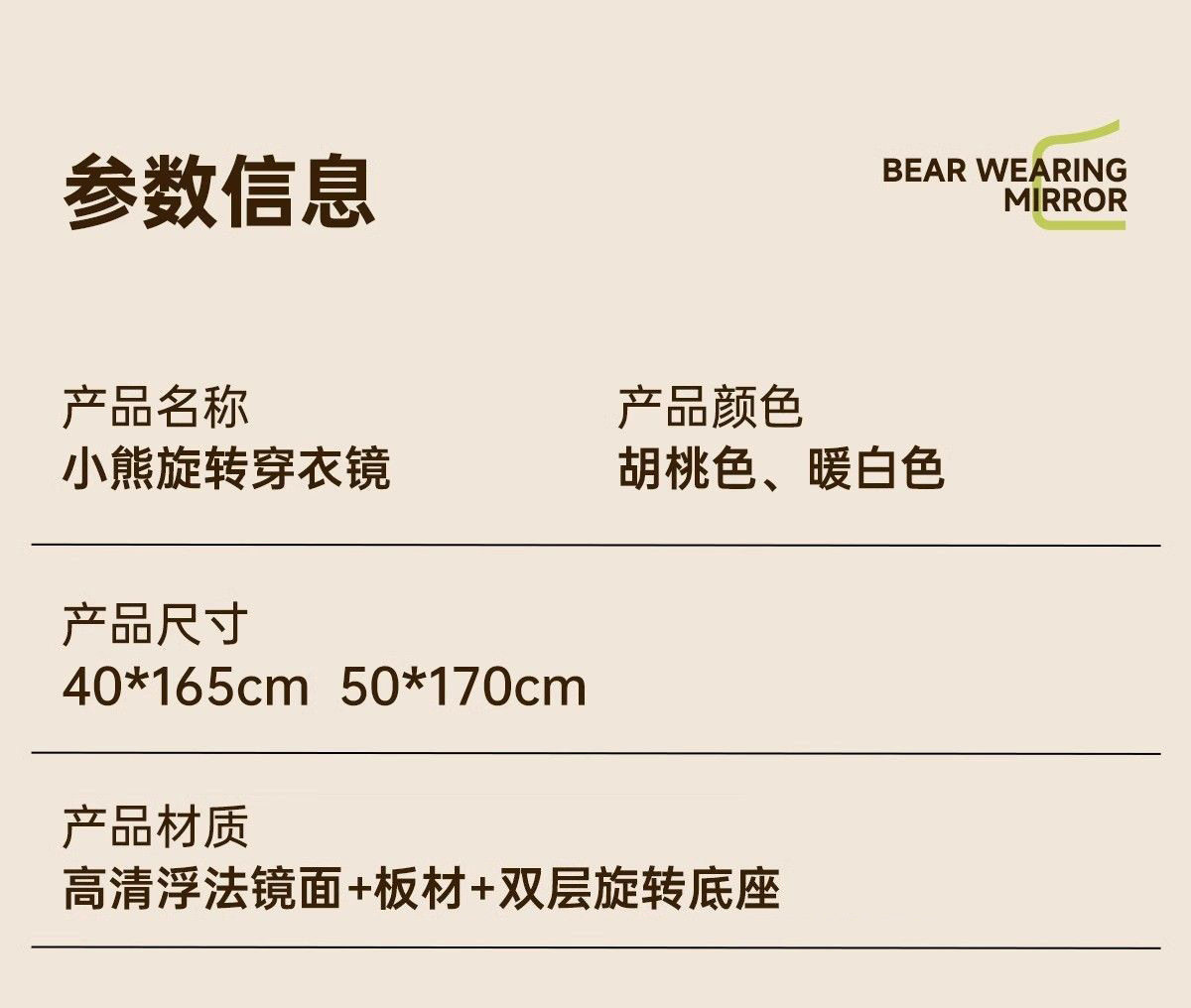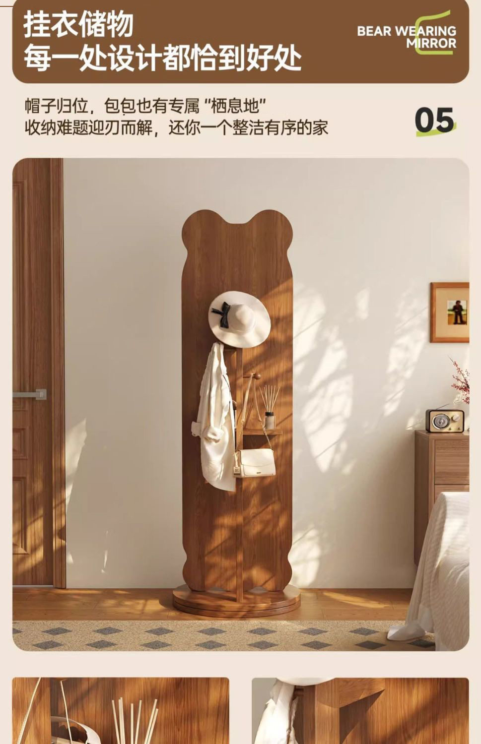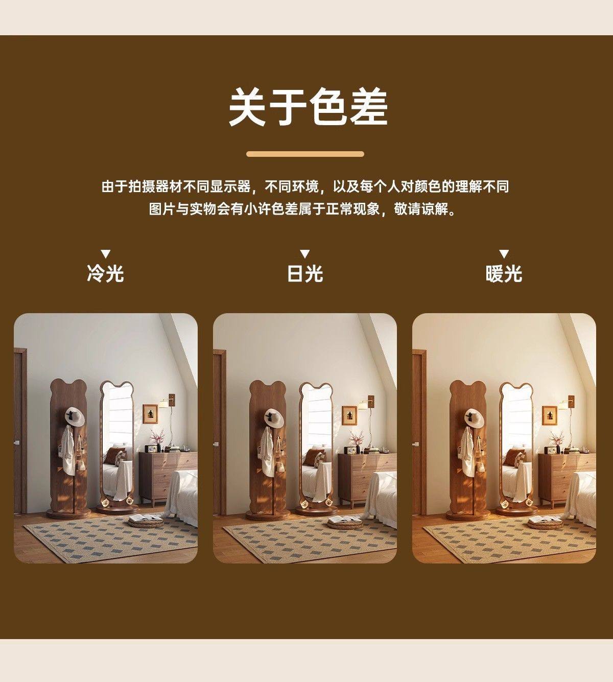小熊全身镜可旋转女生卧室穿衣镜服装店试衣镜落地式镜子旋转落地