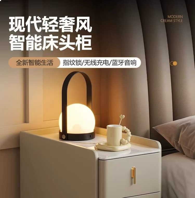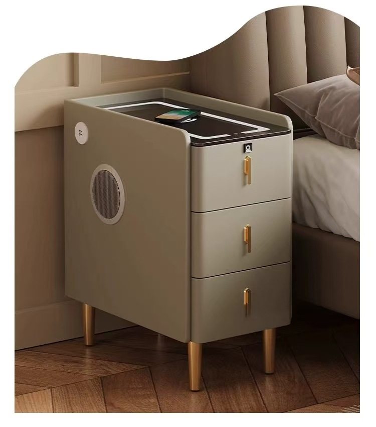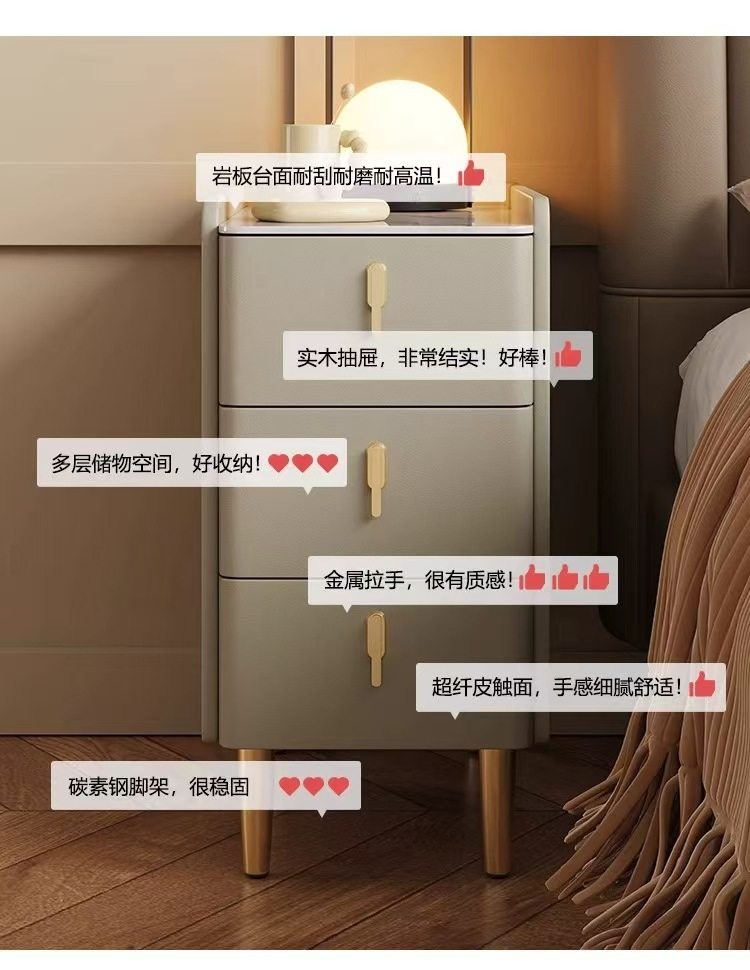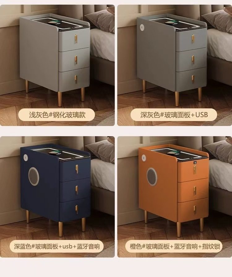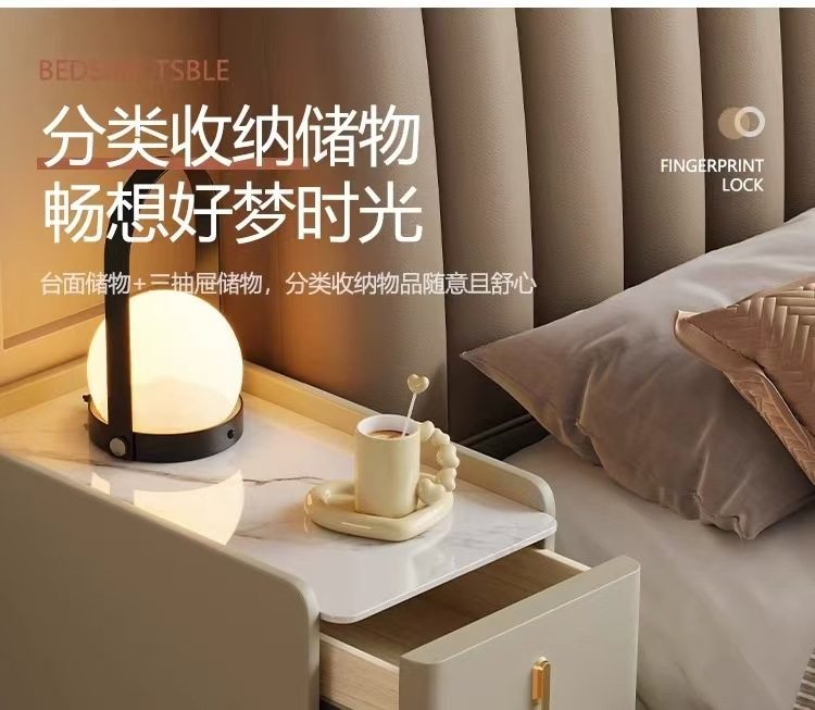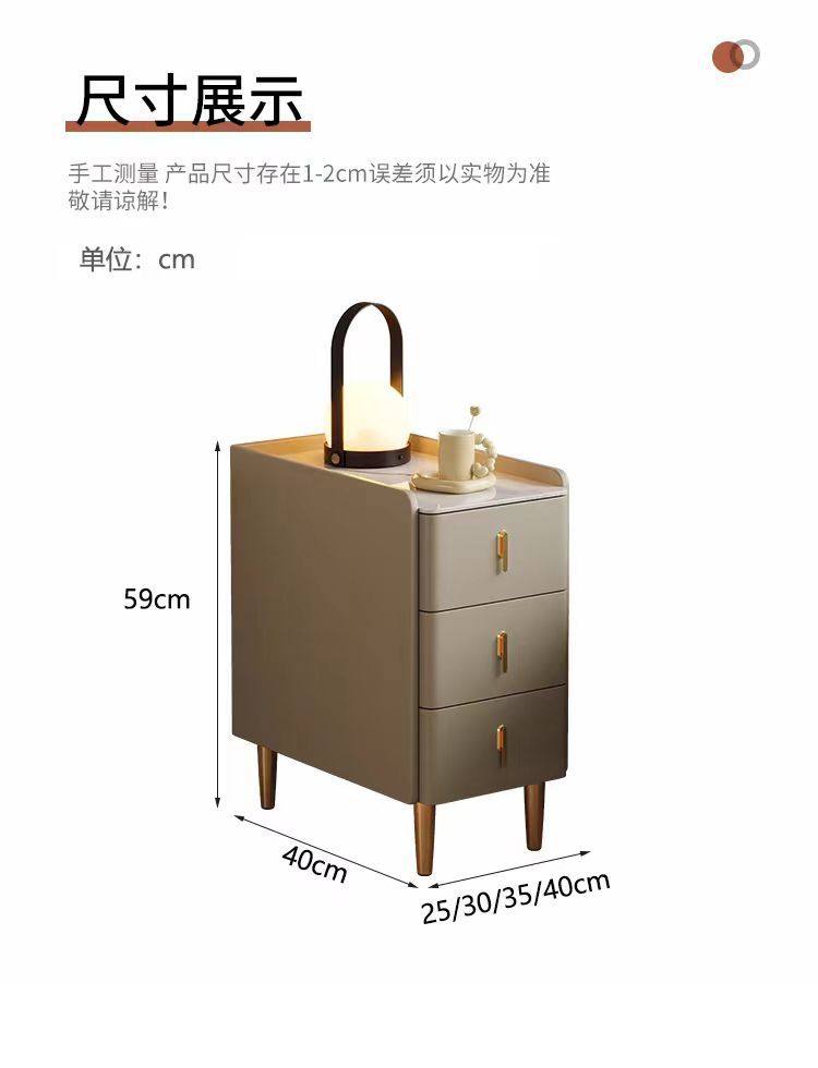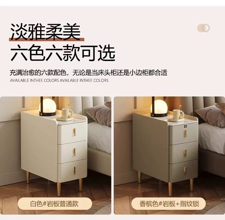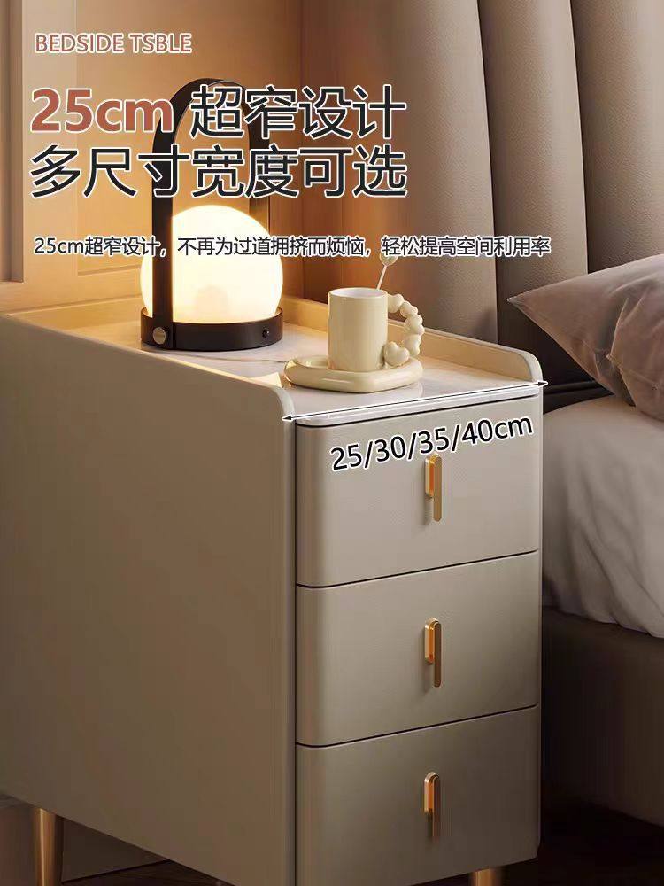 超窄小型实木床头柜简约现代家用卧室小户型智能岩板三抽屉床边柜