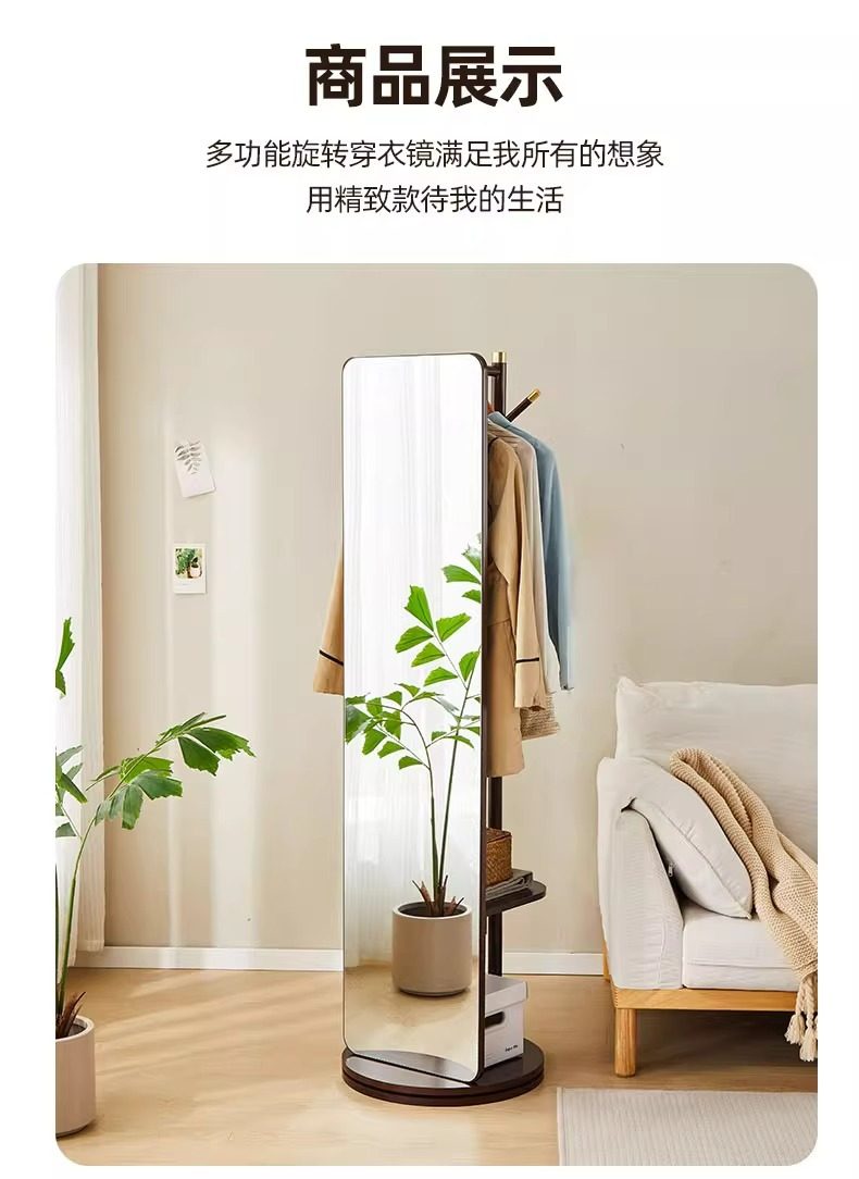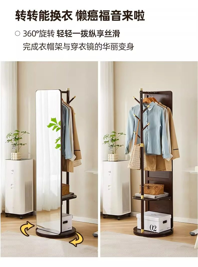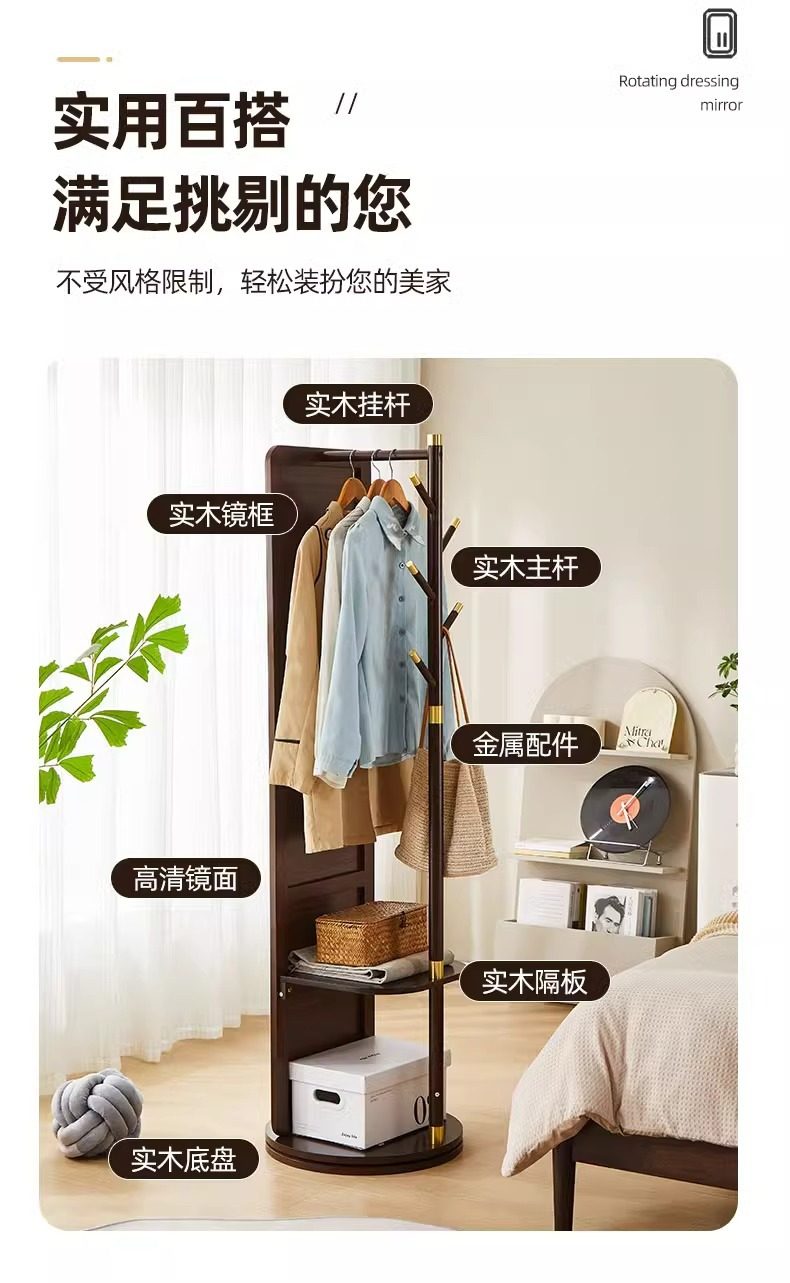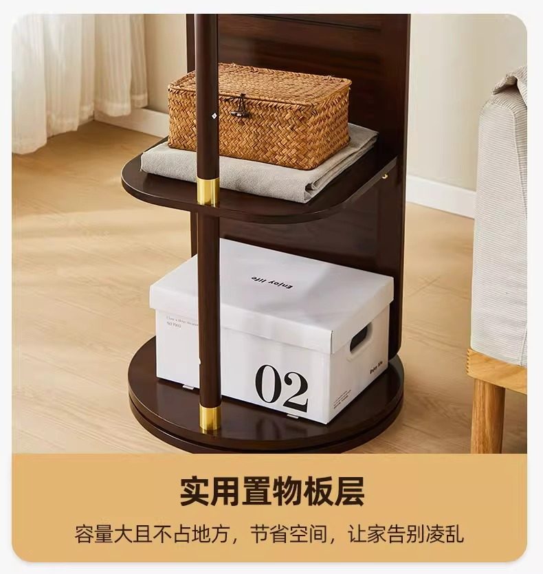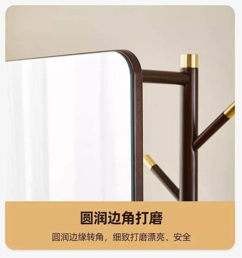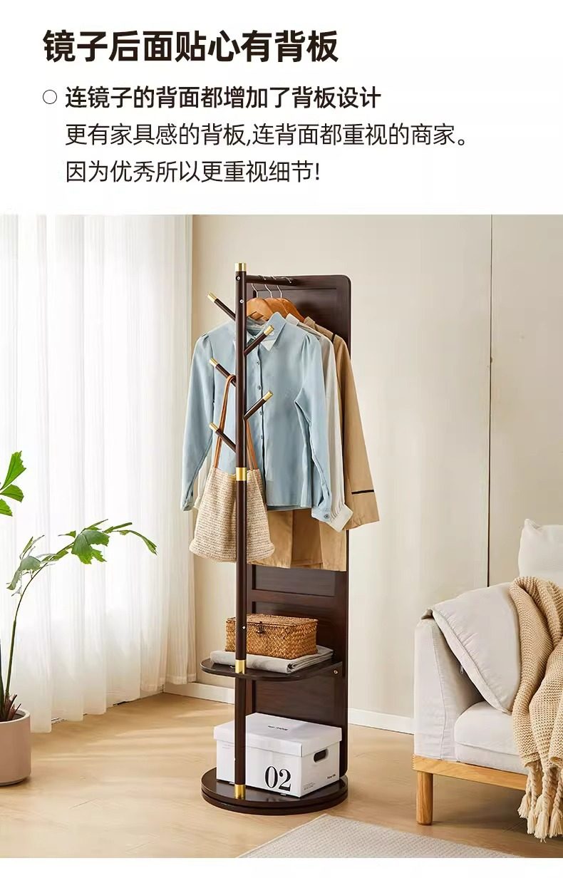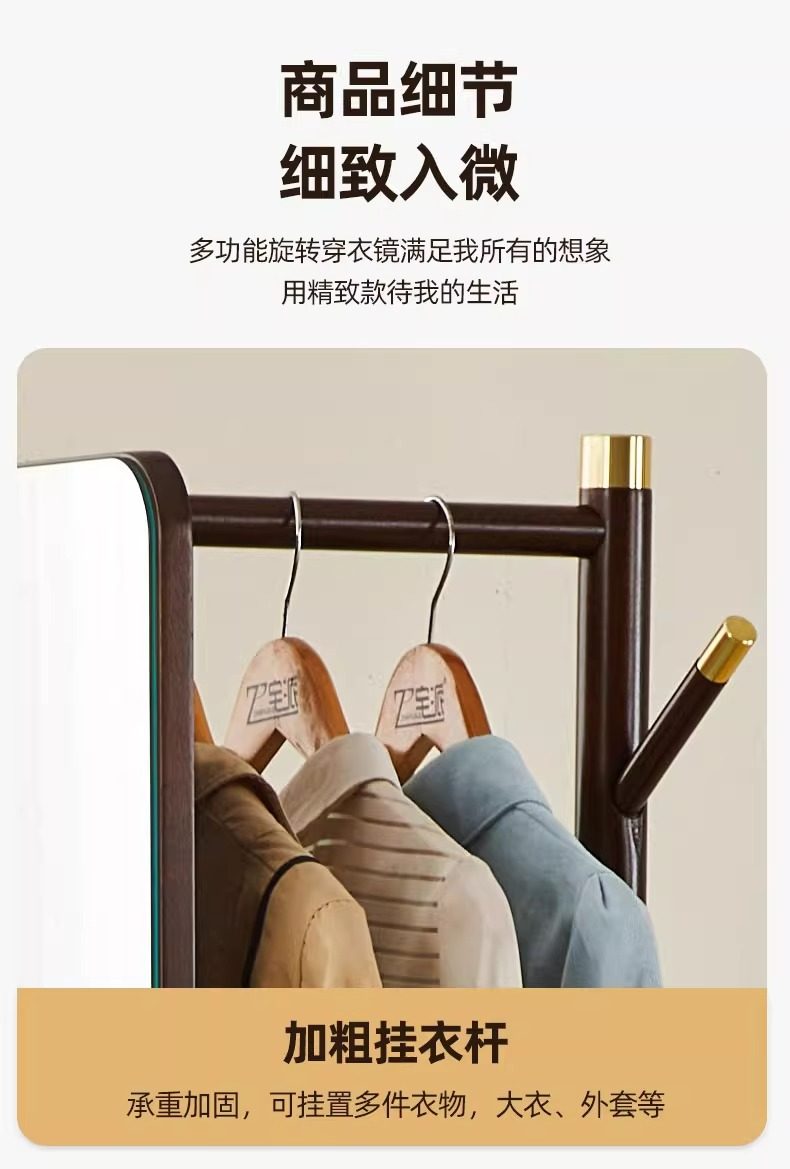 实木全身镜落地镜卧室玄关移动试衣镜子带挂衣架一体穿衣镜简约