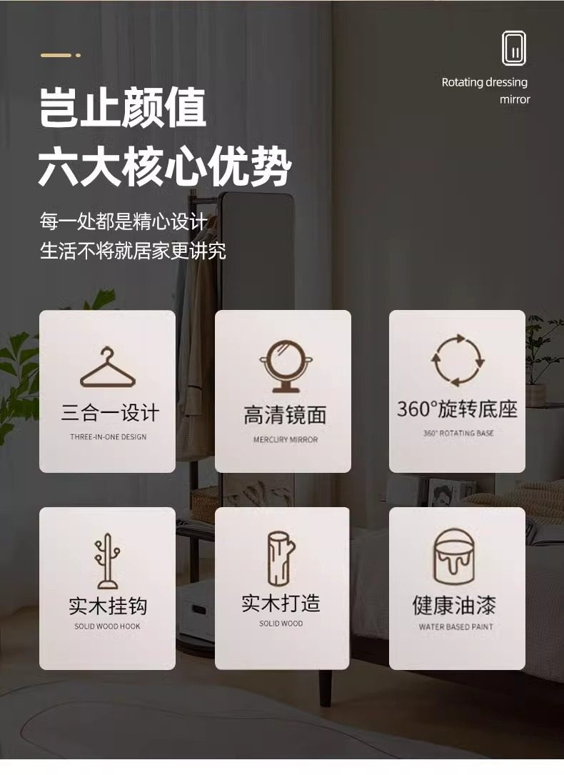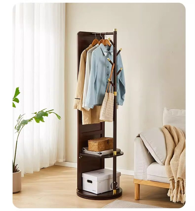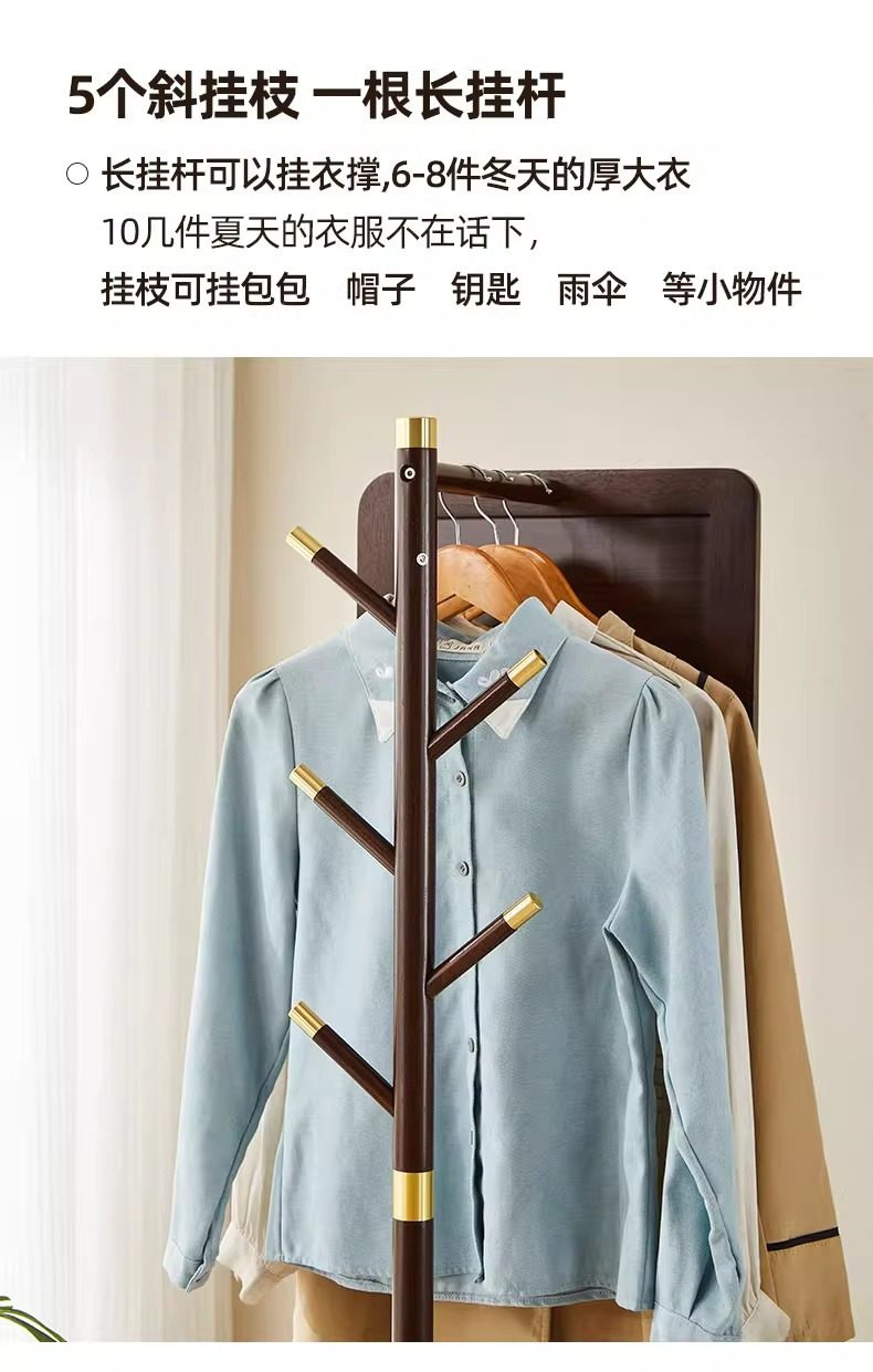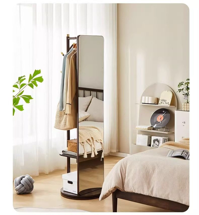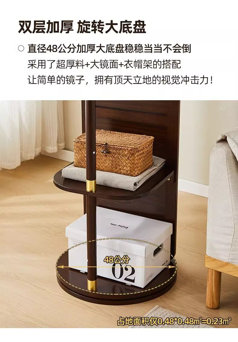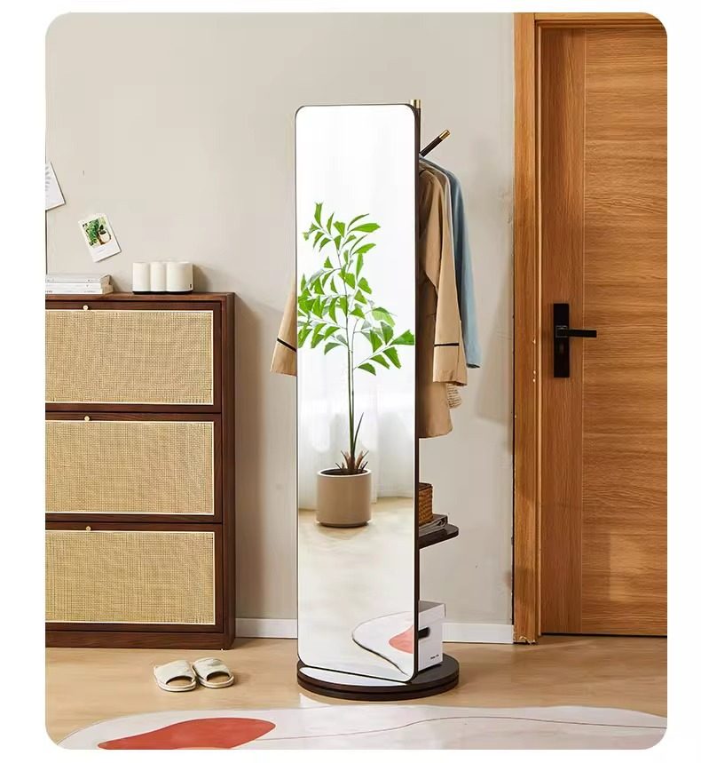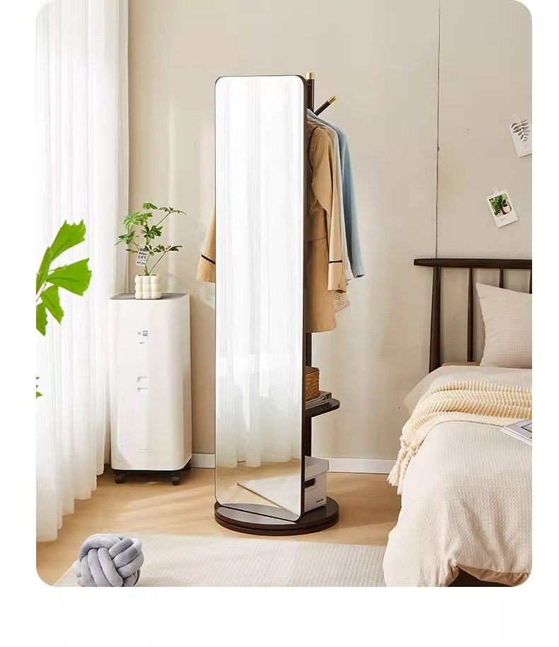 实木全身镜落地镜卧室玄关移动试衣镜子带挂衣架一体穿衣镜简约