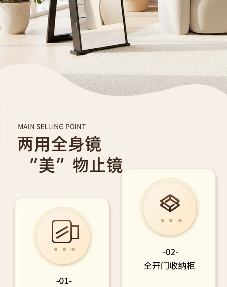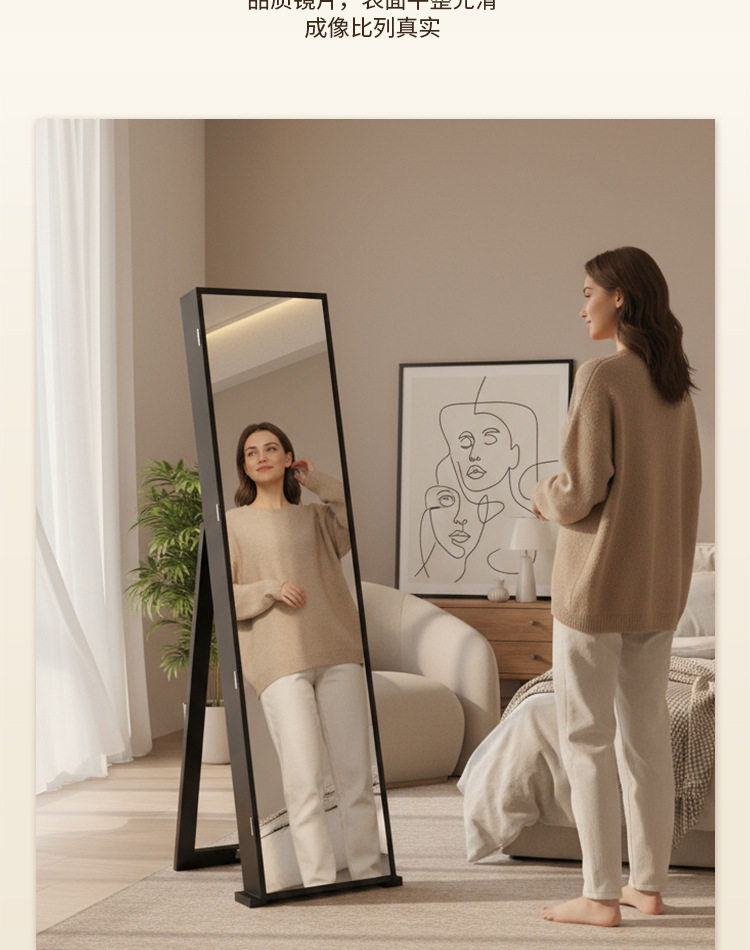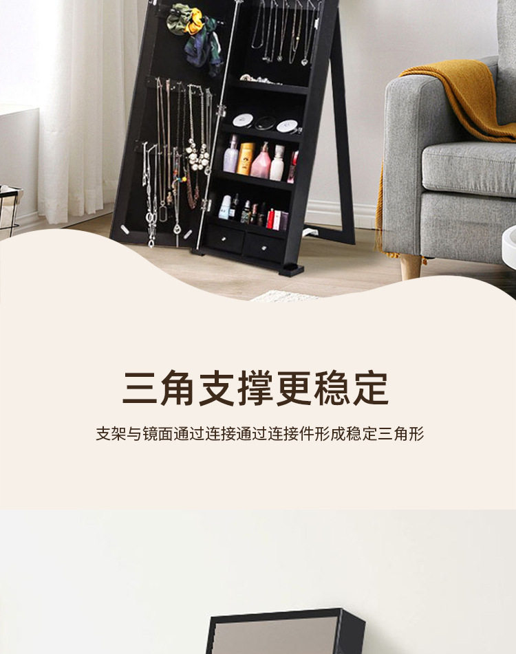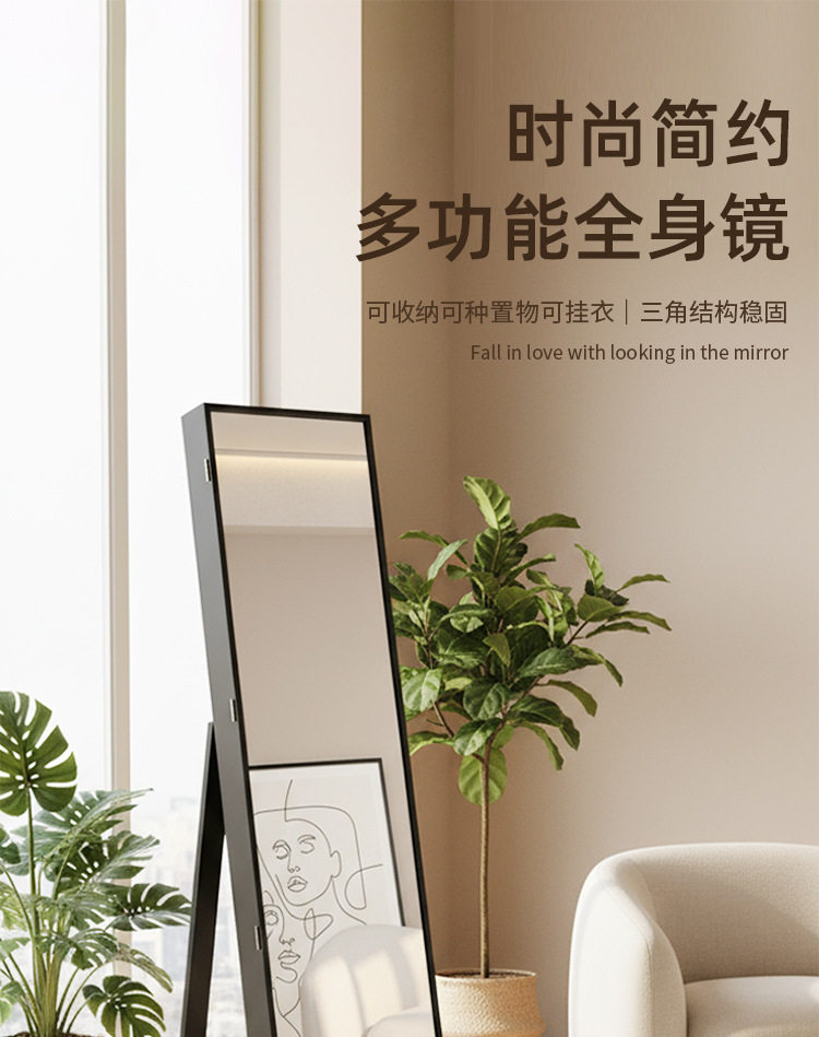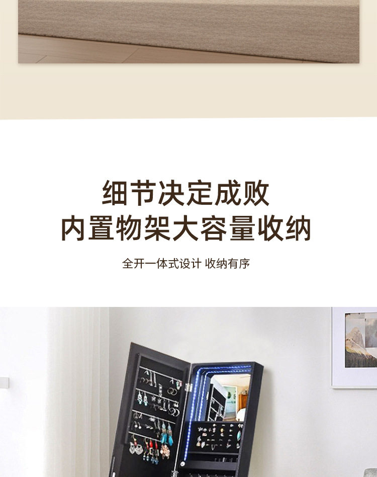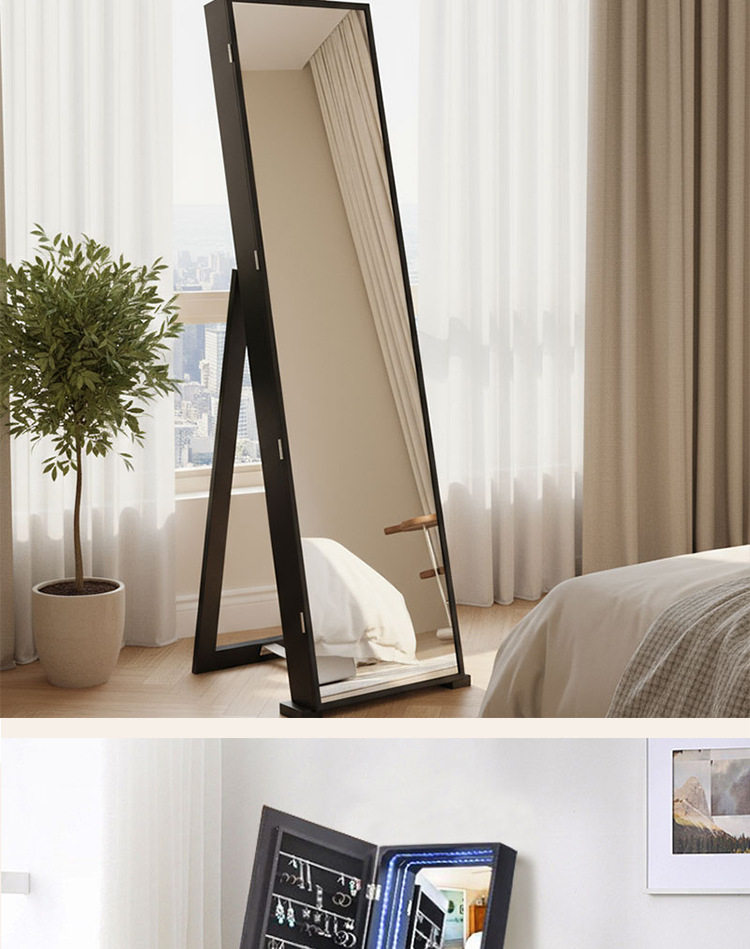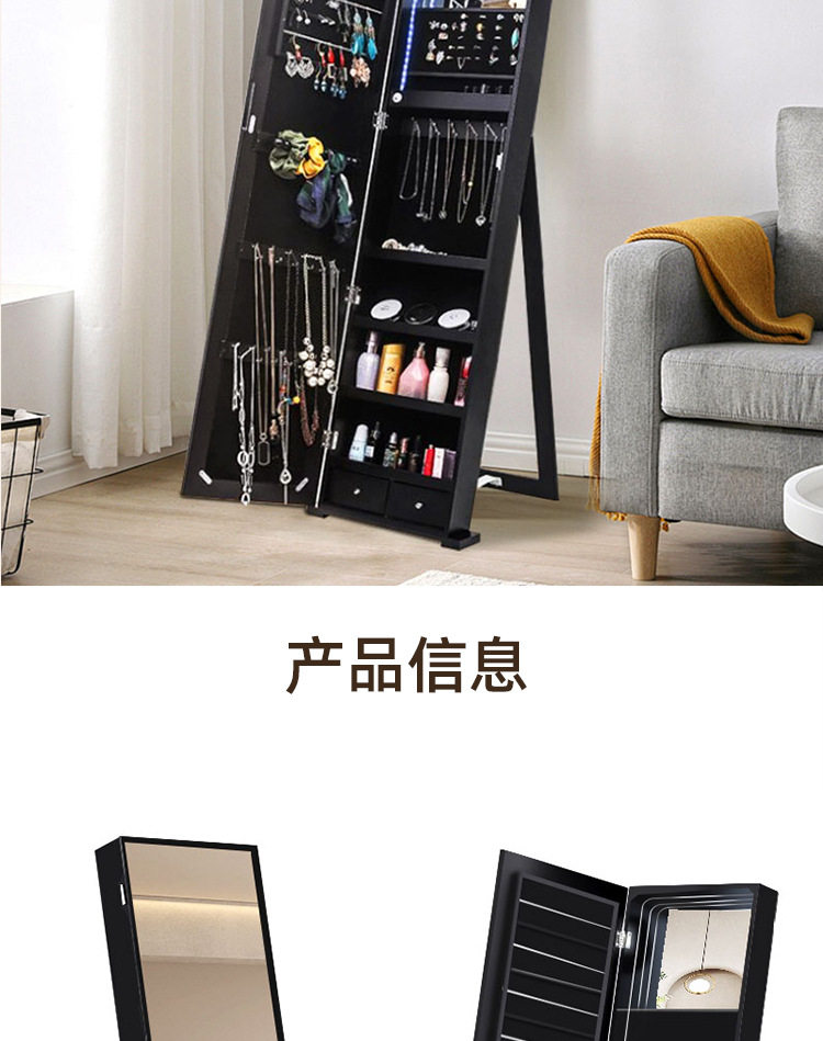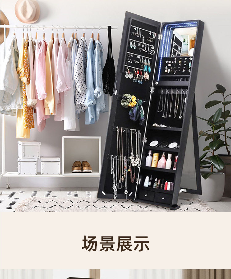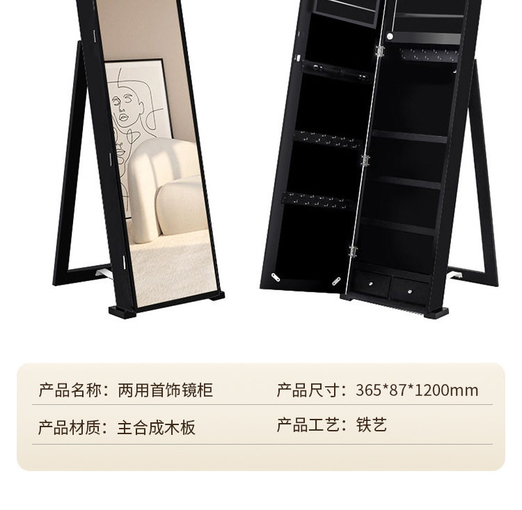 全身镜柜家用卧室首饰珠宝收纳壁挂式移动试衣镜子挂衣帽架