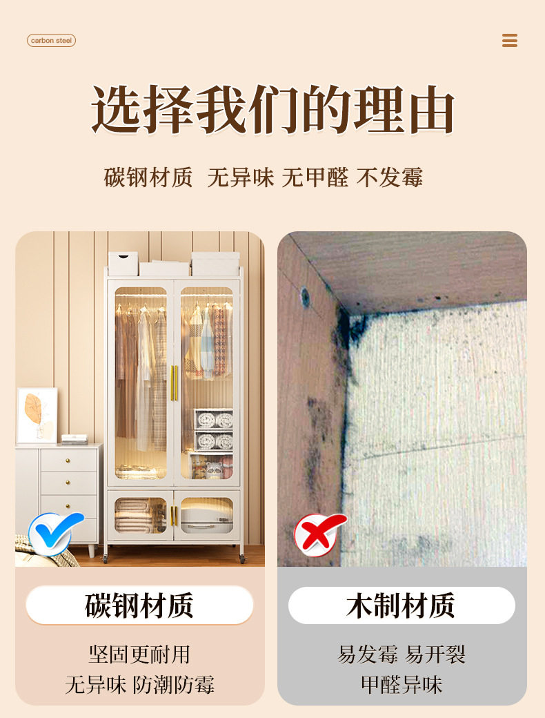 全网源头厂家铁艺儿童衣柜家用衣服整理收纳储物柜可批发支持跨境