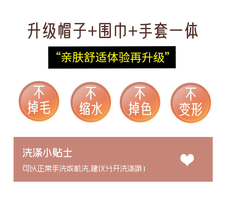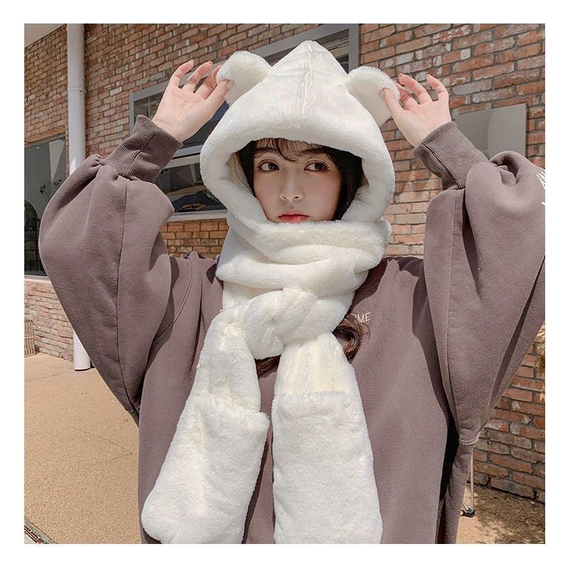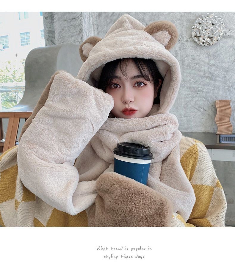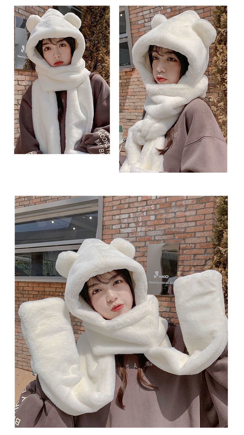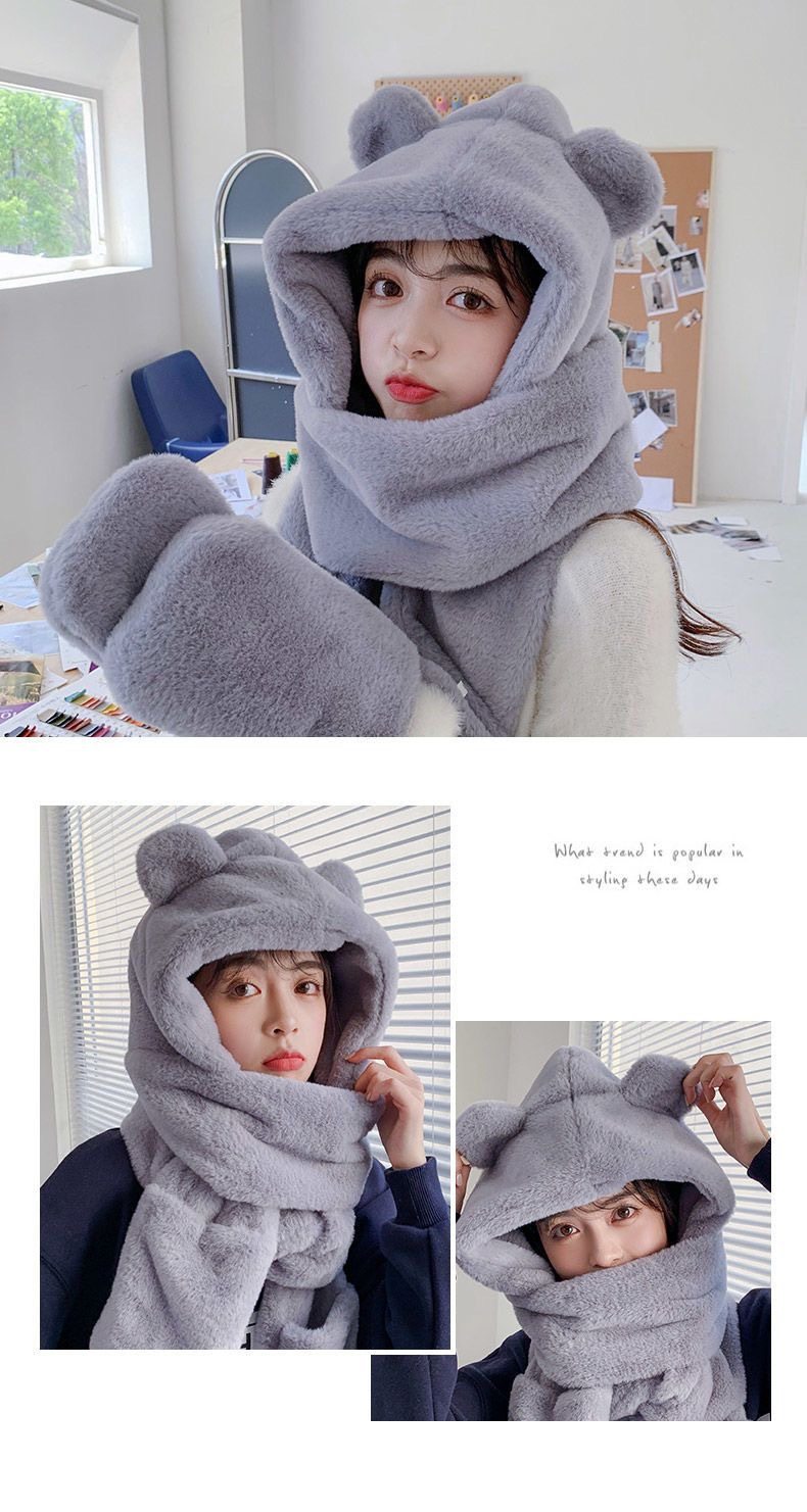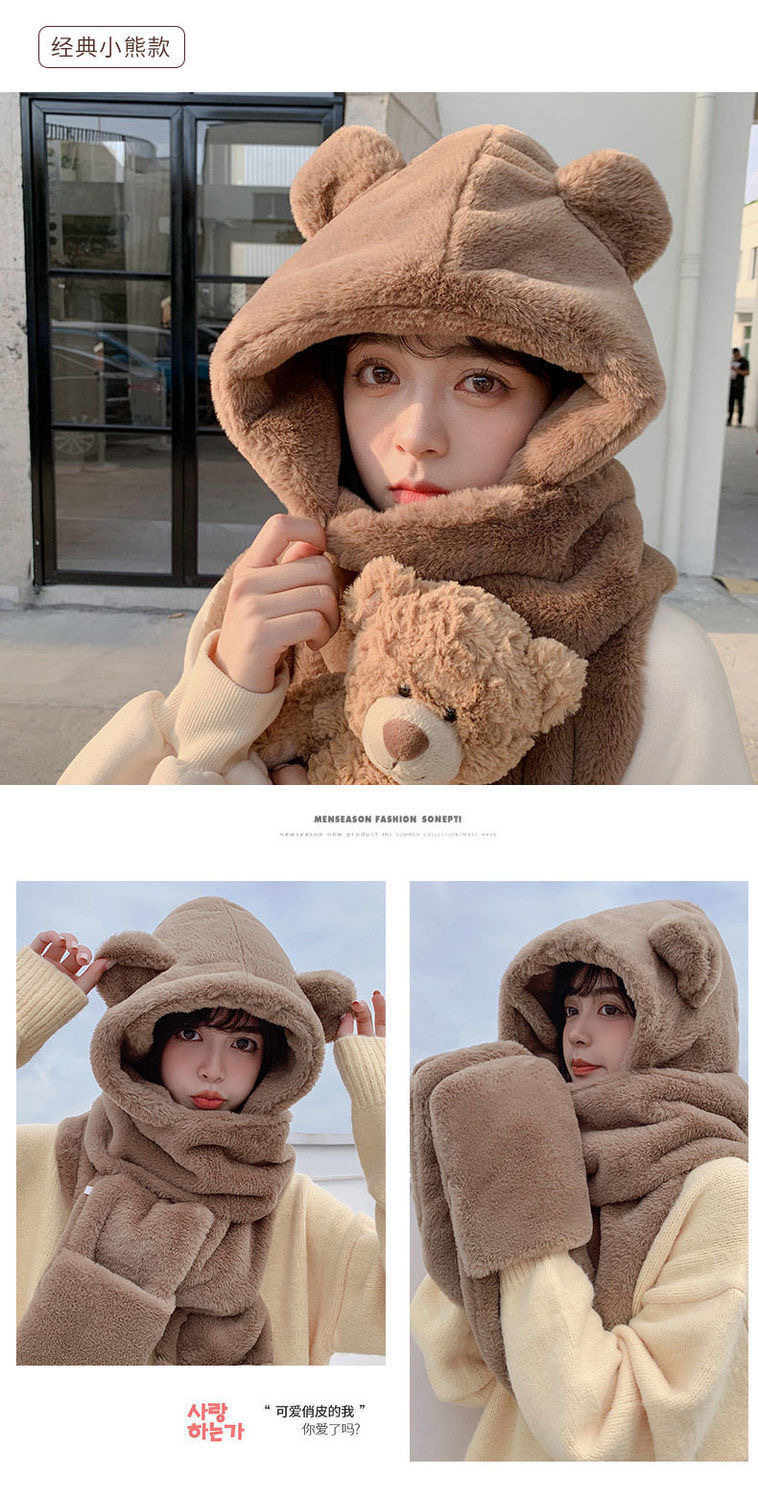 兔绒帽子女2024新款冬可爱小熊骑行保暖围巾一体帽百搭加绒围脖