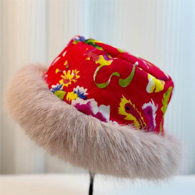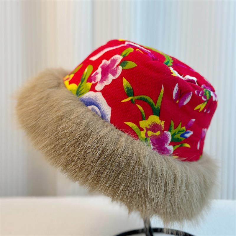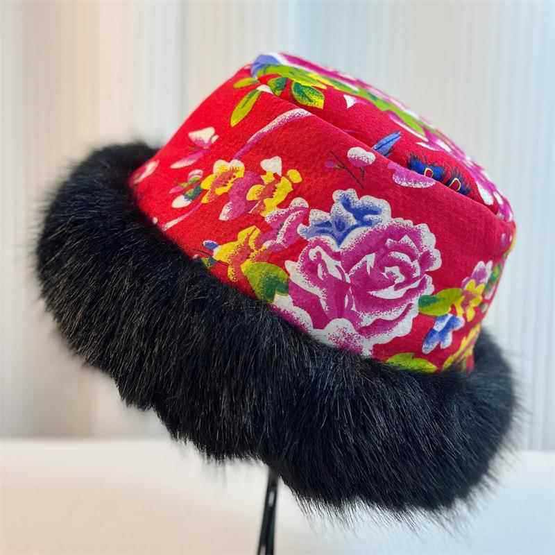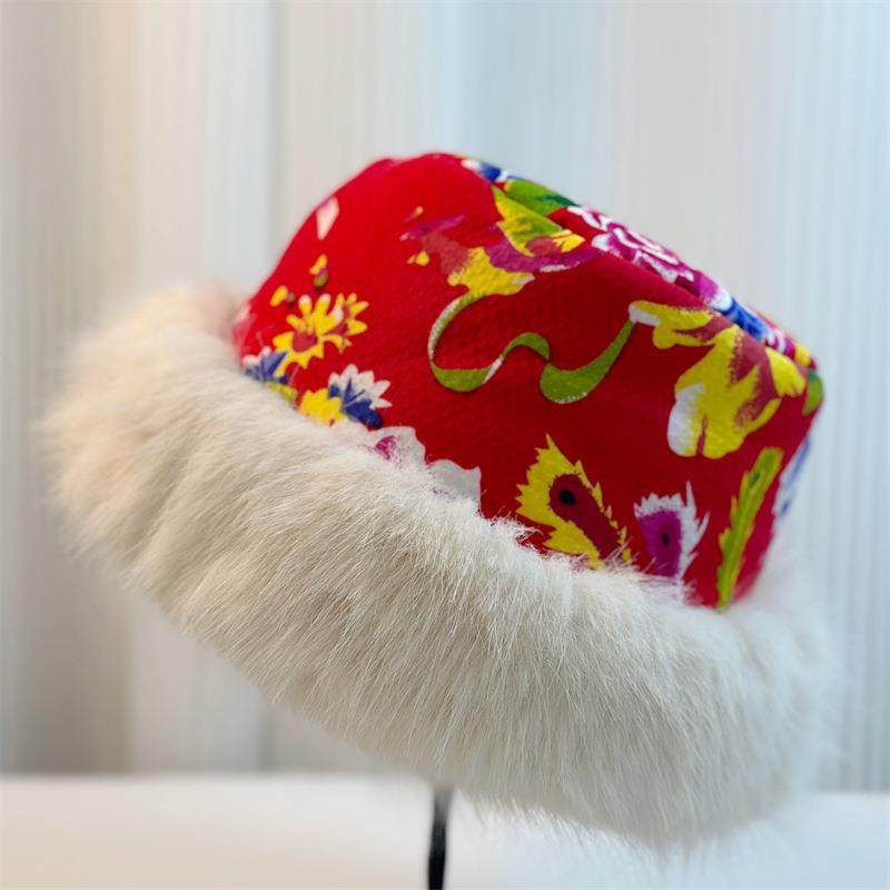 东北大花帽子2024新款民族风加厚毛绒渔夫帽防寒保暖蒙古帽秋冬季