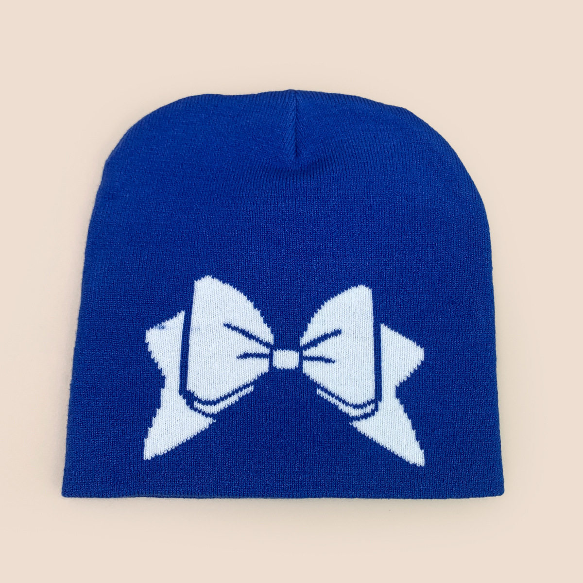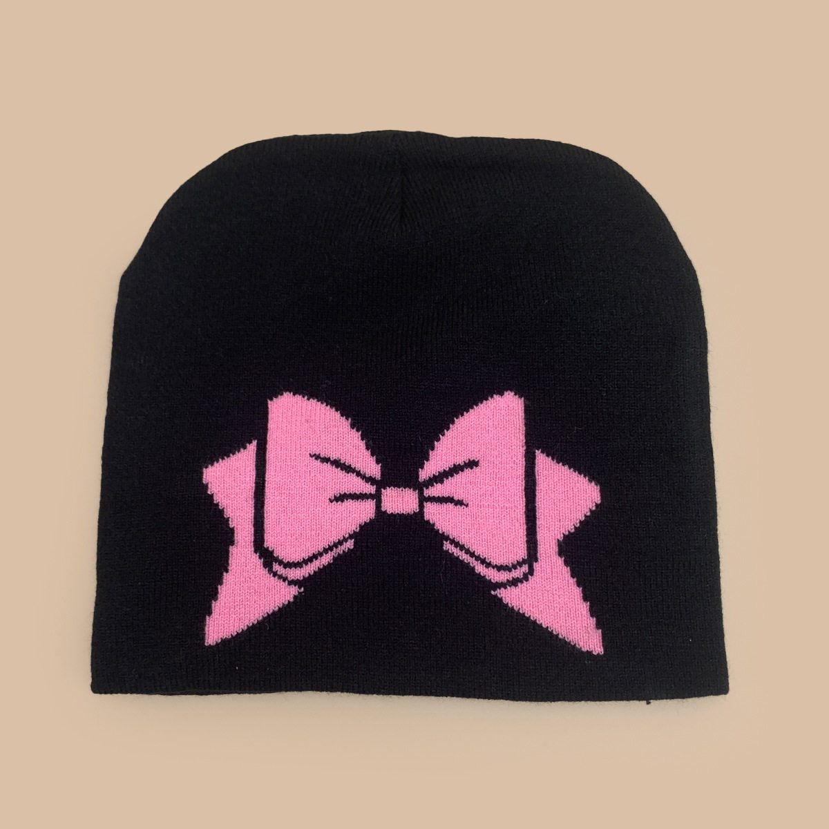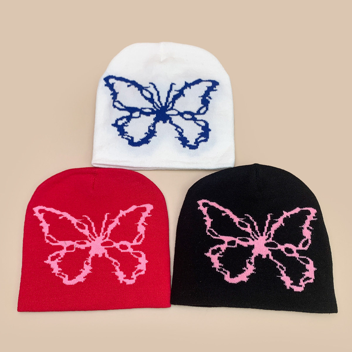 韩版蝴蝶结蝴蝶提花针织帽女士保暖休闲复古拼色冷帽套头帽子批发