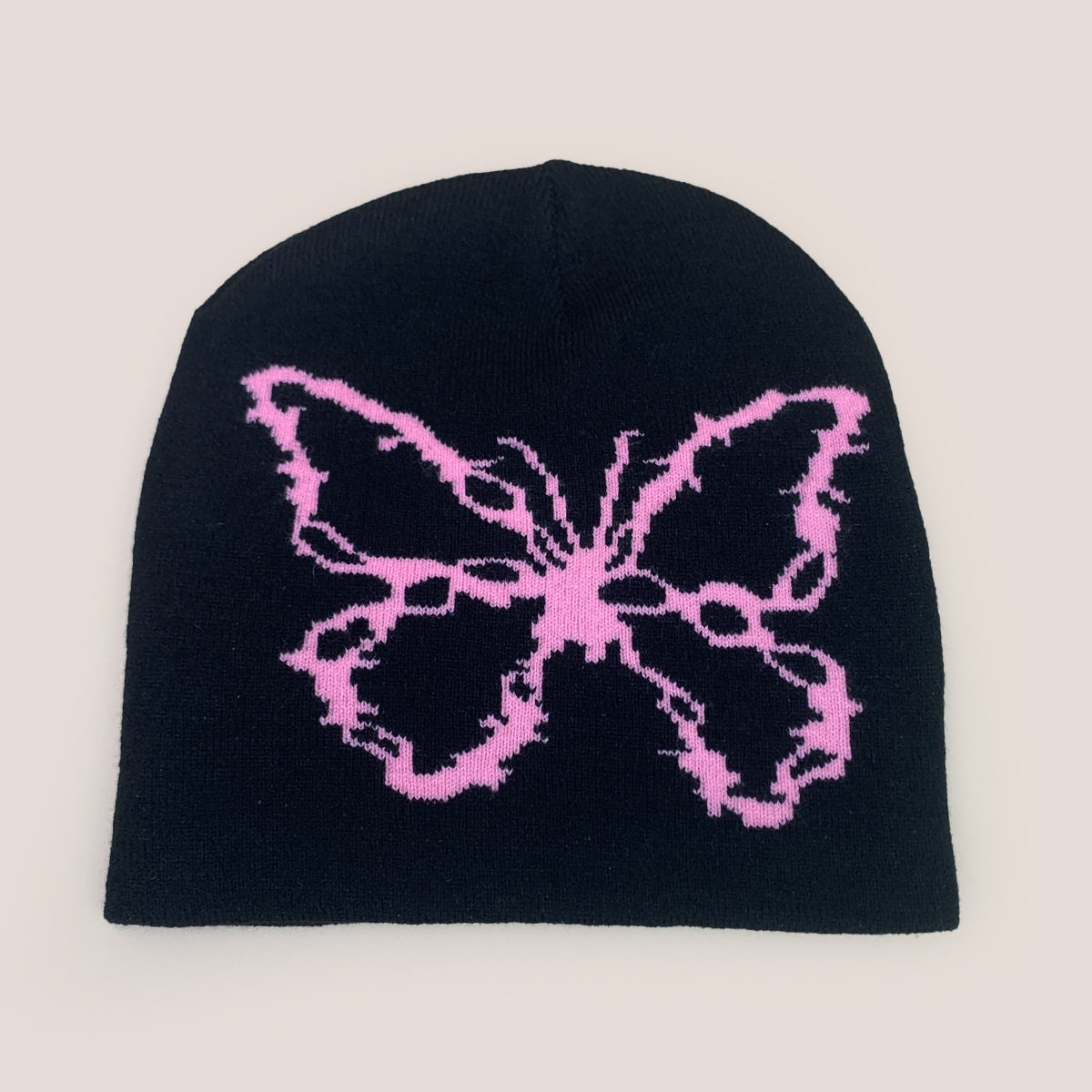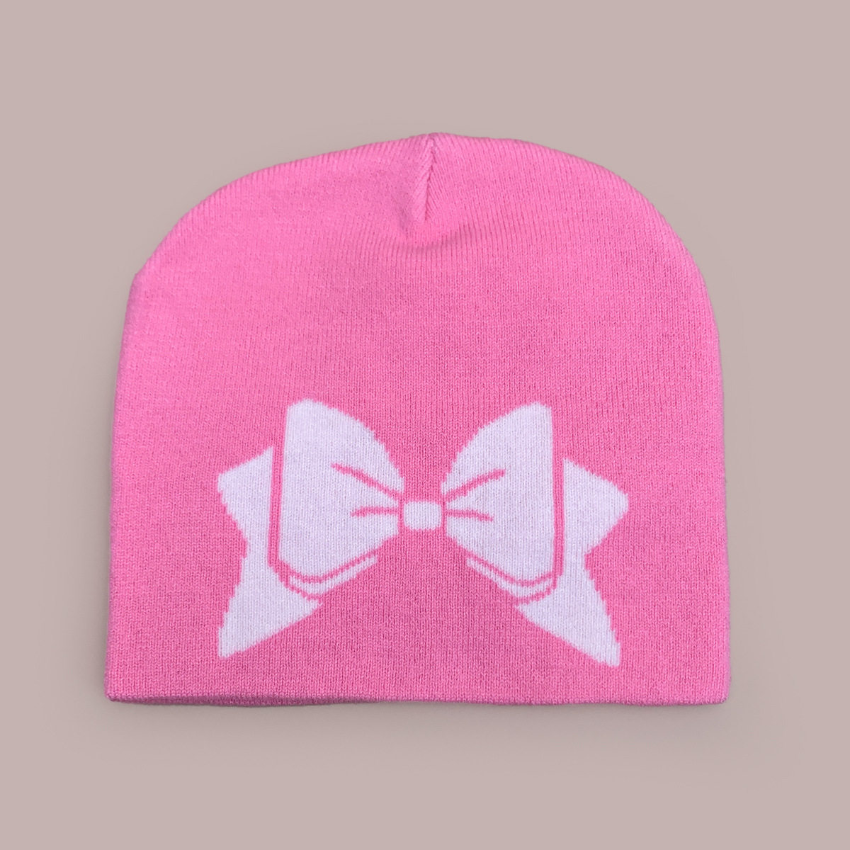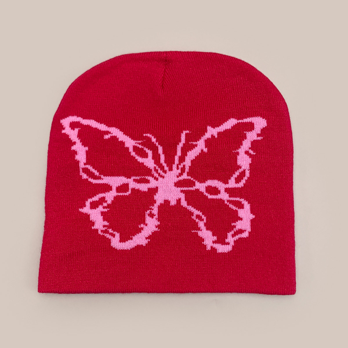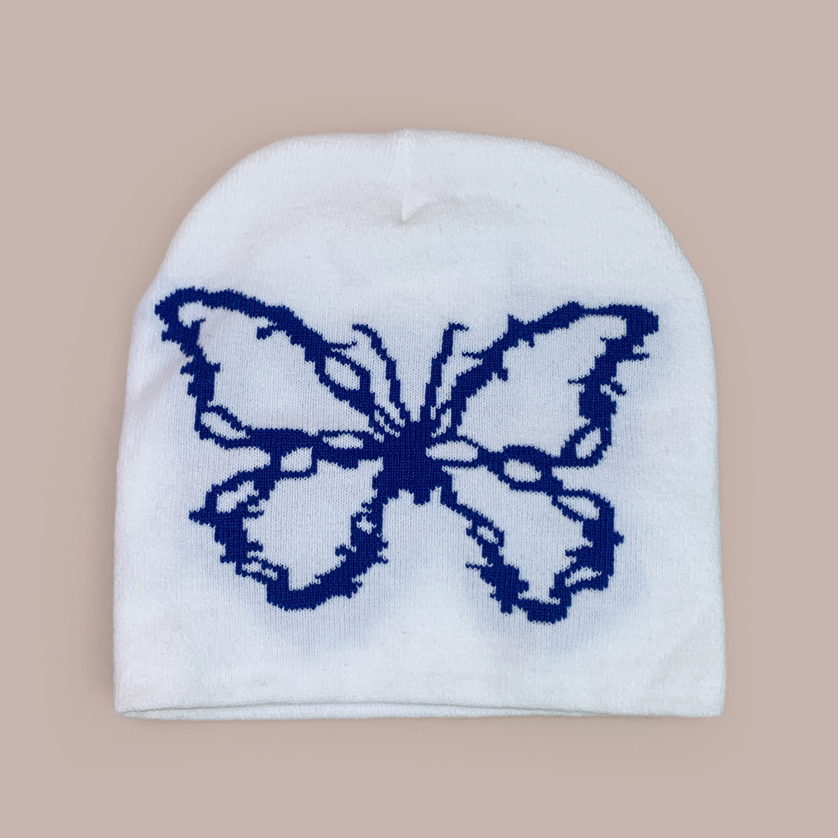 韩版蝴蝶结蝴蝶提花针织帽女士保暖休闲复古拼色冷帽套头帽子批发