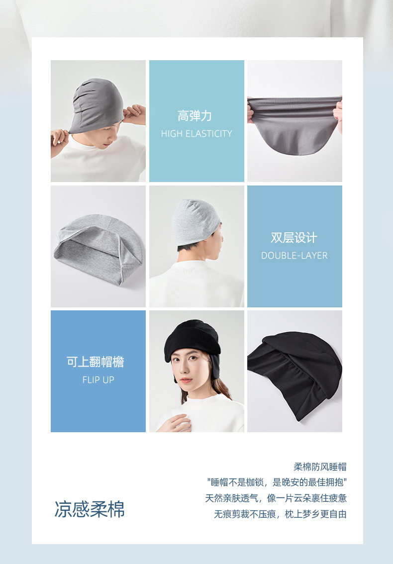 纯棉睡帽男女晚睡觉戴遮光睡眠帽老人无压感防风保暖头套午休神器