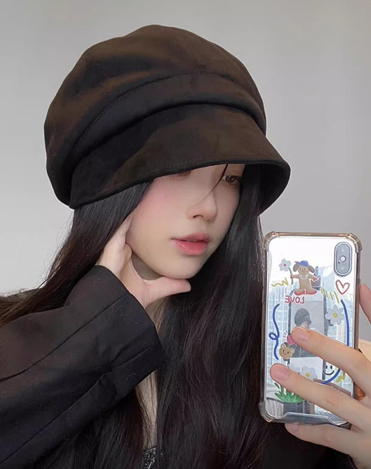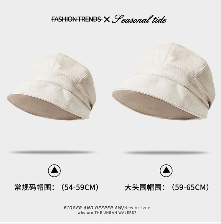 Y麂皮绒渔夫帽女秋季加大三合一堆堆帽显脸小贝雷帽大头围帽子