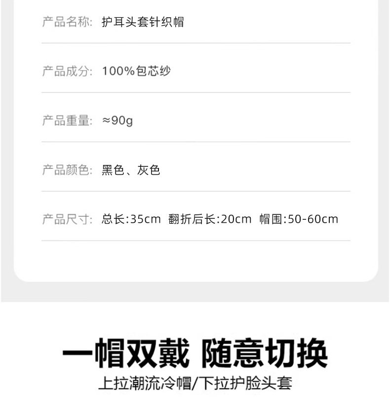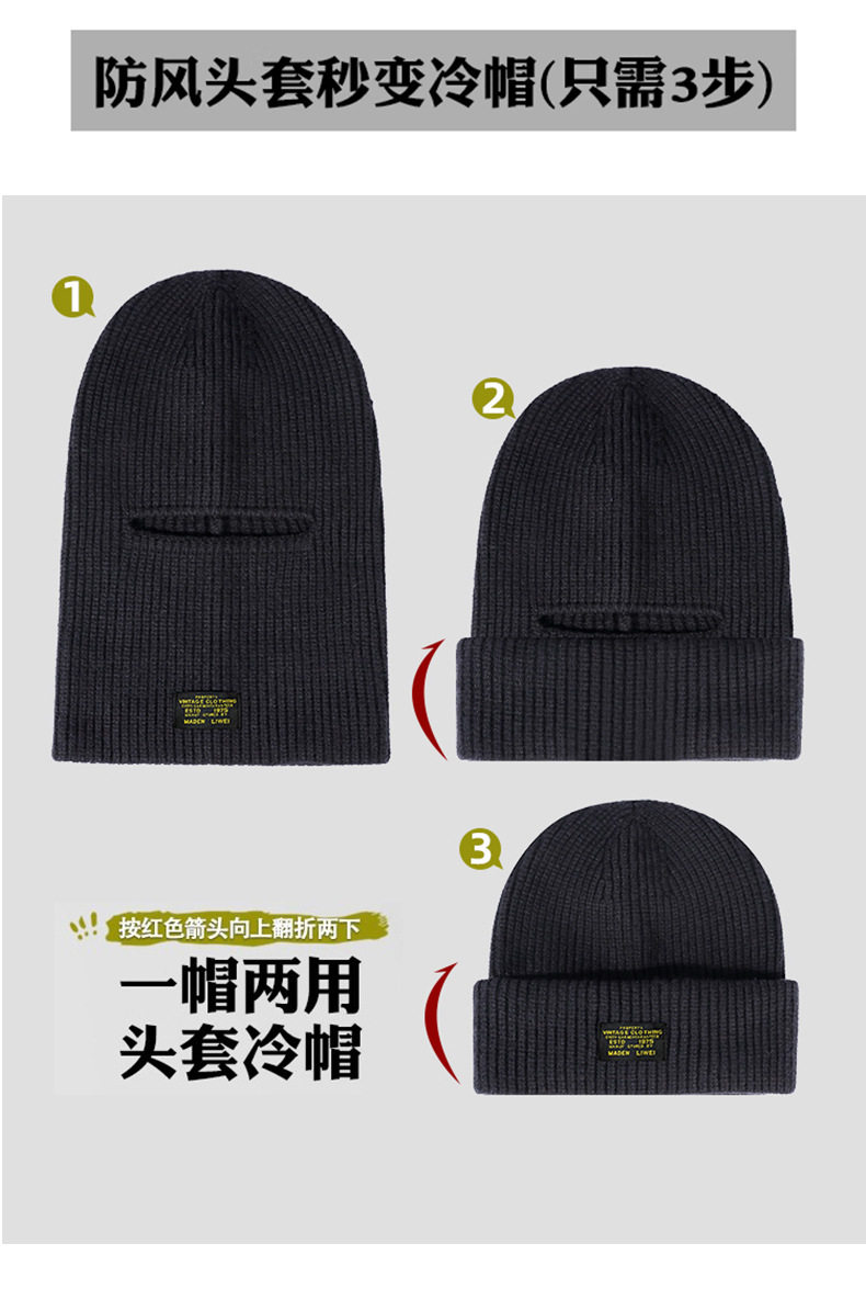 帽子男款冬季保暖护耳针织毛线帽秋冬骑车巴拉克拉法帽护脸面罩女