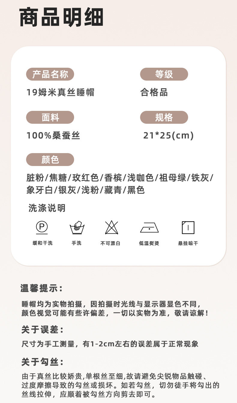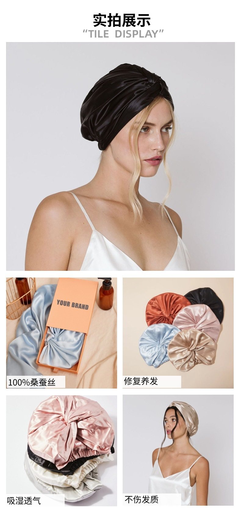 双层真丝睡帽100桑蚕丝护发帽月子丝绸头巾帽日本亚马逊跨境定制