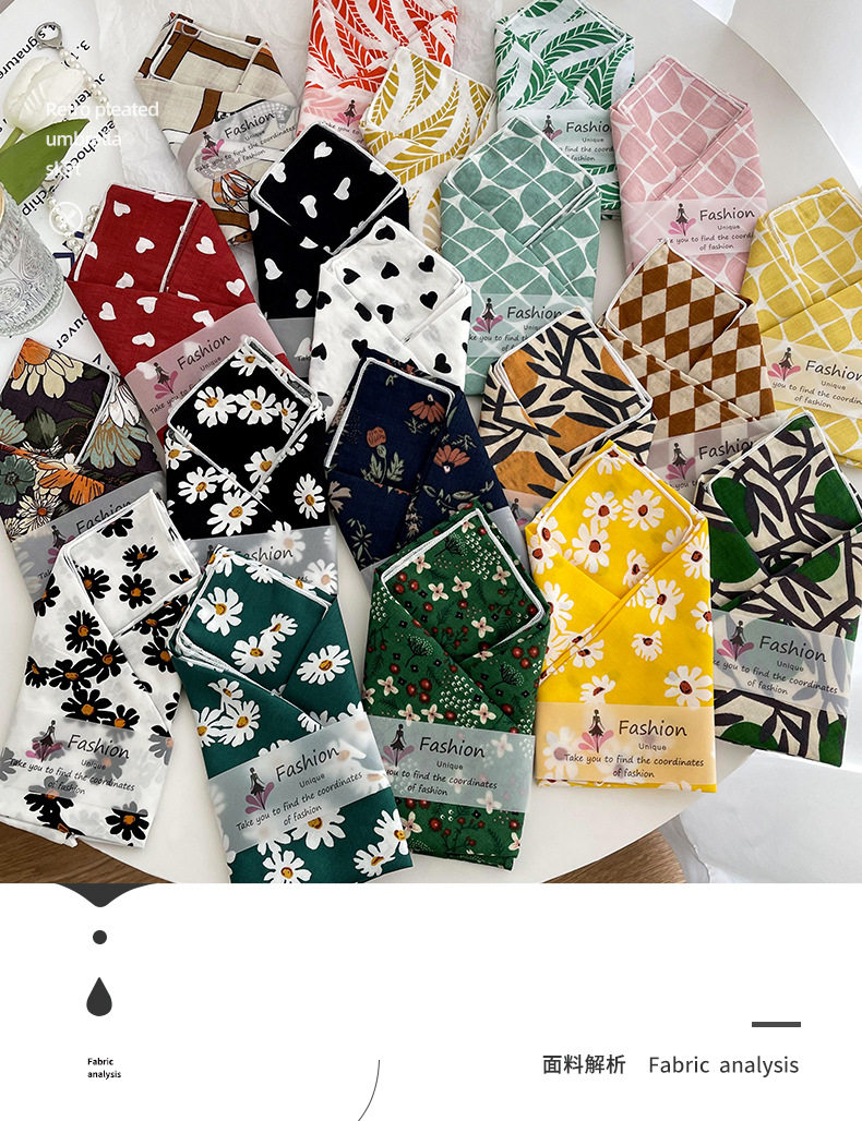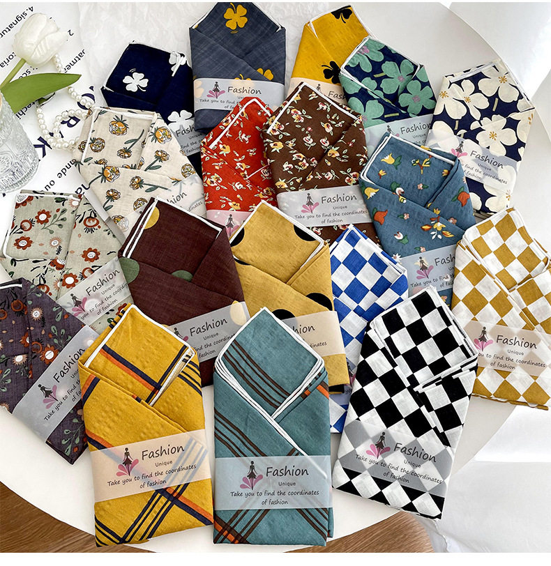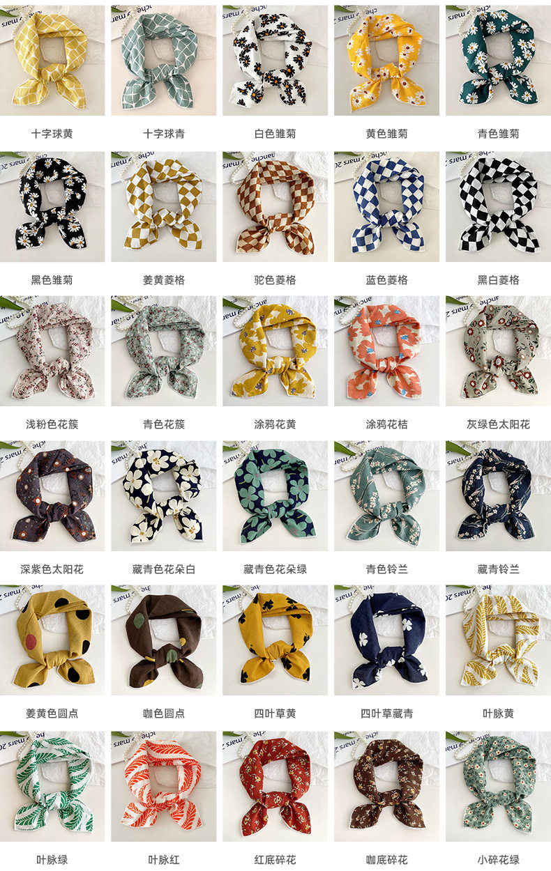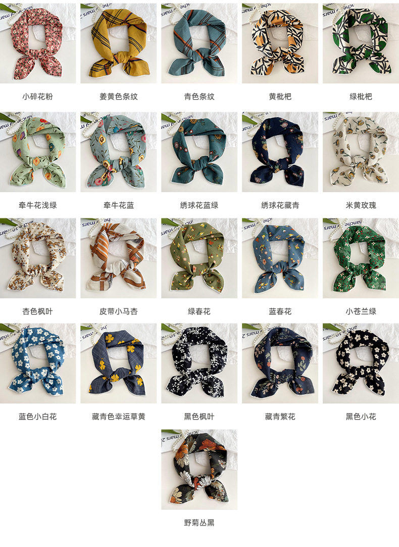 棉麻小方巾女春夏新款韩版小清新碎花气质护颈小领巾发带头巾丝巾