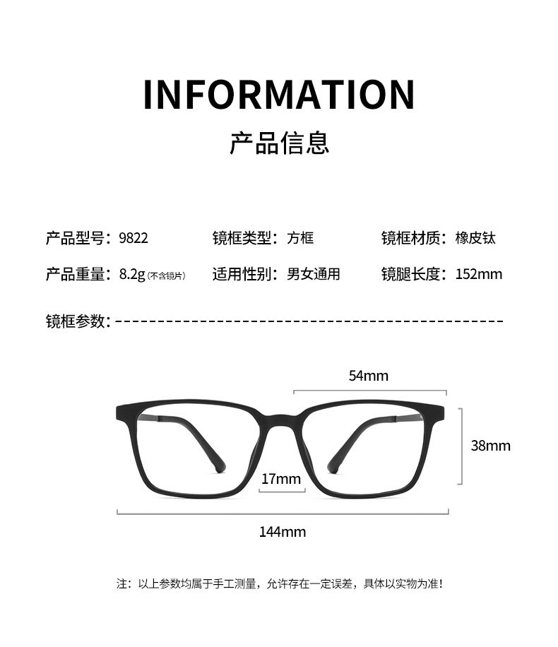 丹阳眼镜超轻TR90眼镜框男纯钛近视眼镜复古方框镜架弹性眼镜9822