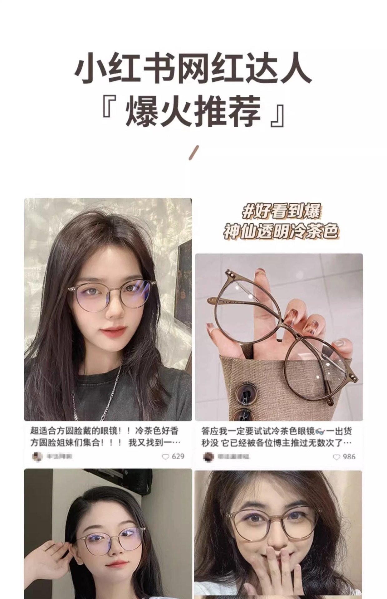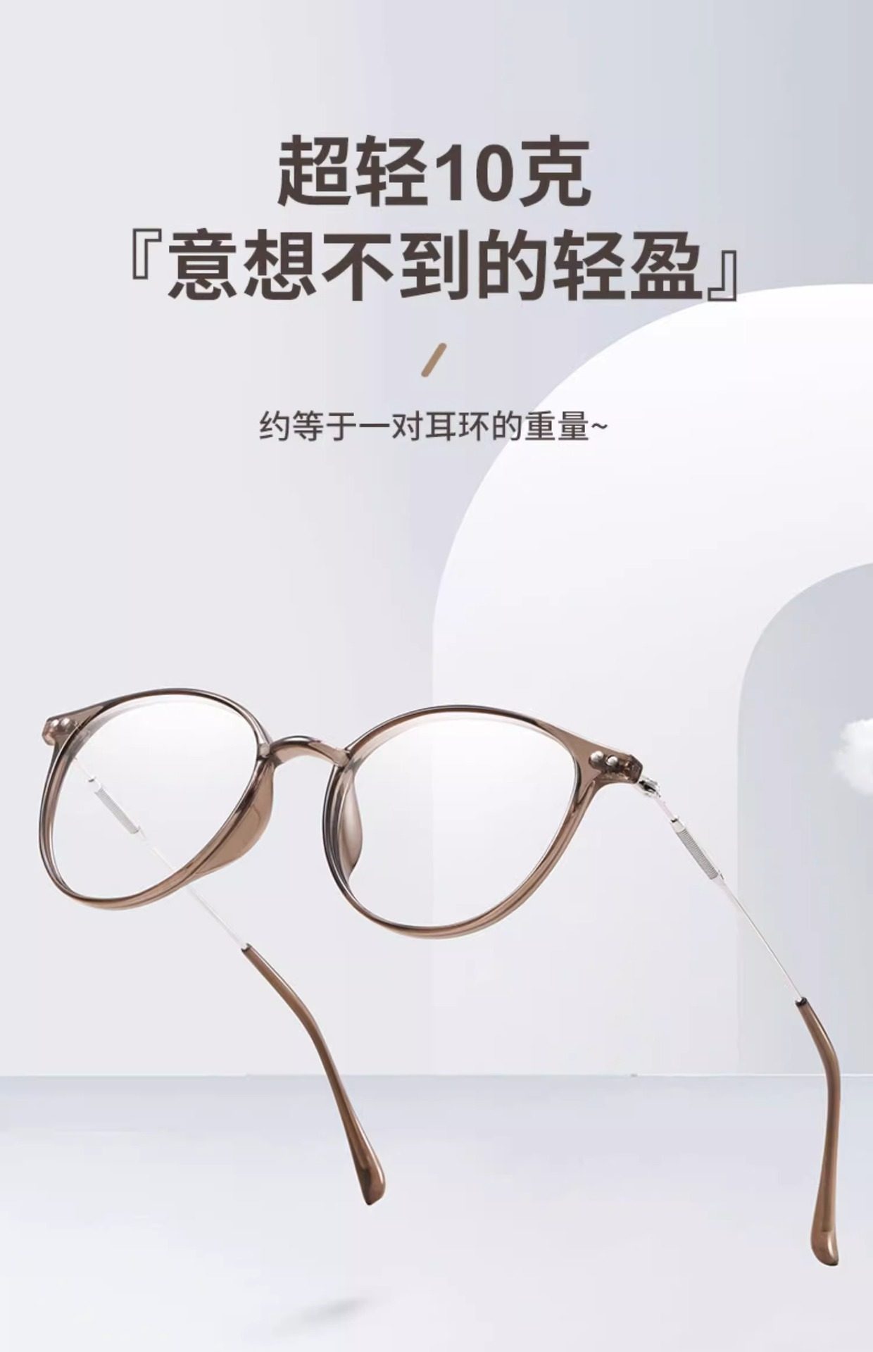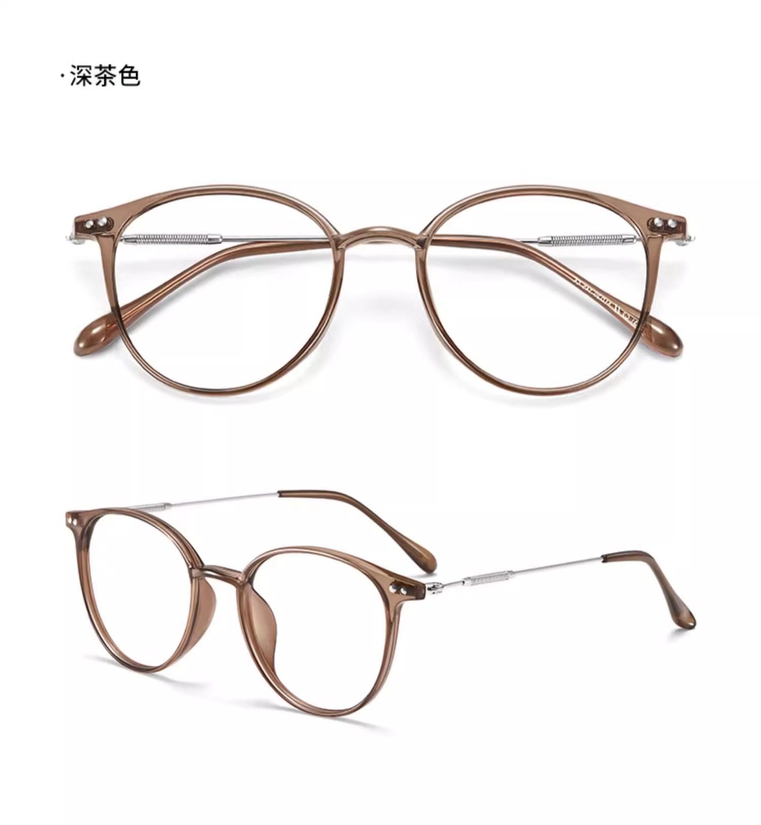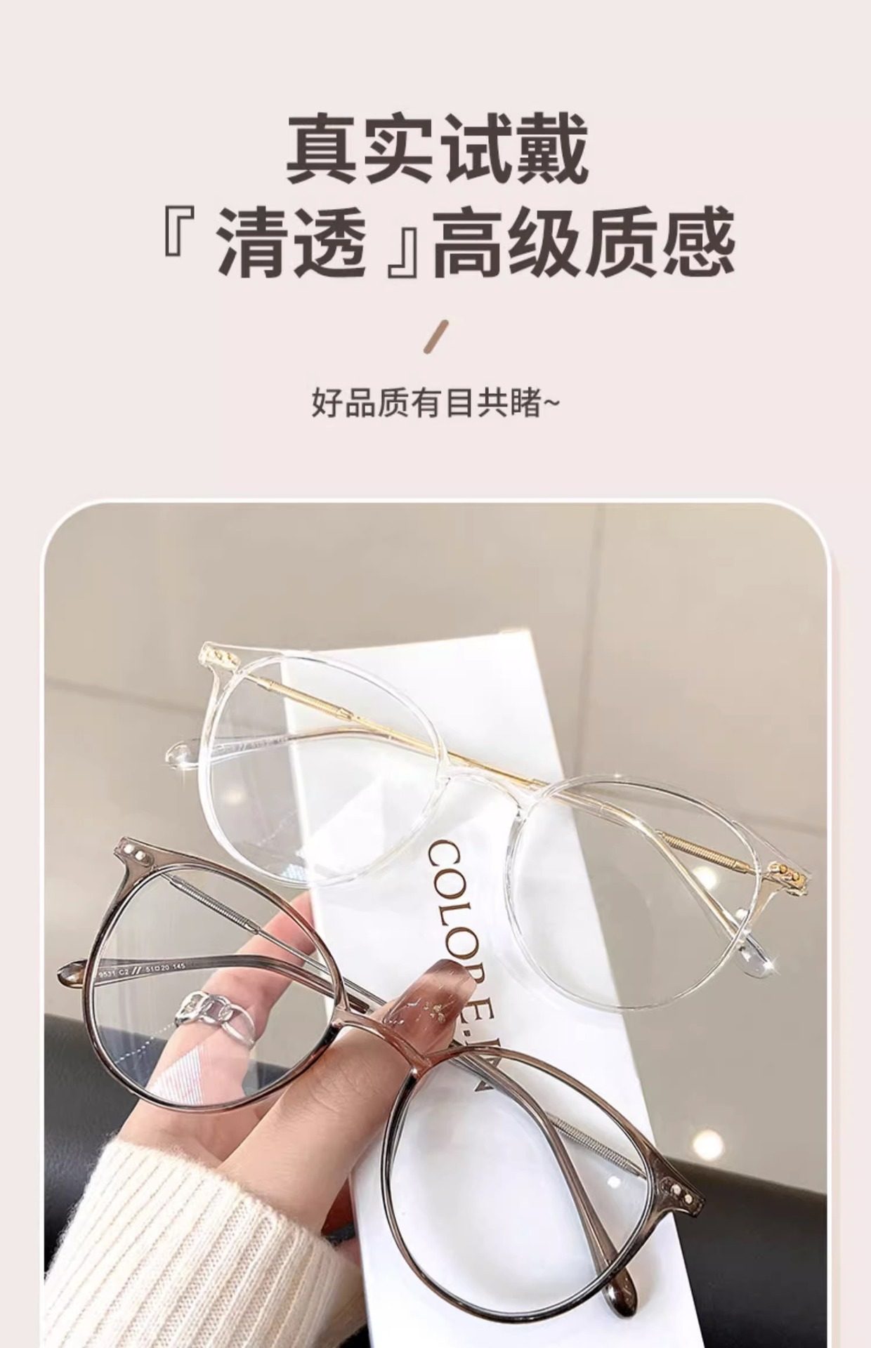 新款超轻TR90眼镜框时尚简约冷茶色男女圆框平光镜素颜透明近视架